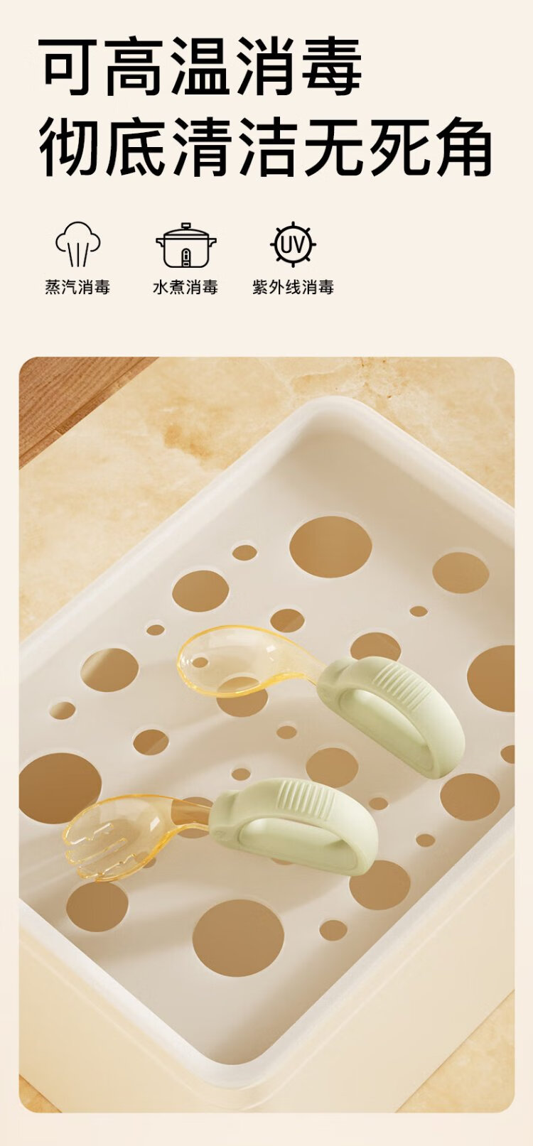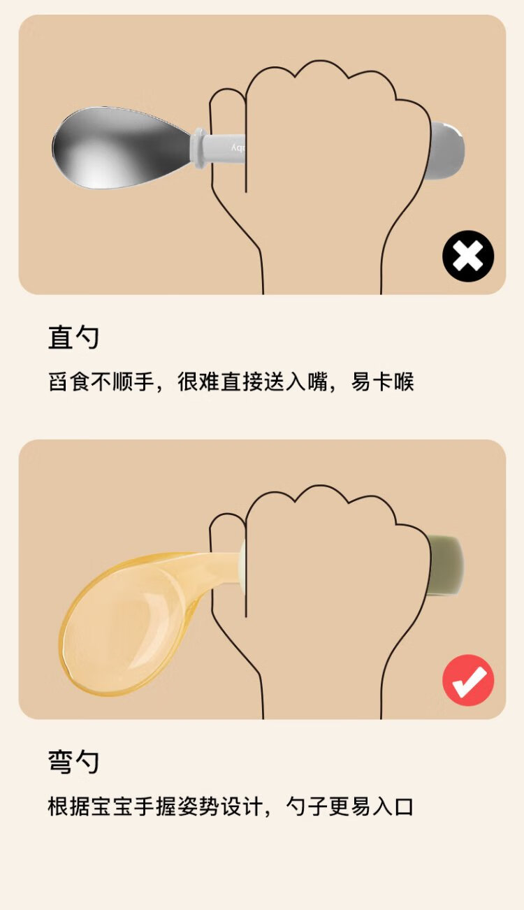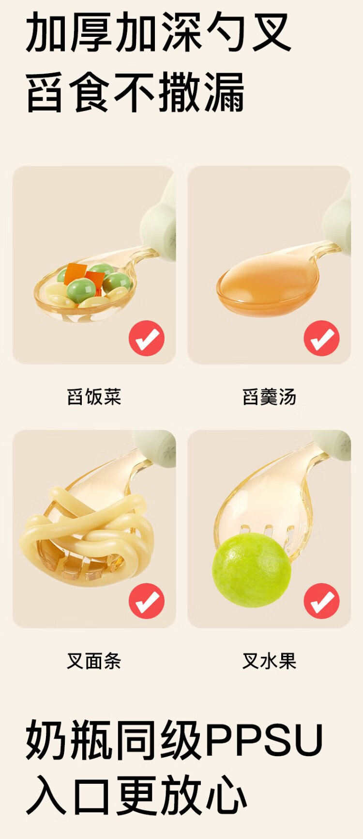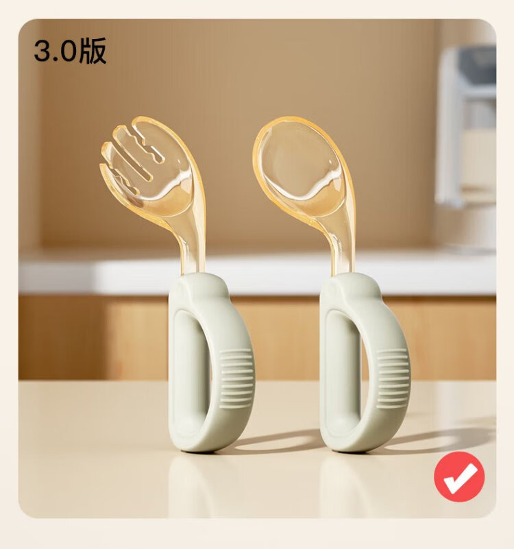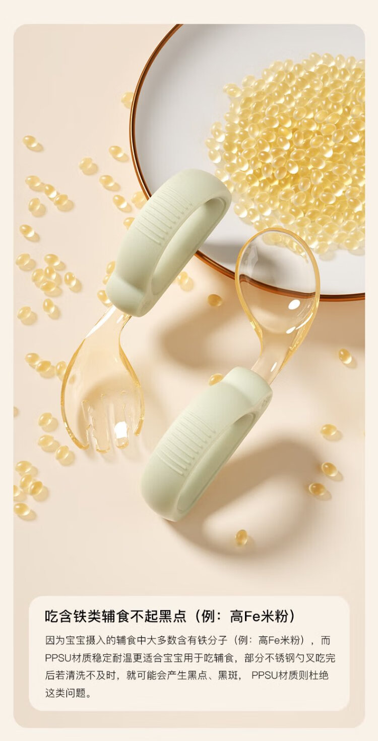 albo儿童勺子宝宝学吃饭餐具PPSU叉勺套装婴儿硅胶短柄训练辅食勺