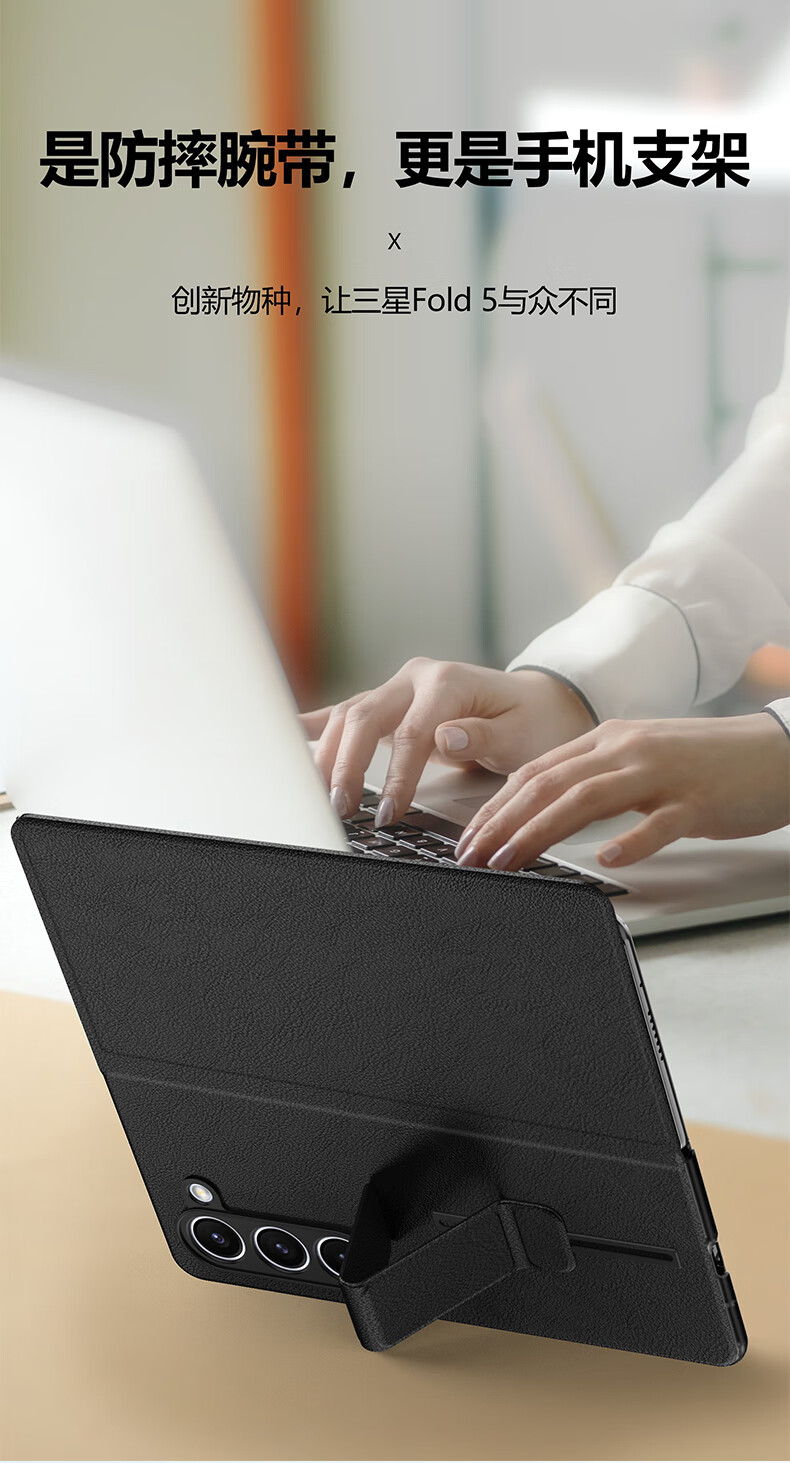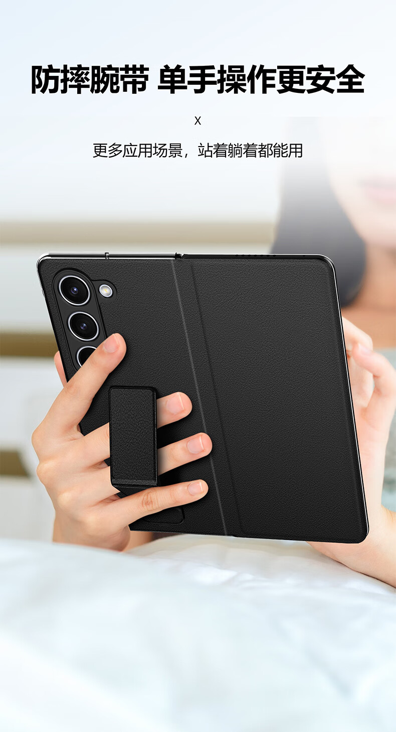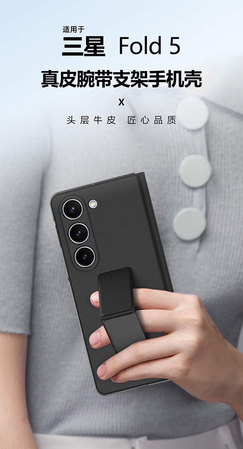 Leather case, anti-fall wristband, suitable for Samsung Fold5 mobile phone case, genuine leather Galaxy Z Fold5 business magnetic flip protective cover, all-inclusive men's and women's business black