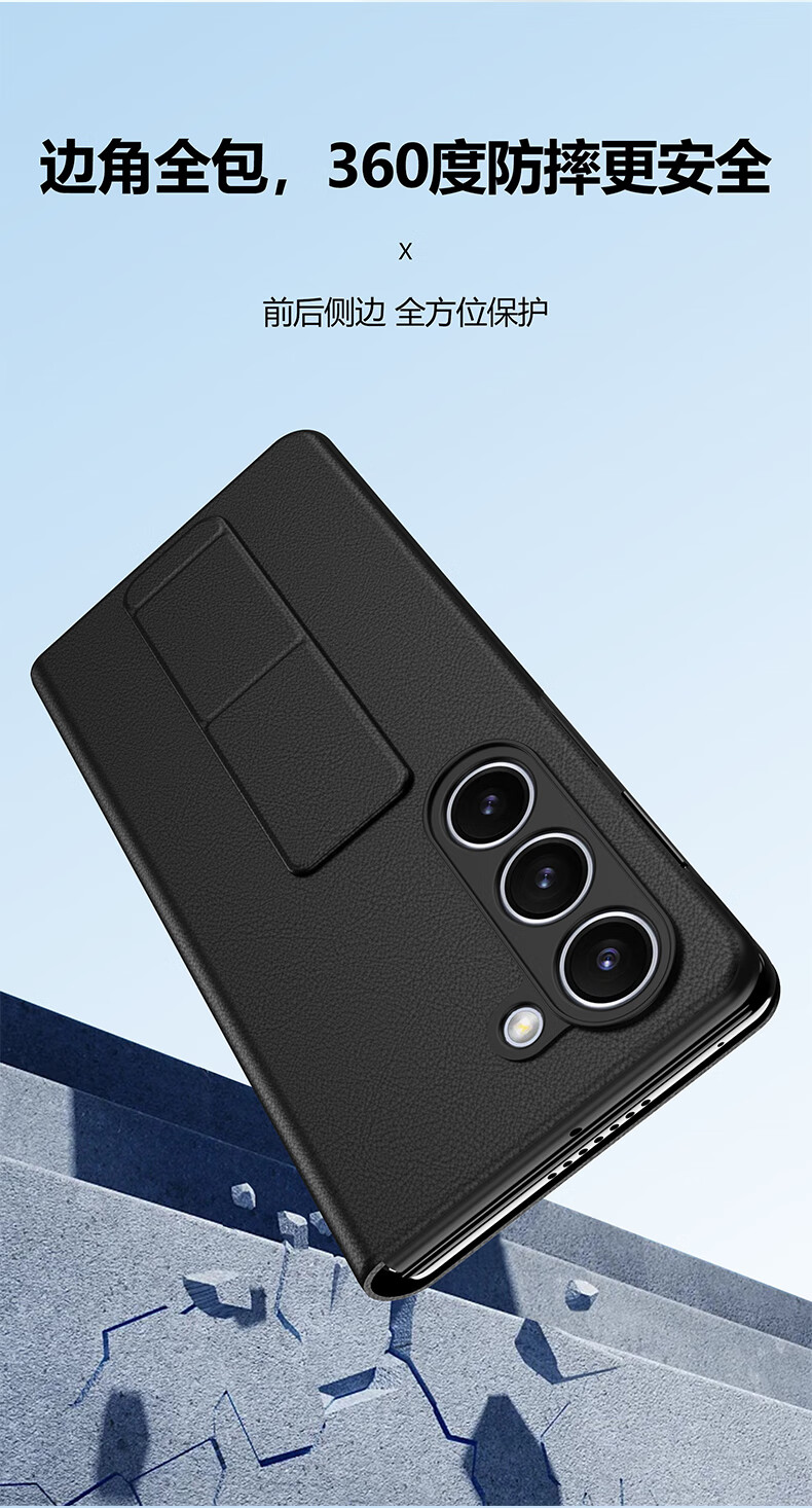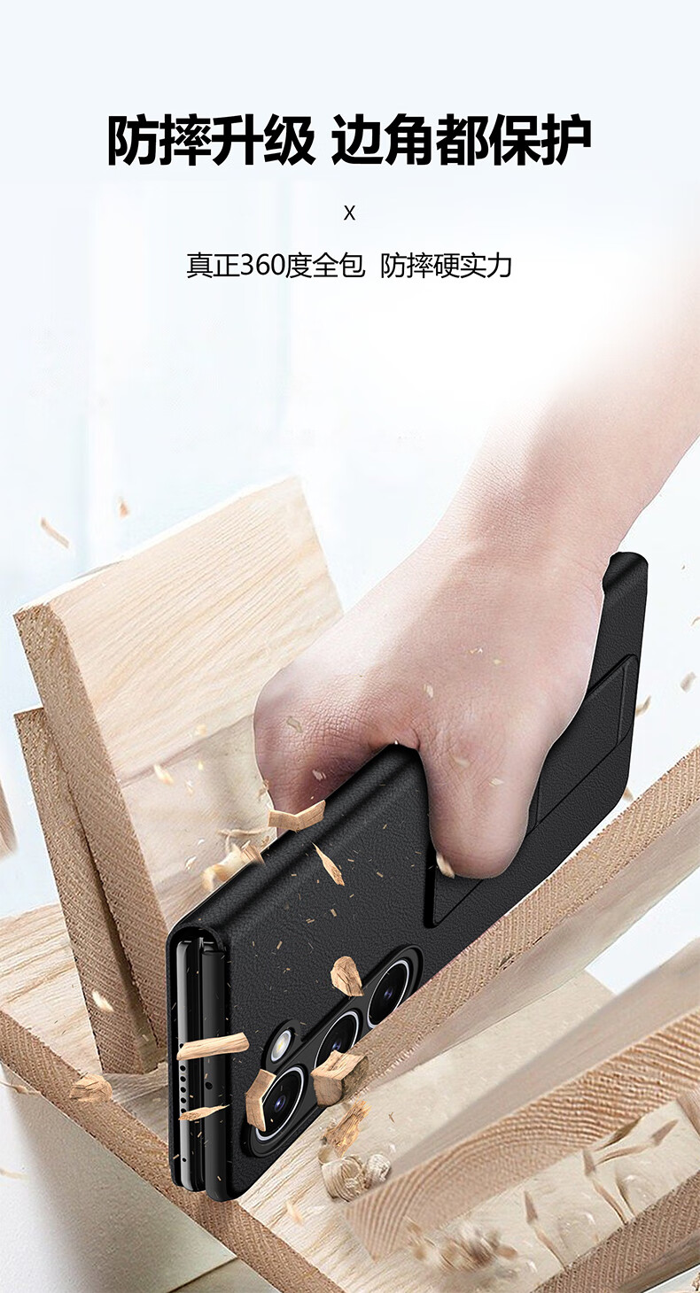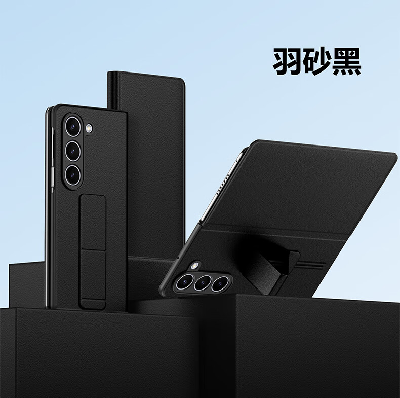 Leather case, anti-fall wristband, suitable for Samsung Fold5 mobile phone case, genuine leather Galaxy Z Fold5 business magnetic flip protective cover, all-inclusive men's and women's business black