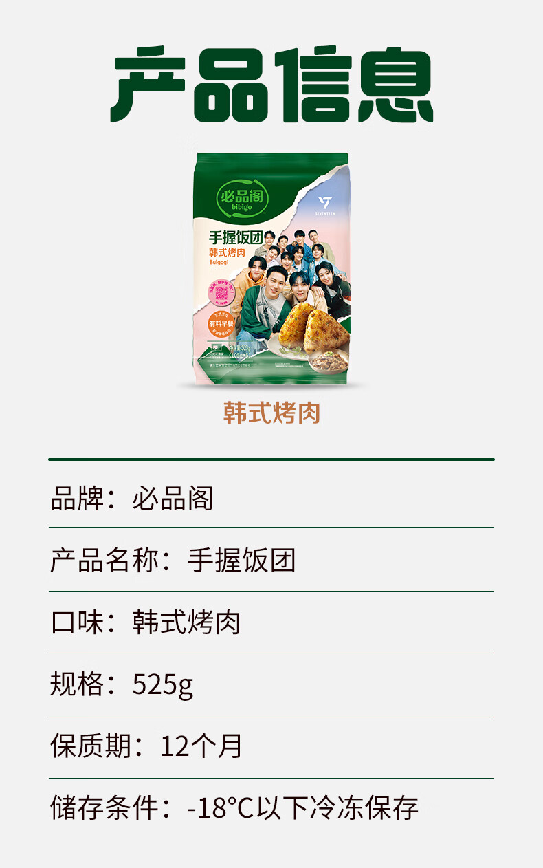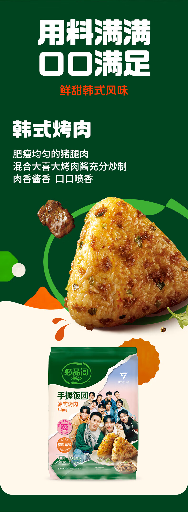 Bibigo Bolas de Arroz de Mano Sabor Barbacoa Coreana 525g (5 piezas) Bolas de Arroz Instantáneas para Desayuno Listas para Comer Mismo Estilo que Sam's