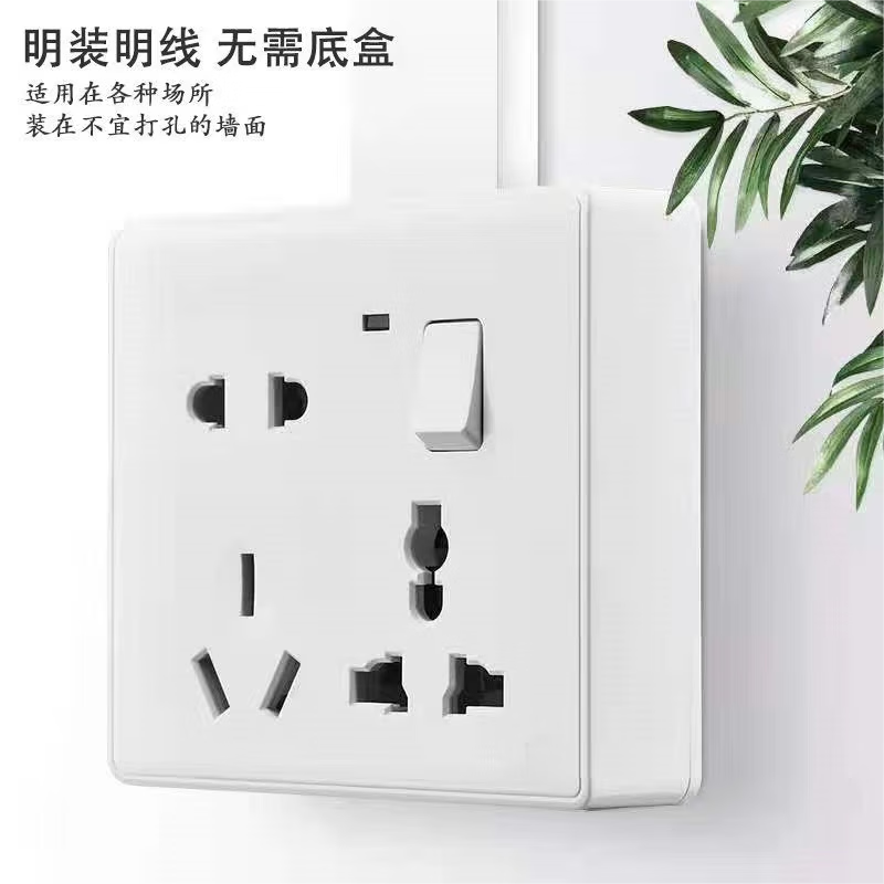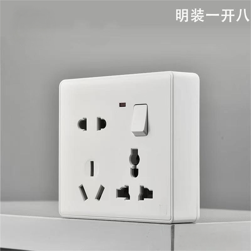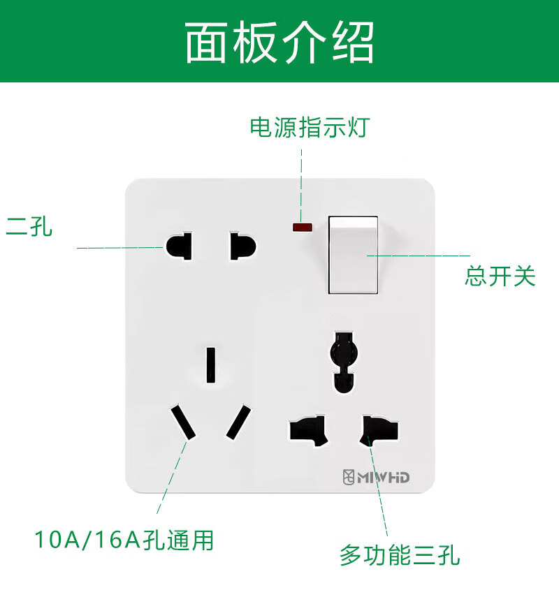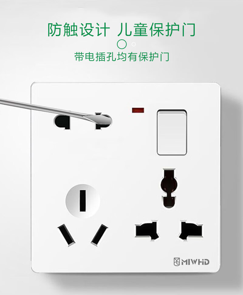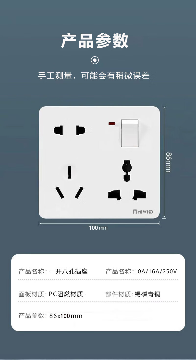 MIWHD 一开单控八孔带灯86型多功能墙壁面板开关插座10A/16A通用 MLGD-34/2