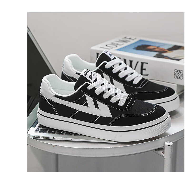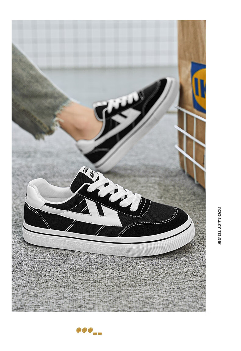 Pull back men's shoes, low-cut versatile canvas shoes, men's classic thick-soled casual shoes, trendy sneakers H191T black 42