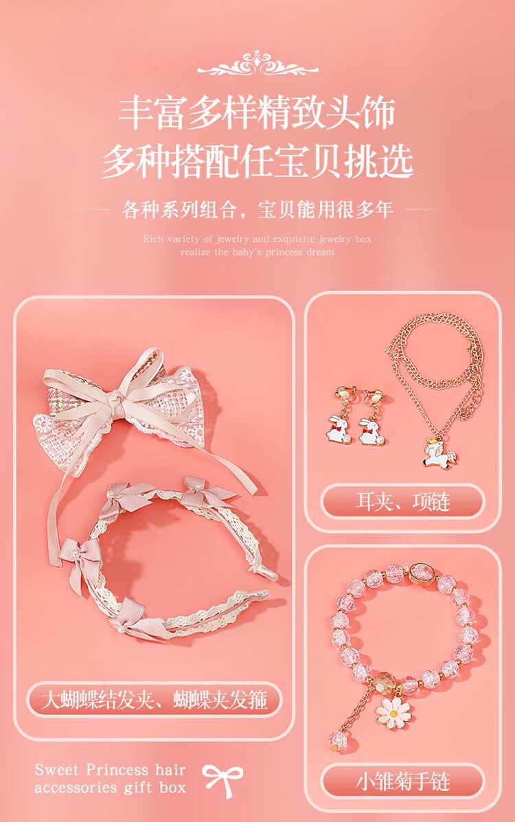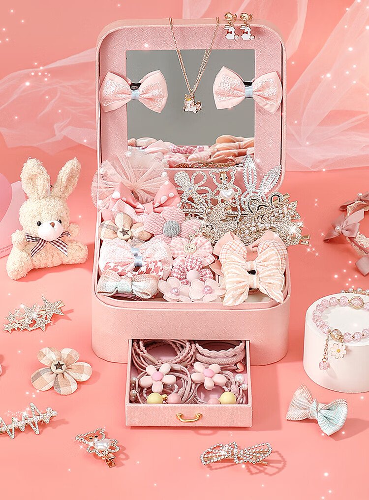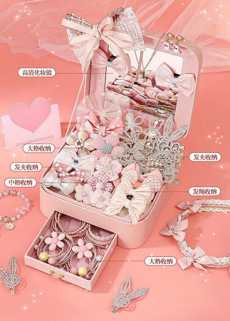 Huangen enfants princesse cheveux accessoires coffret cadeau coffret à bijoux petite fille jouet coiffure 4-6 ans 7-12-15 cadeau d'anniversaire