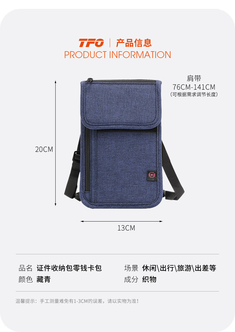 TFO North American Series Dokumententasche, Diebstahlschutz, Reisepass, Aufbewahrungstasche, Münzbörse, 9402443, Marineblau