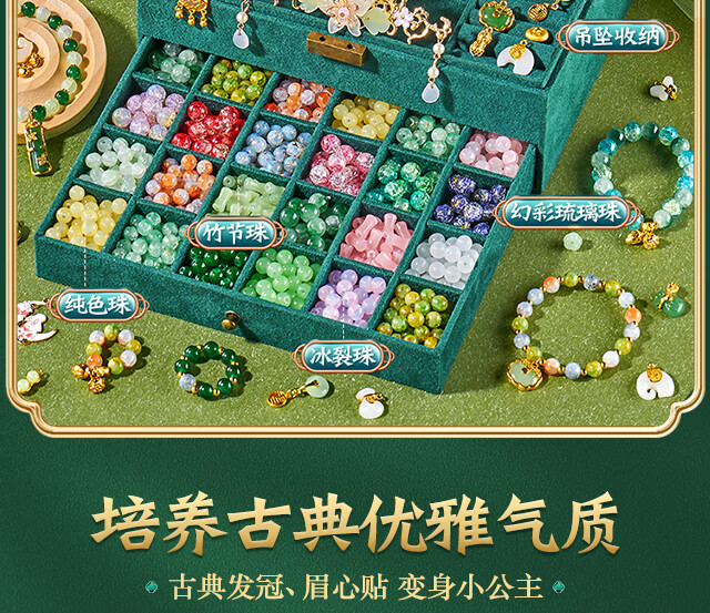 Aozhijia-accesorios para el cabello antiguos para niños, caja de regalo, tocado con cuentas de vidrio hecho a mano, juguetes para jugar a las casitas, regalo de cumpleaños para niña