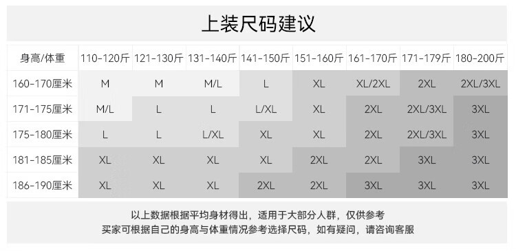 China (cm) 160-165/84-86 165-170 / 88-90 167-172 / 92-96 168-173 / 98-102 170-176 / 106-110