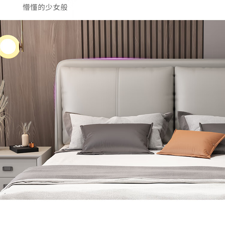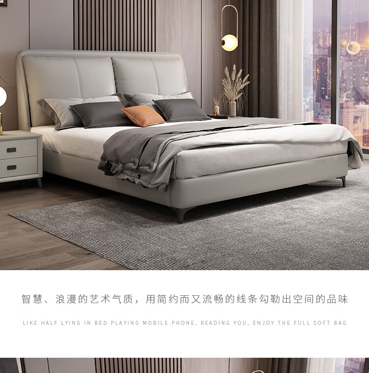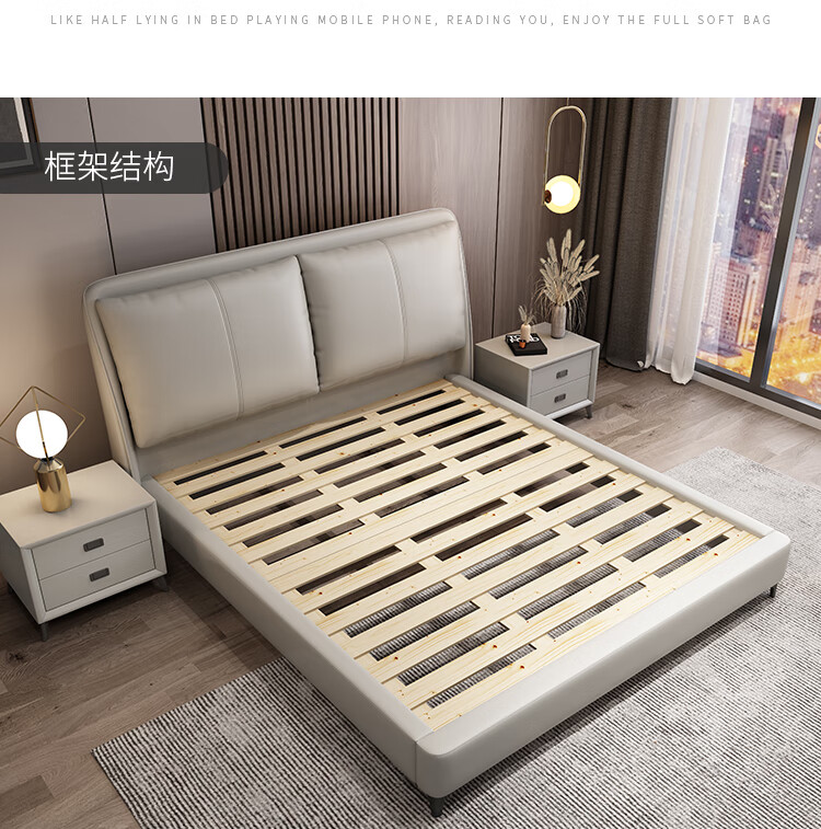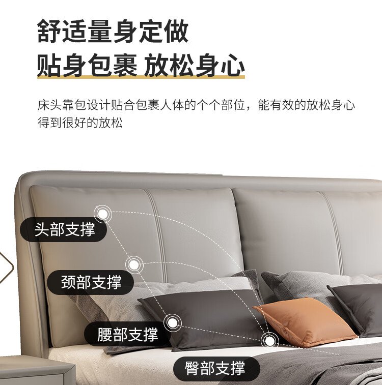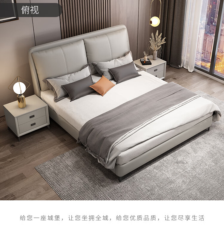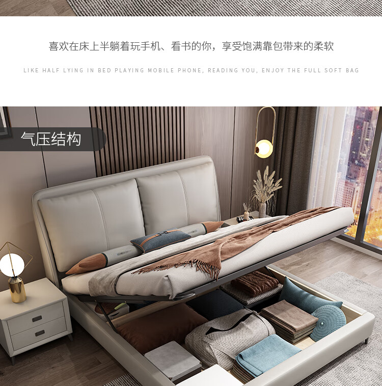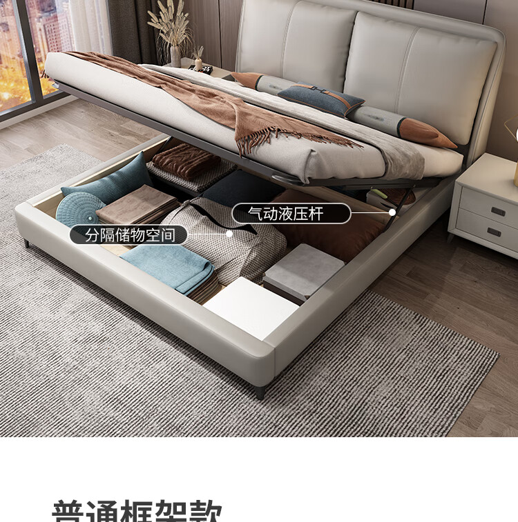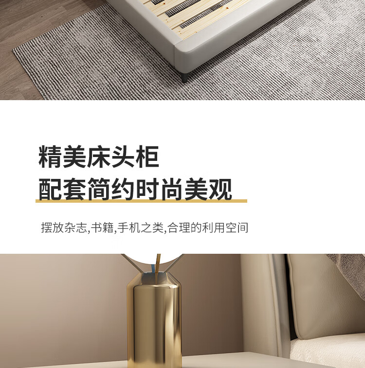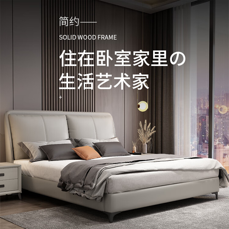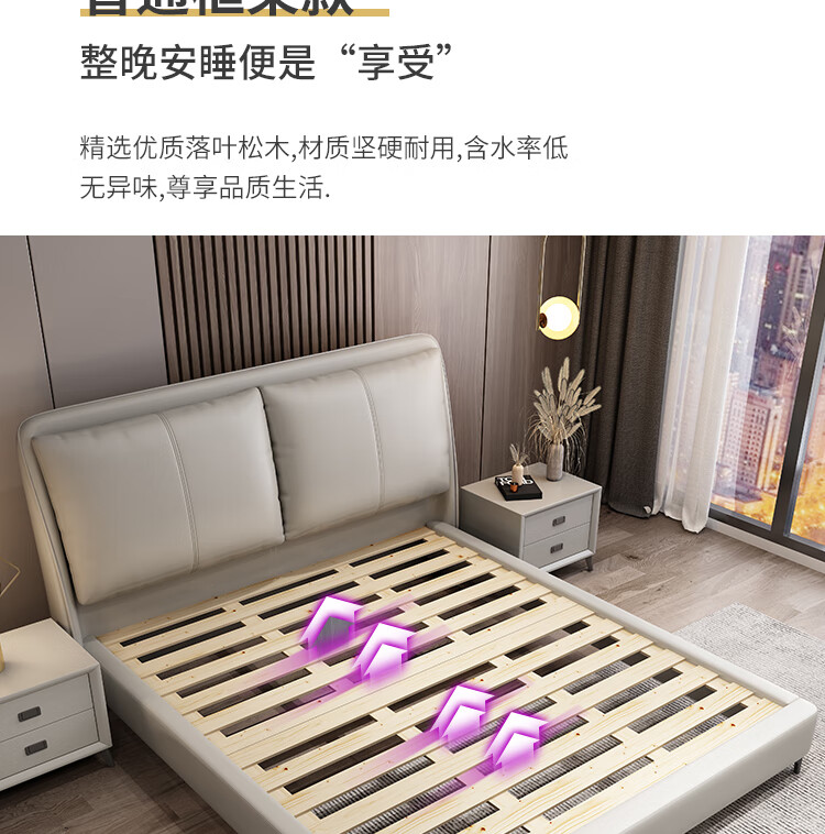 梓屋 床双人床1.8米2米简约主卧大床实木储物床家用卧室皮床7029#