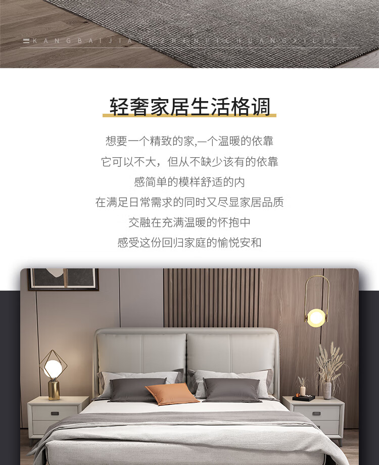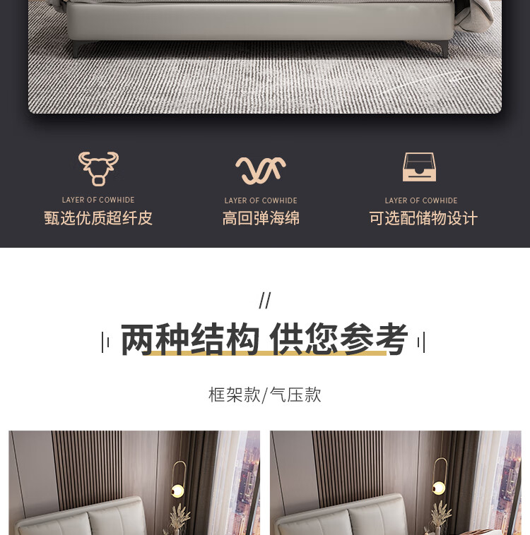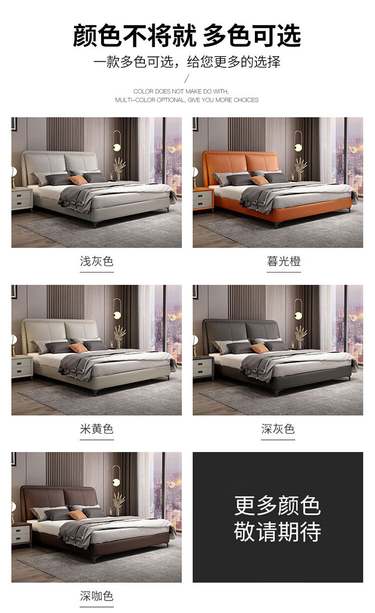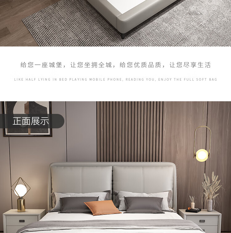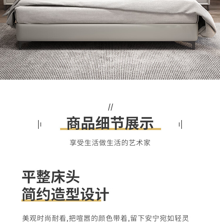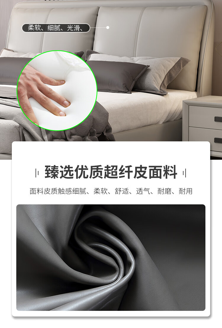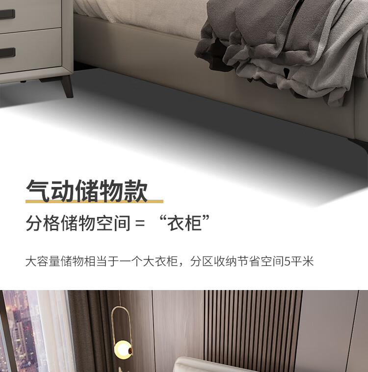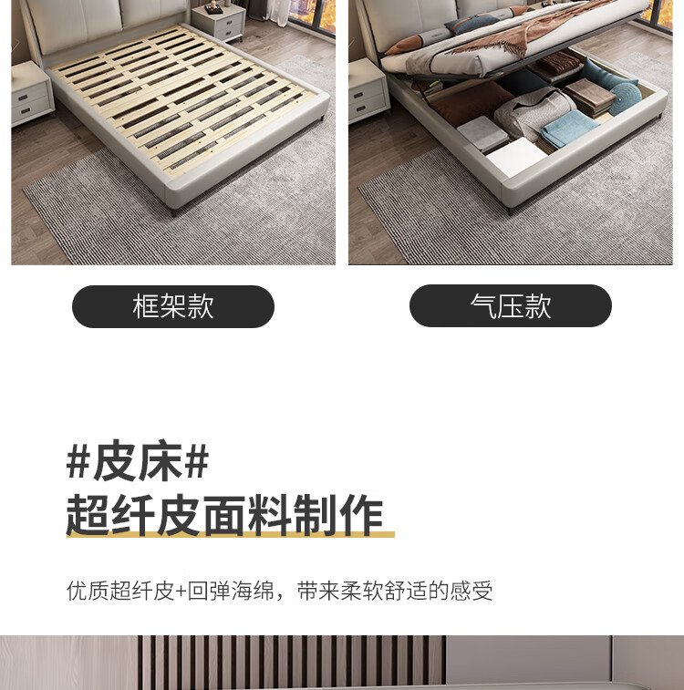 梓屋 床双人床1.8米2米简约主卧大床实木储物床家用卧室皮床7029#
