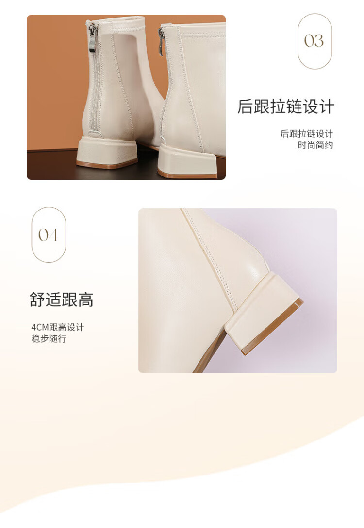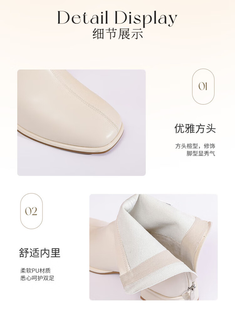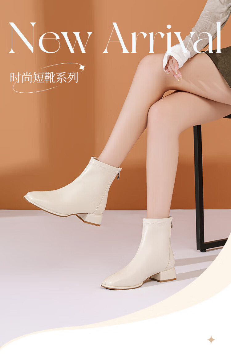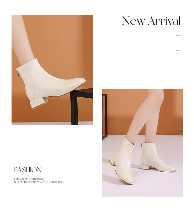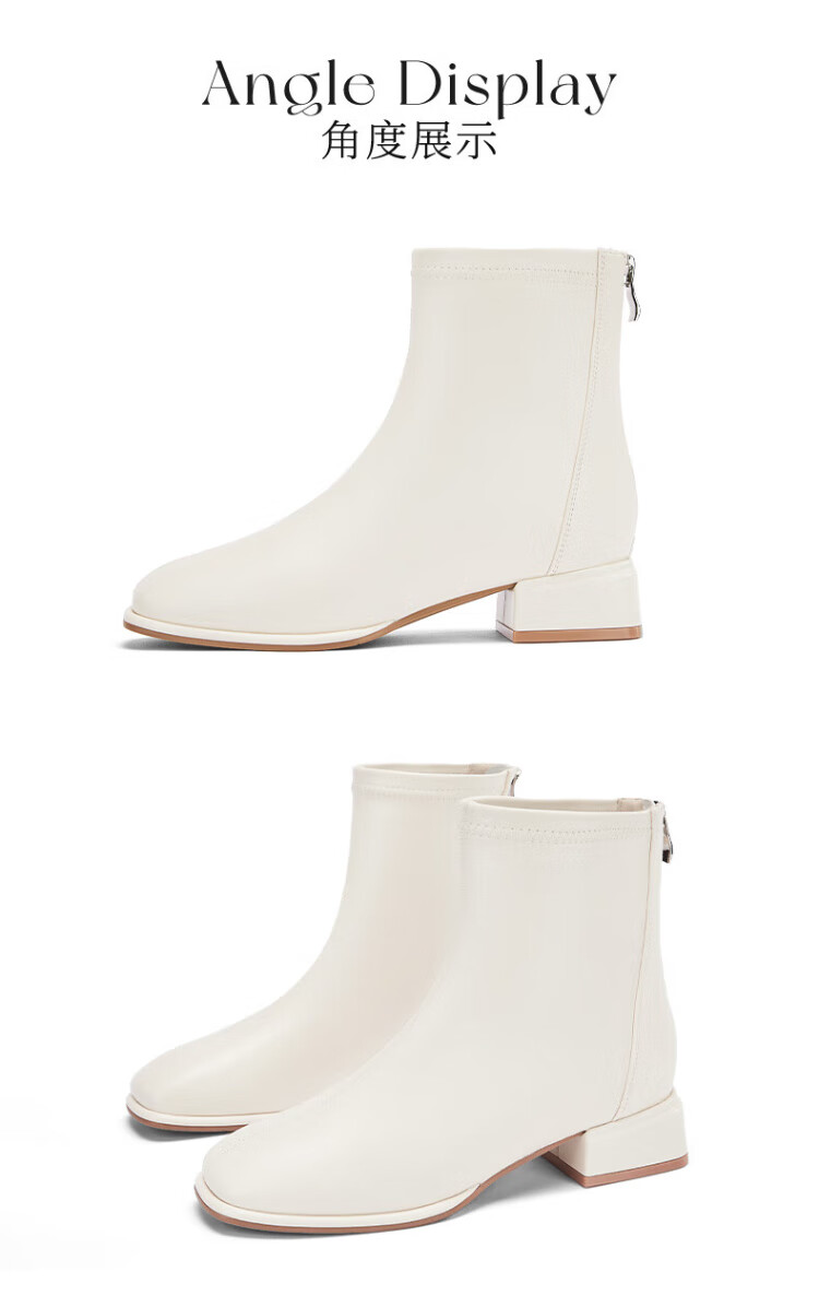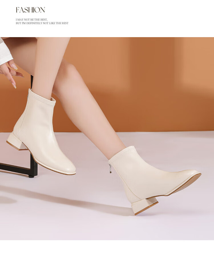 Daphne Botas cortas elegantes intelectuales Botas de moda de otoño para mujer Botas desnudas francesas para mujer Botas de moda Blanco 36