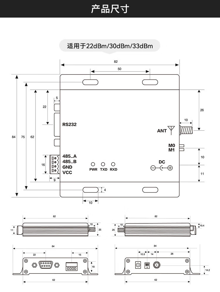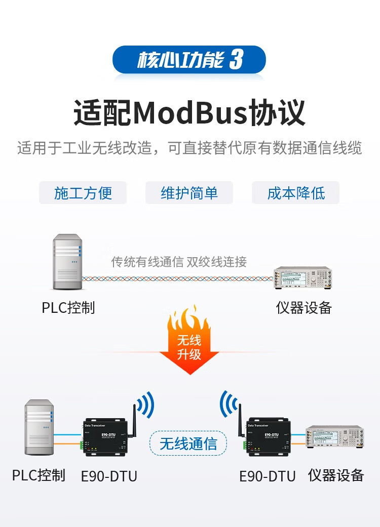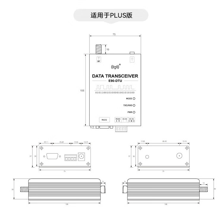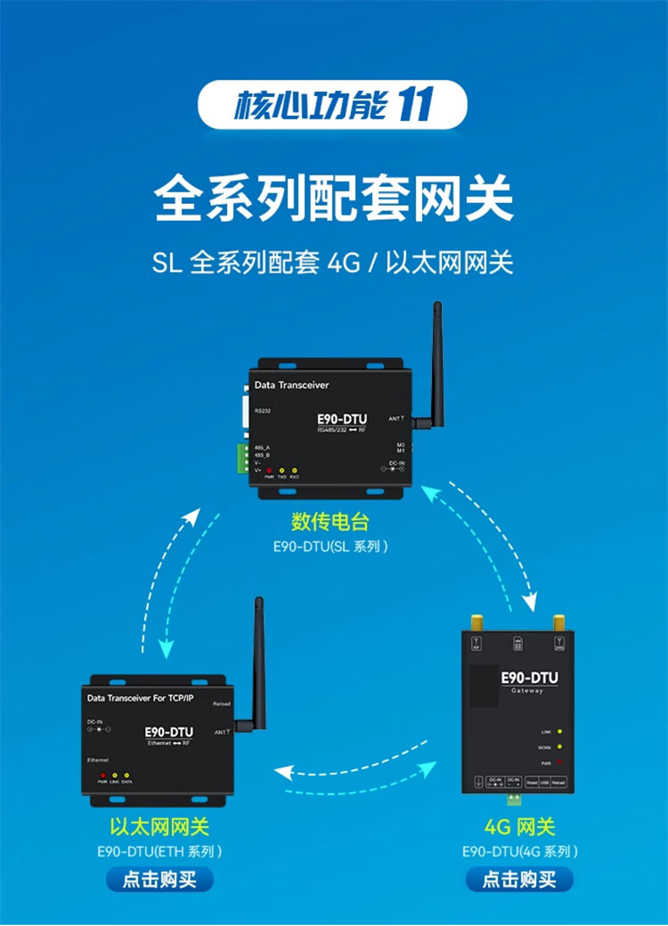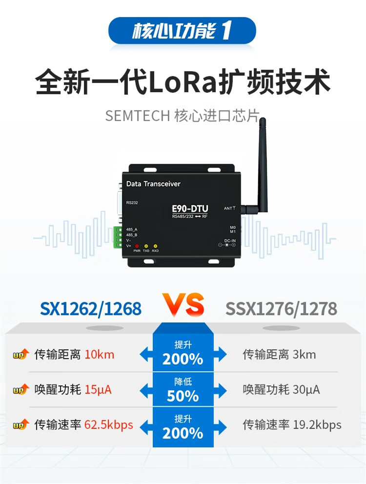 正鑫远 LoRa模块SX1355射频芯片数传电台中继组网E90-DTU900SL30 无需电源胶棒天线免费普通版(1个)