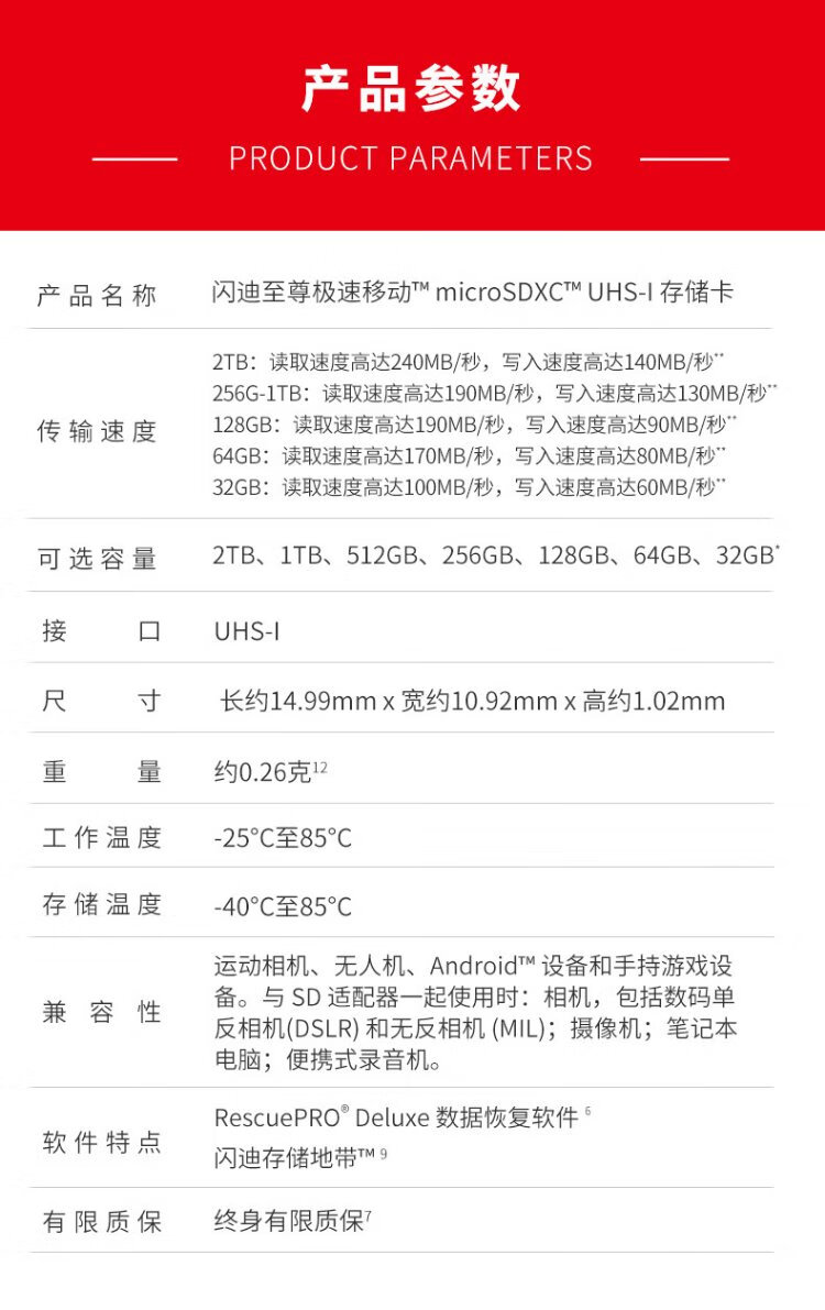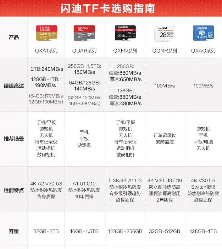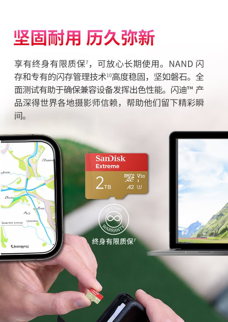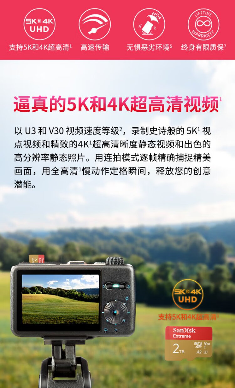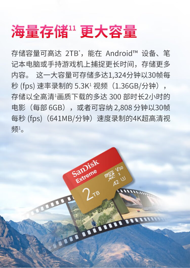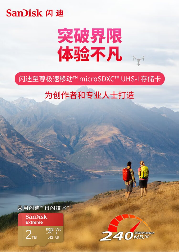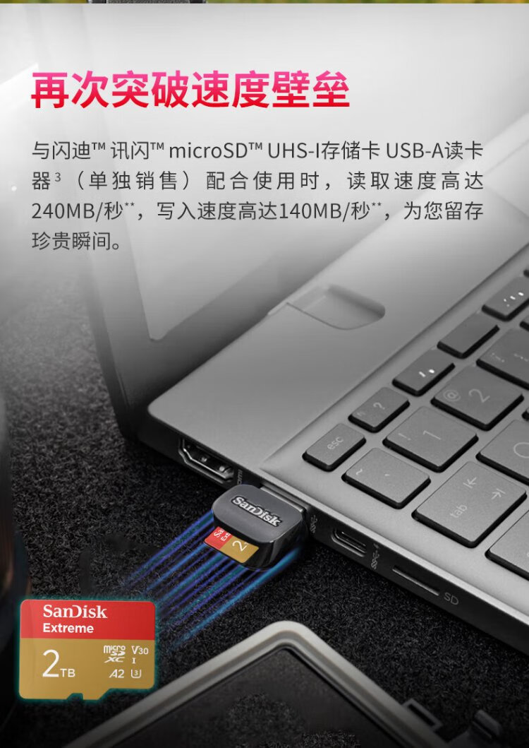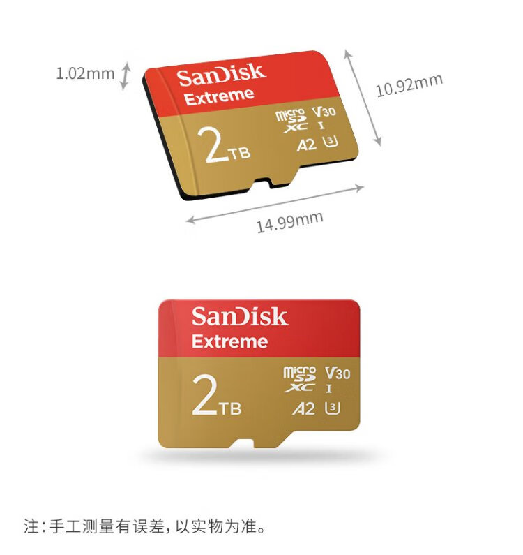 SanDisk 2 TB TF (MicroSD) Speicherkarte 5K/4K A2 V30 U3 Fahrkamera Actionkamera Drohne Überwachung Speicherkarte Lesen 240 MB/s Schreiben 140 MB/s