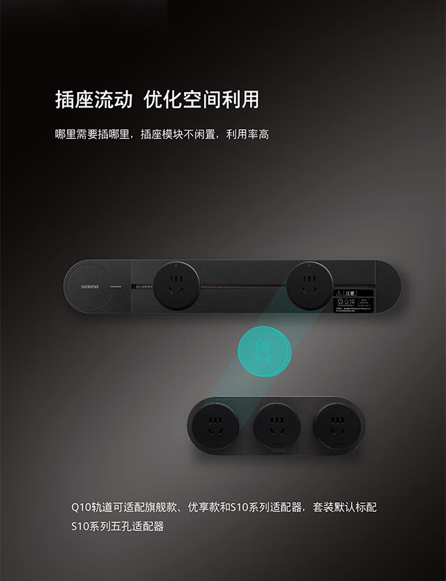 西门子轨道插座 24cm迷你轨道插板+3五孔模块(需配底盒安装) Q10象牙白