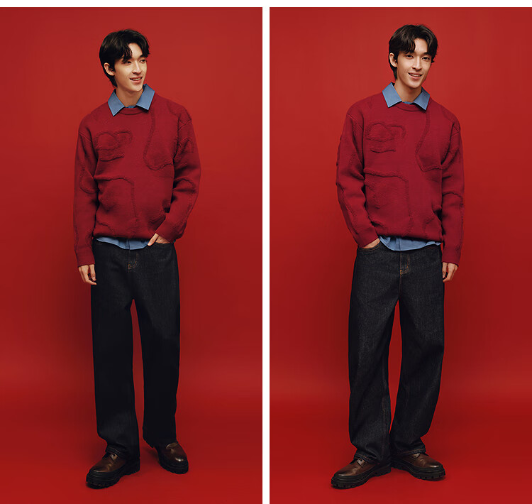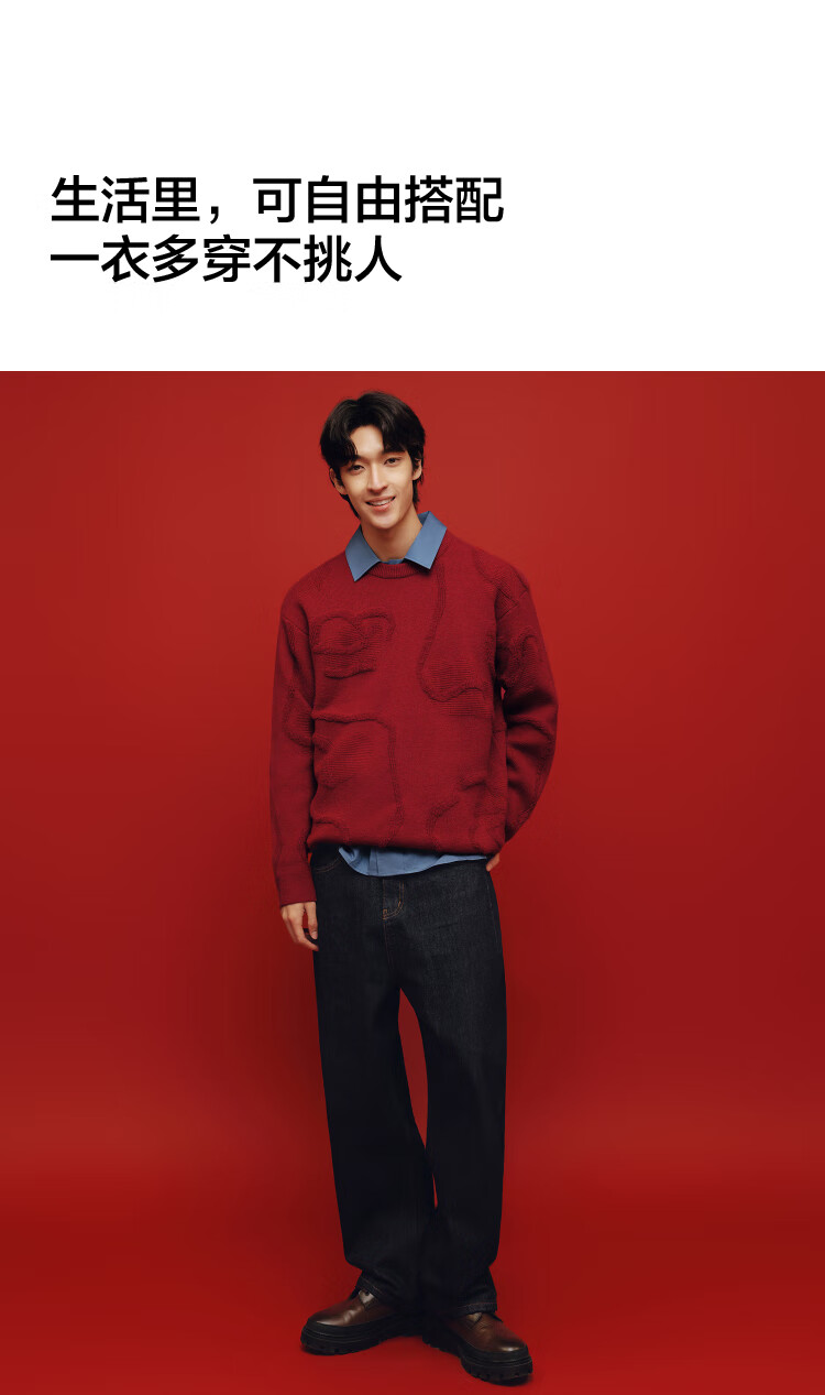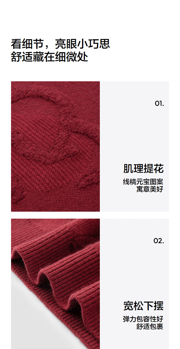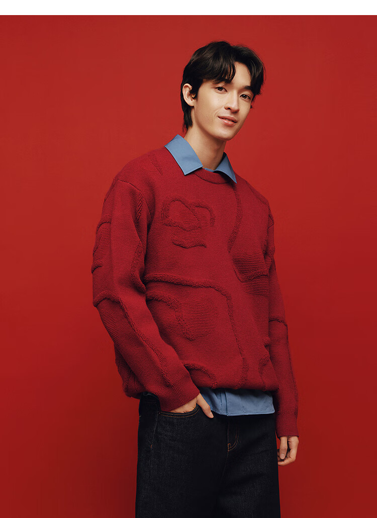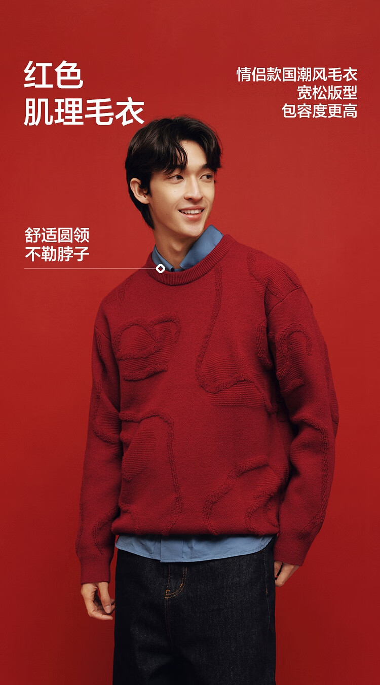 森马(Semir)毛衫男新年红色毛衣肌理感提花2025春季北极绒针织衫109125107205