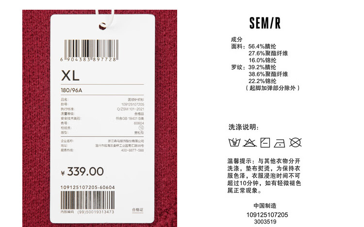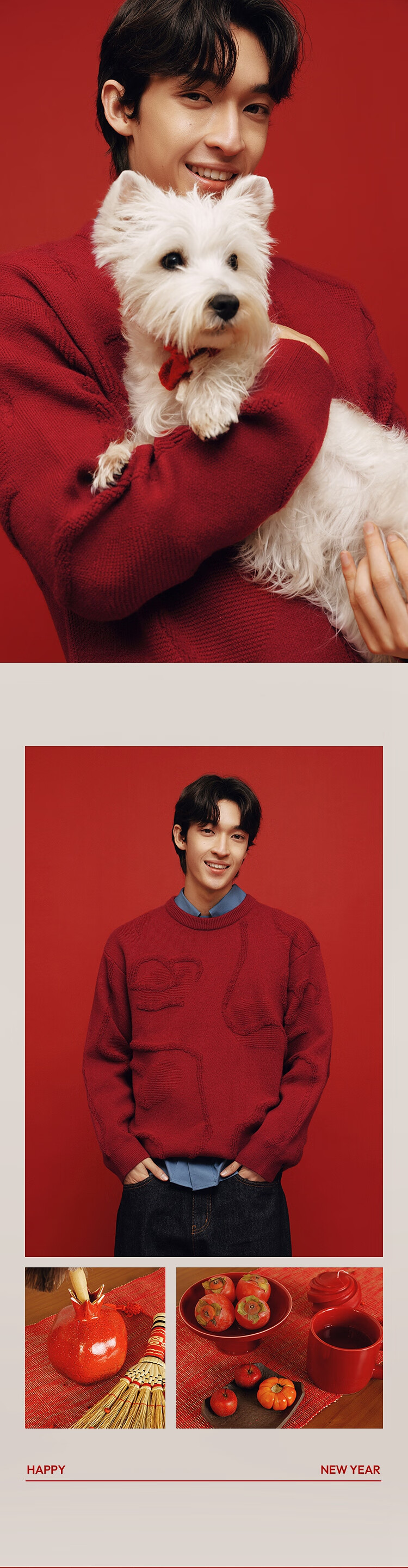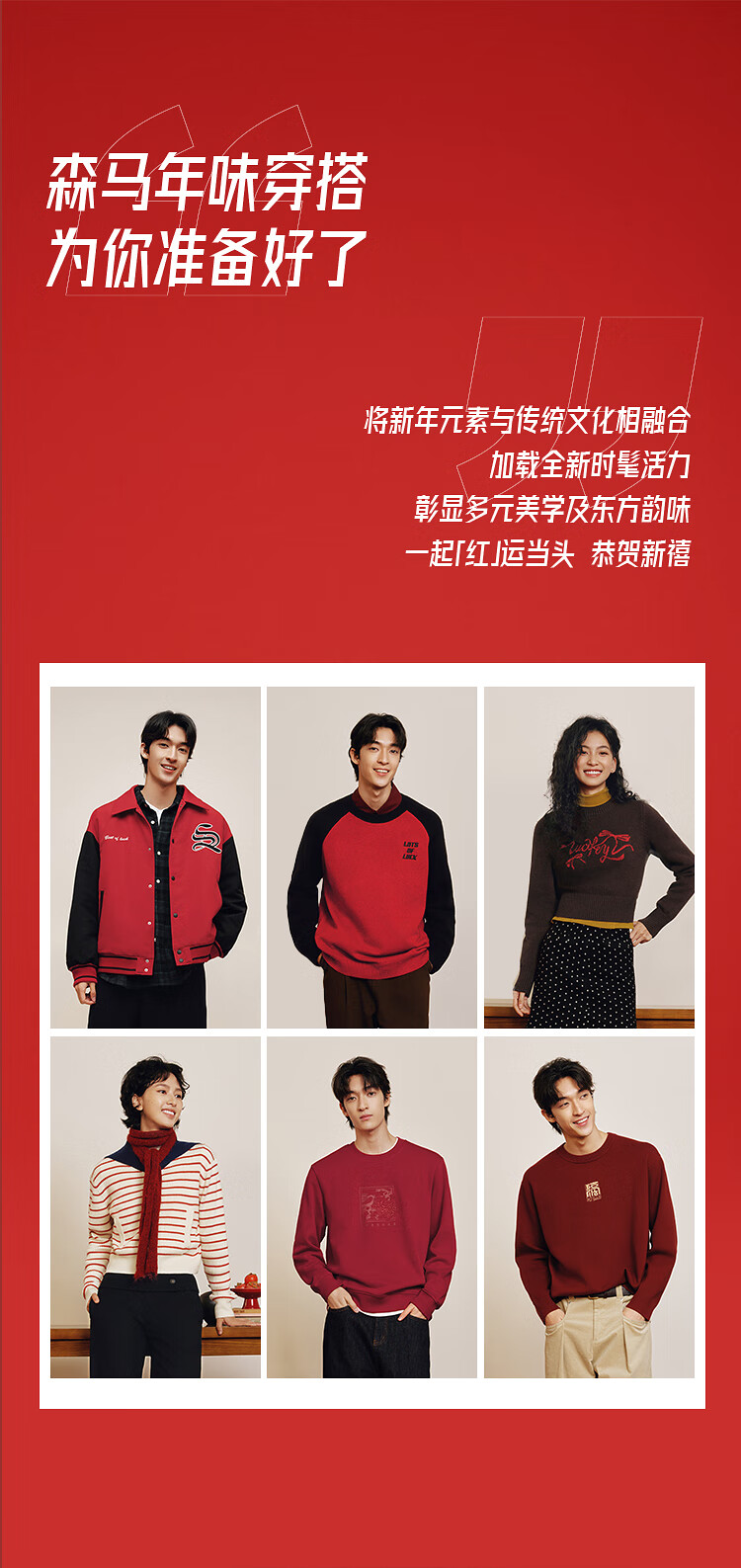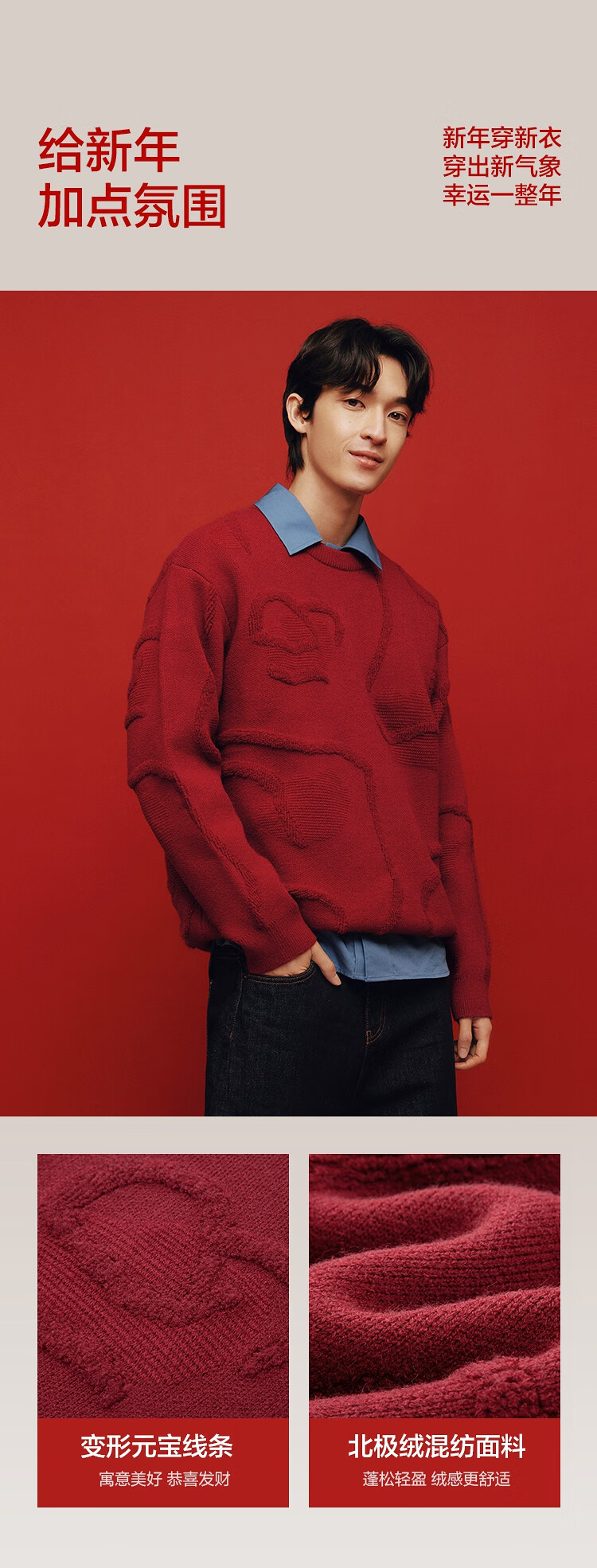 森马(Semir)毛衫男新年红色毛衣肌理感提花2025春季北极绒针织衫109125107205
