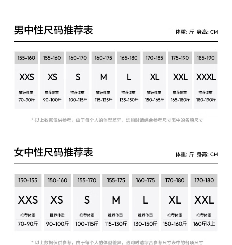 China (cm) 160-165/84-86 165-170 / 88-90 167-172 / 92-96 168-173 / 98-102 170-176 / 106-110