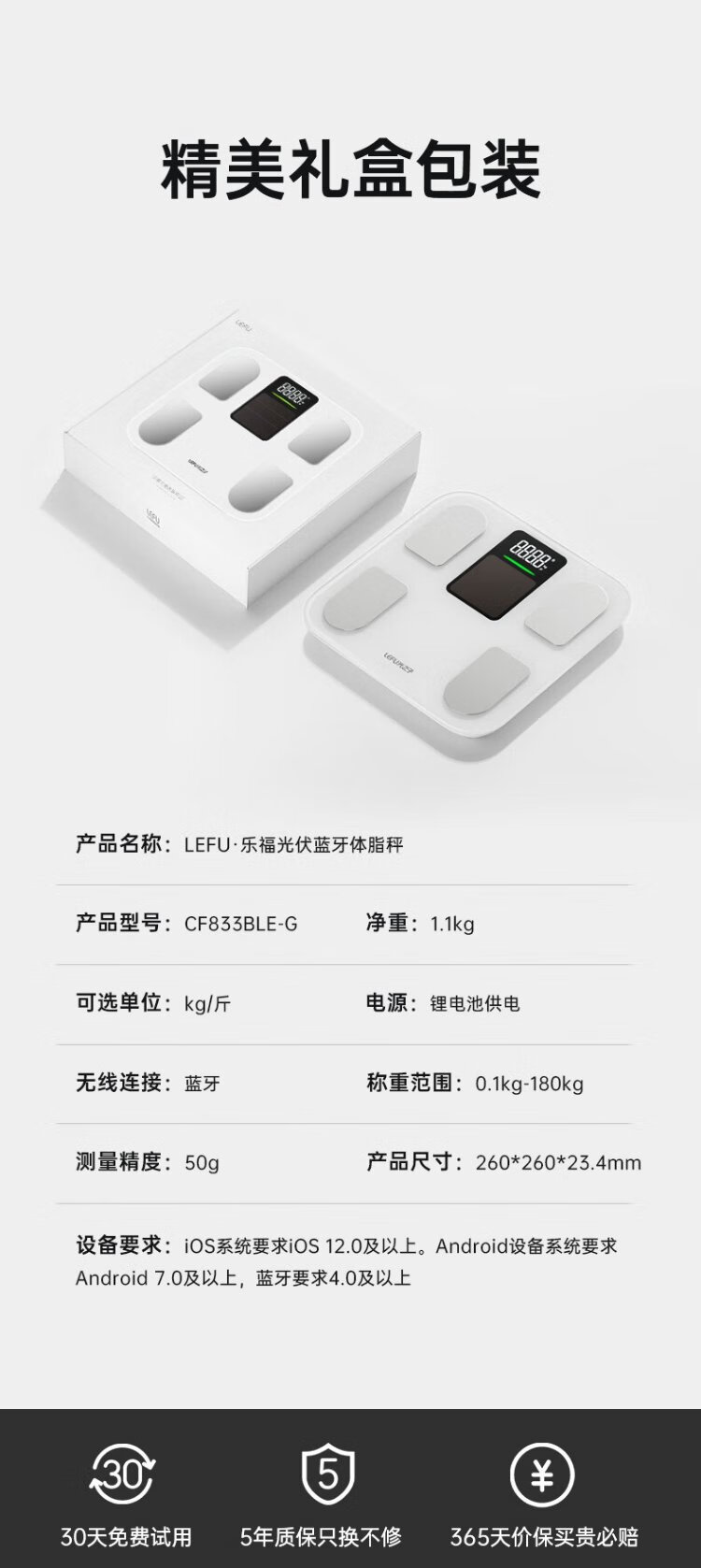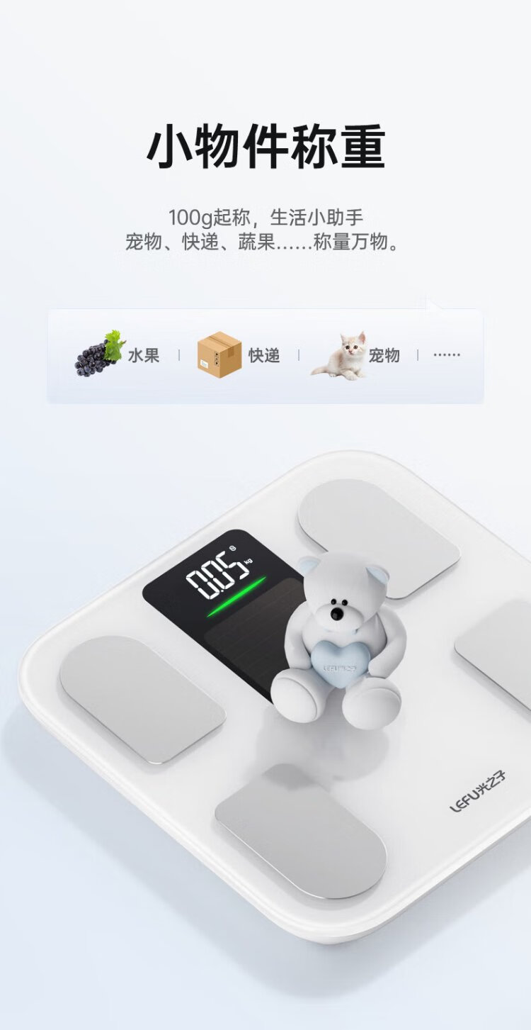 LEFU beliebige Lichtladung, intelligente Körperfettwaage, elektronische Waage für den menschlichen Körper, 0,1 Jin Jin entspricht 0,5 kg, hochpräziser 48-Punkte-Körperdaten-LED-Bildschirm unterstützt das Wiegen kleiner Objekte