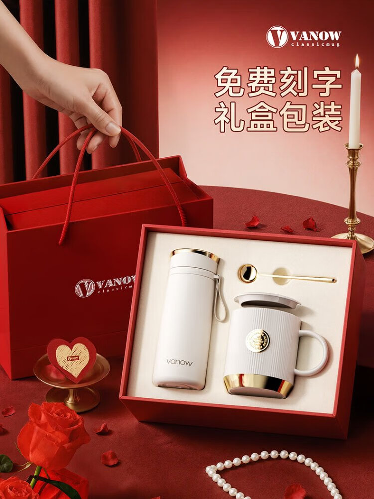 Vanow Kinder-Kaffee-Thermosbecher, weiblich, gut aussehend, beste Freundin, Geburtstagsgeschenk, 2025, neue Geschenkbox, begleitende Geschenkbox, individuelle Wassertasse