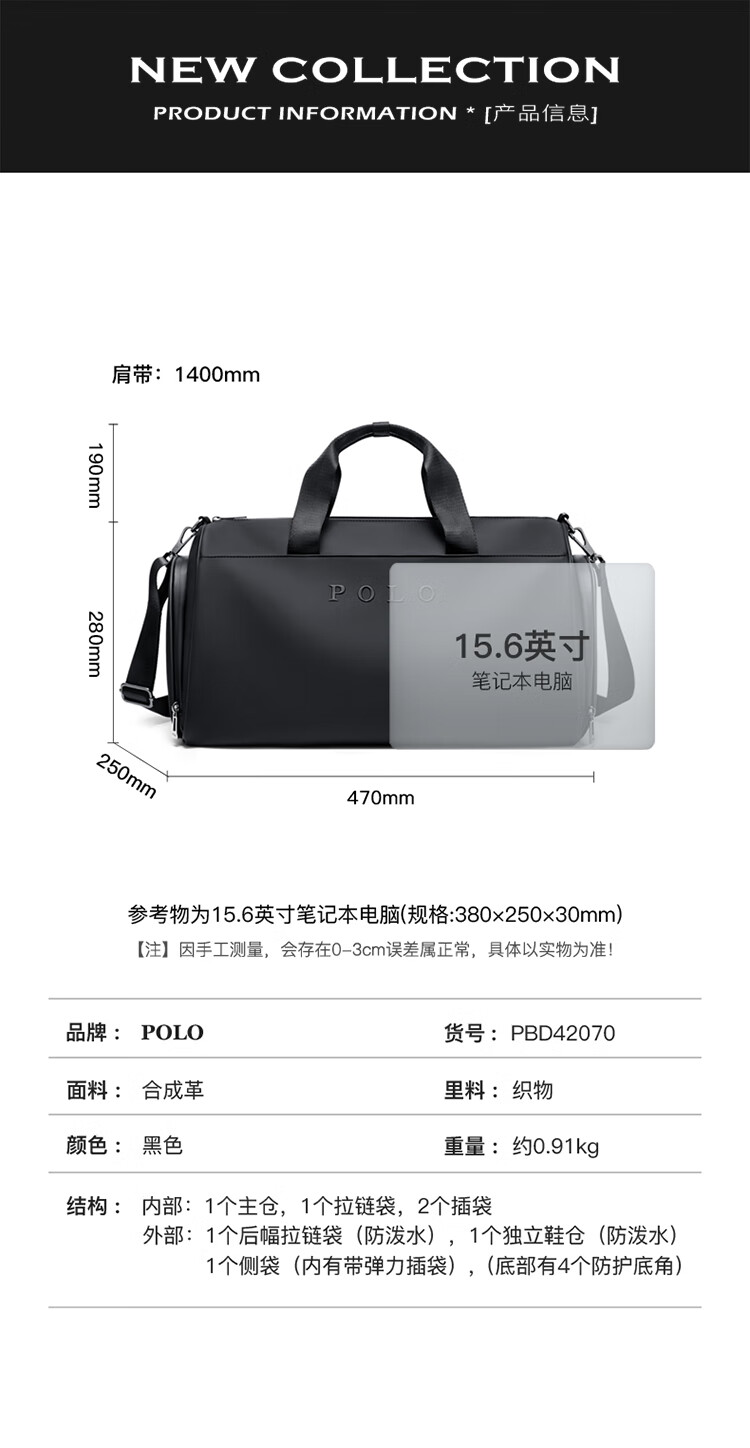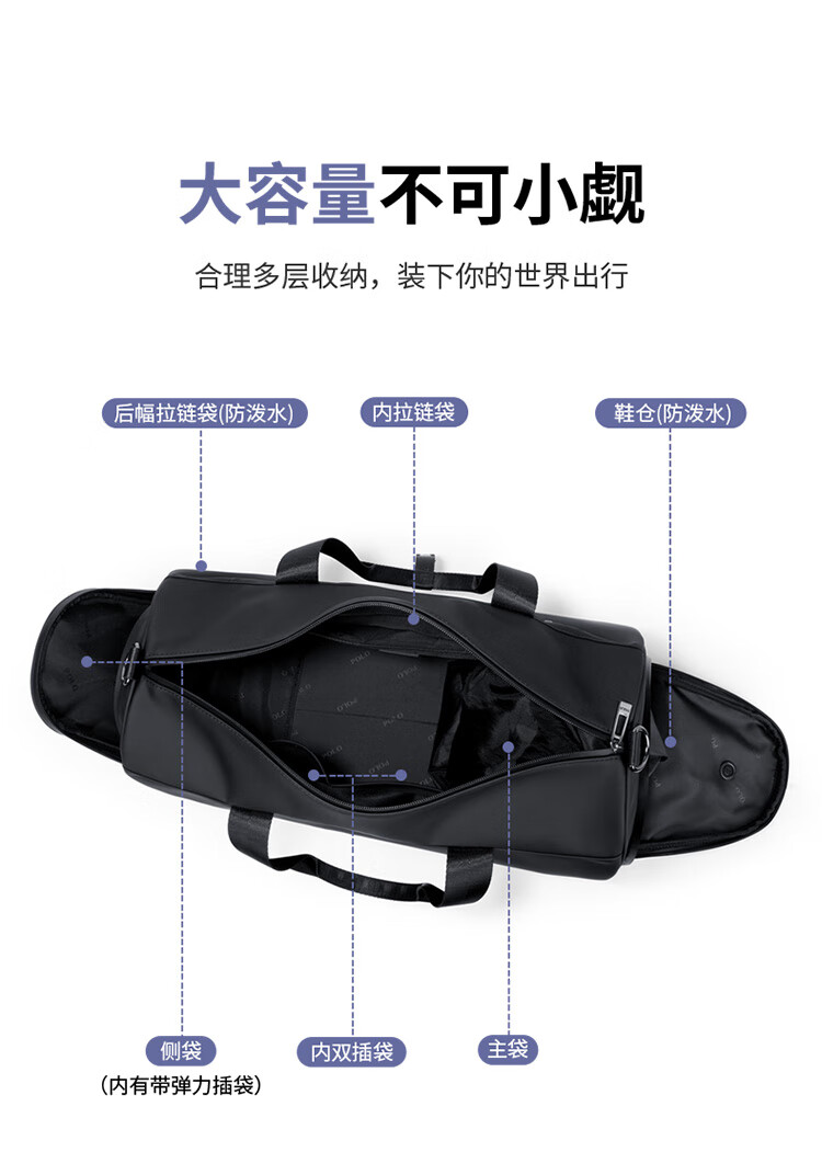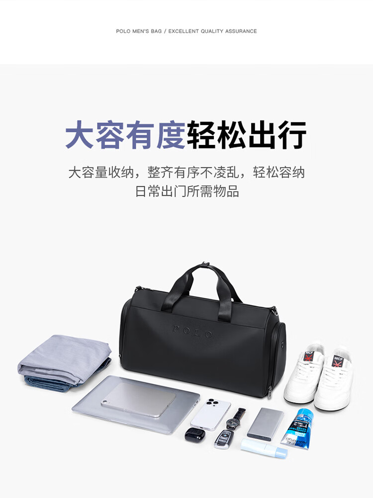 POLO手提旅行包大容量轻便行李袋男士运动健身包短途商务出差行李包