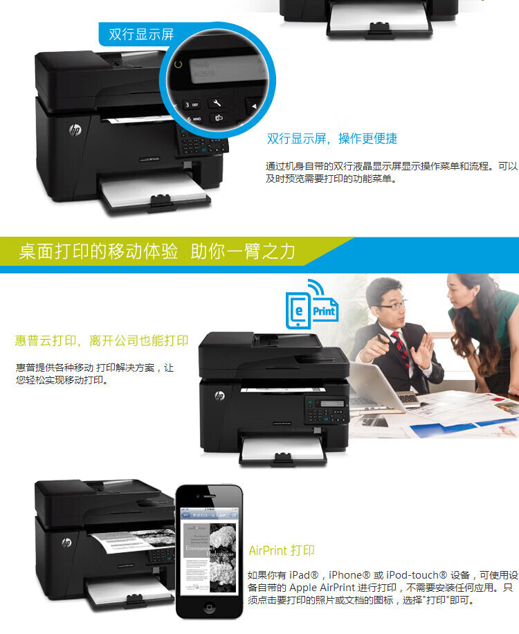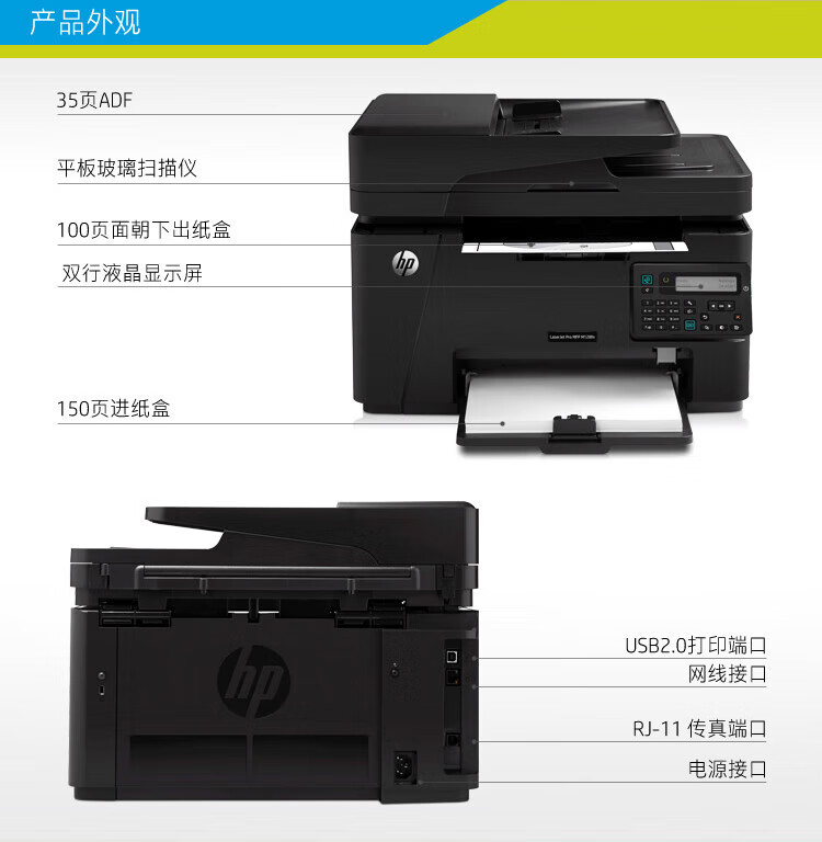 惠普M128fn黑白激光打印机 打印复印扫描传真多功能一体机