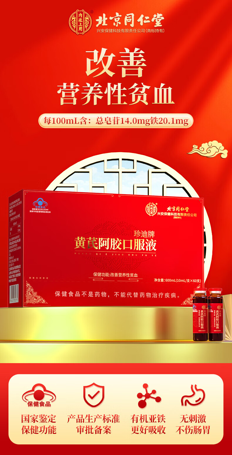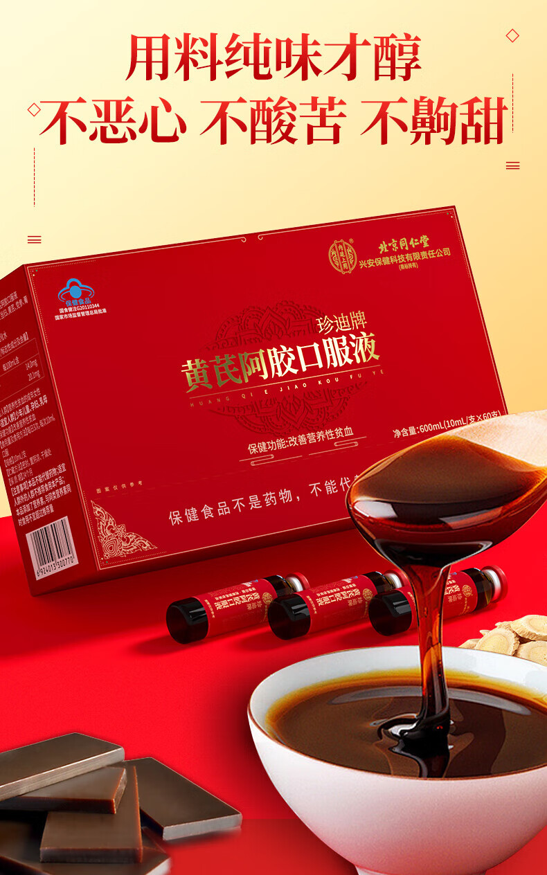 Tongrentang Eselfell-Gelatine, blutverstärkende orale Flüssigkeit, ergänzt Eisen und Blut zur Verbesserung von Anämie, nährt Qi und Blut bei Frauen, nährt Qi und Blut bei Frauen, nährt Blut bei Frauen