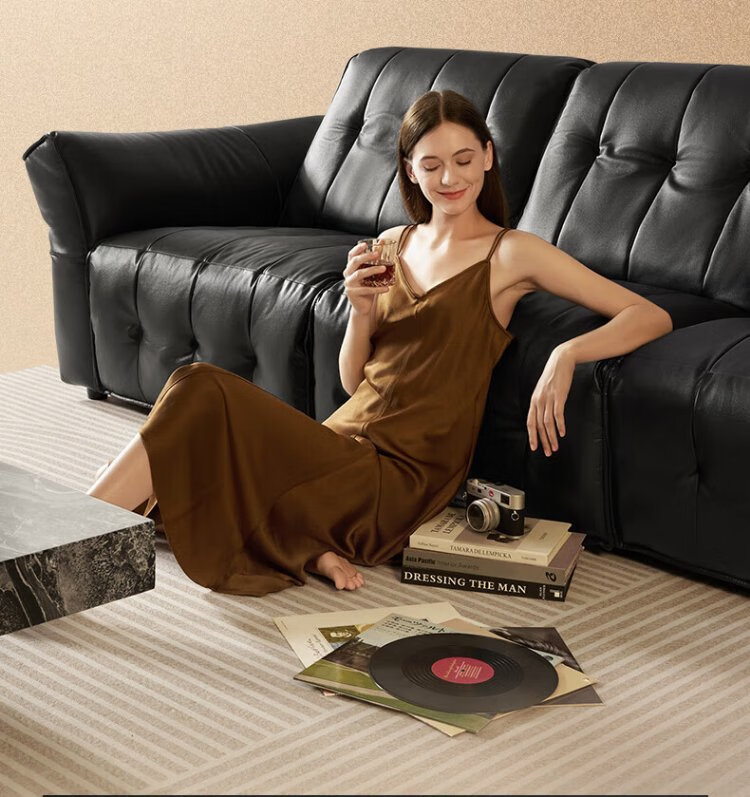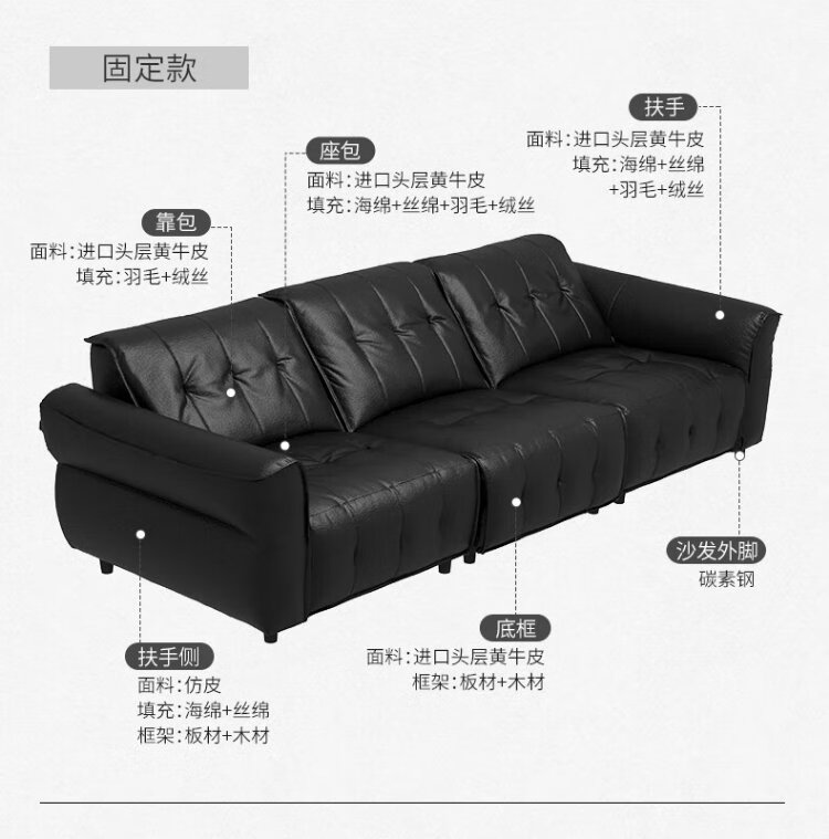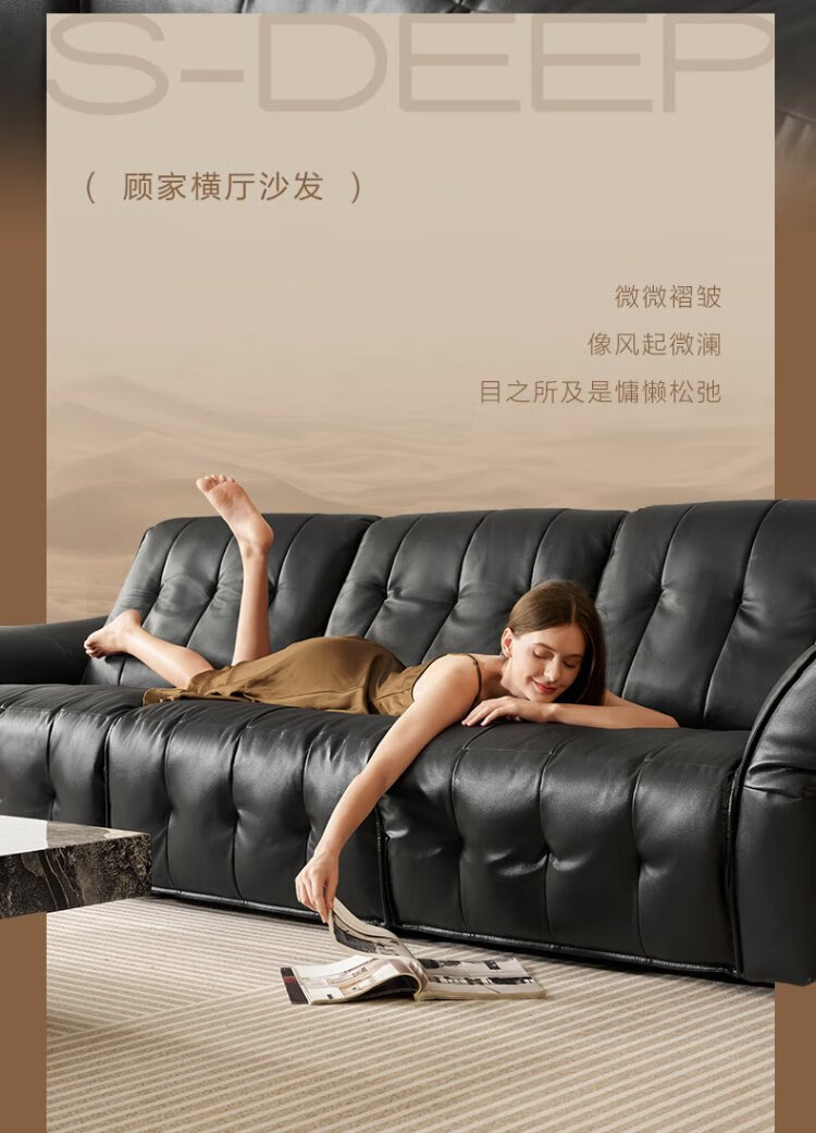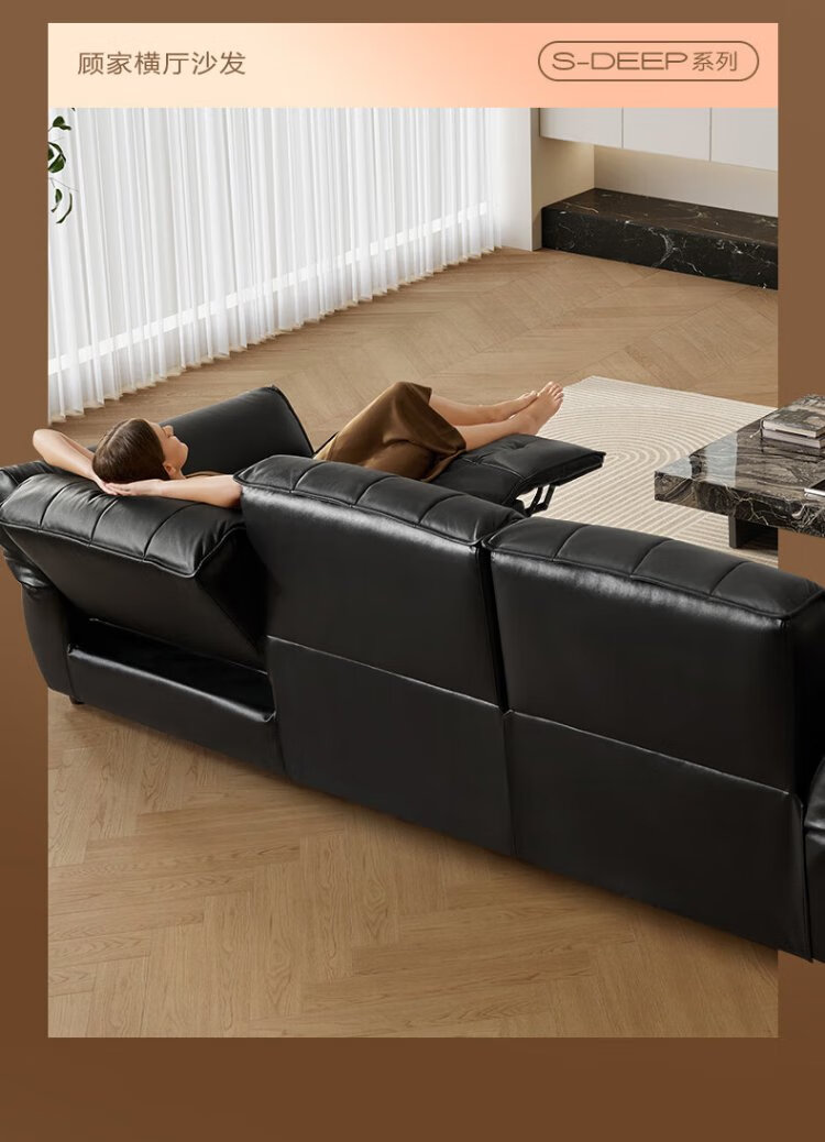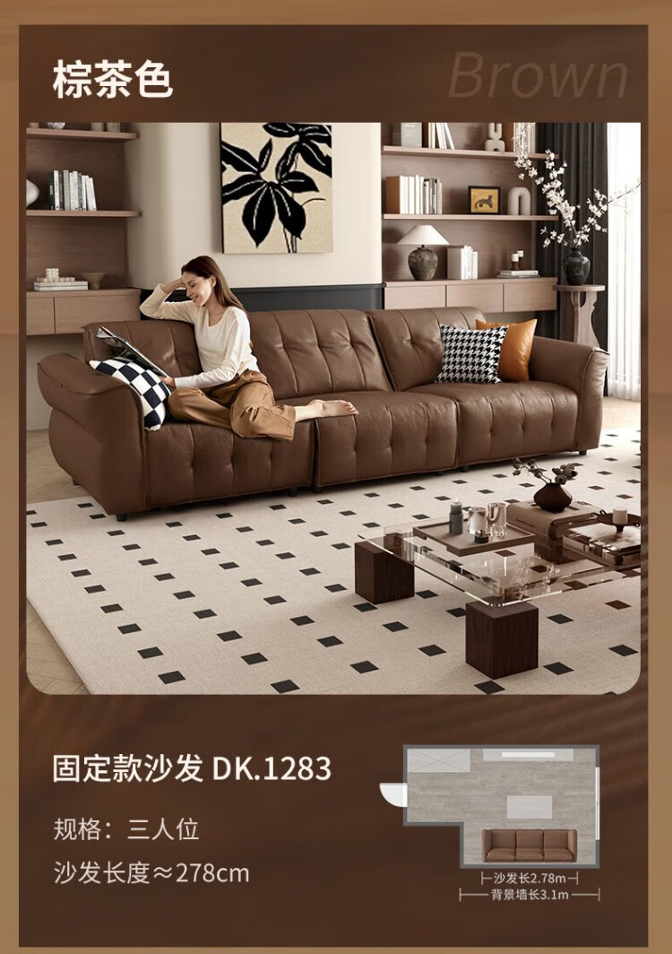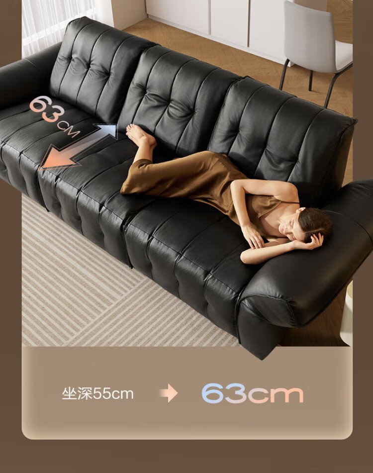 KUKA Large Black Cow Sofa Retro First-Layer Cowhide Sofa Living Room Large Seat Depth 1283 Brown Brown Stool