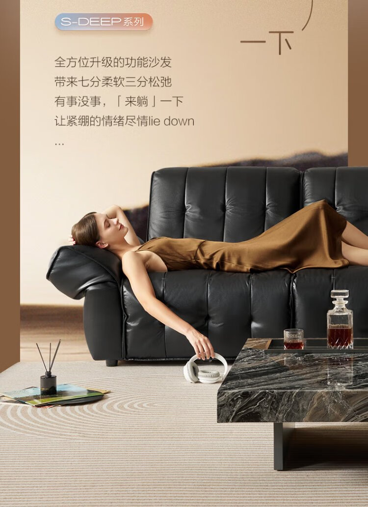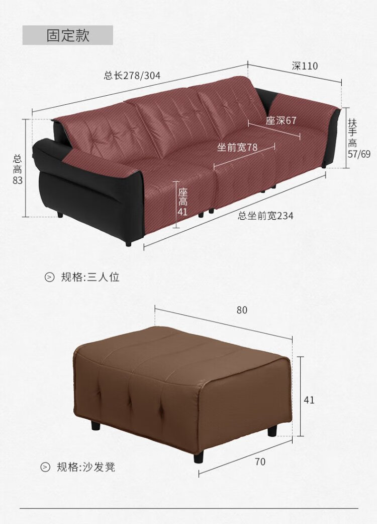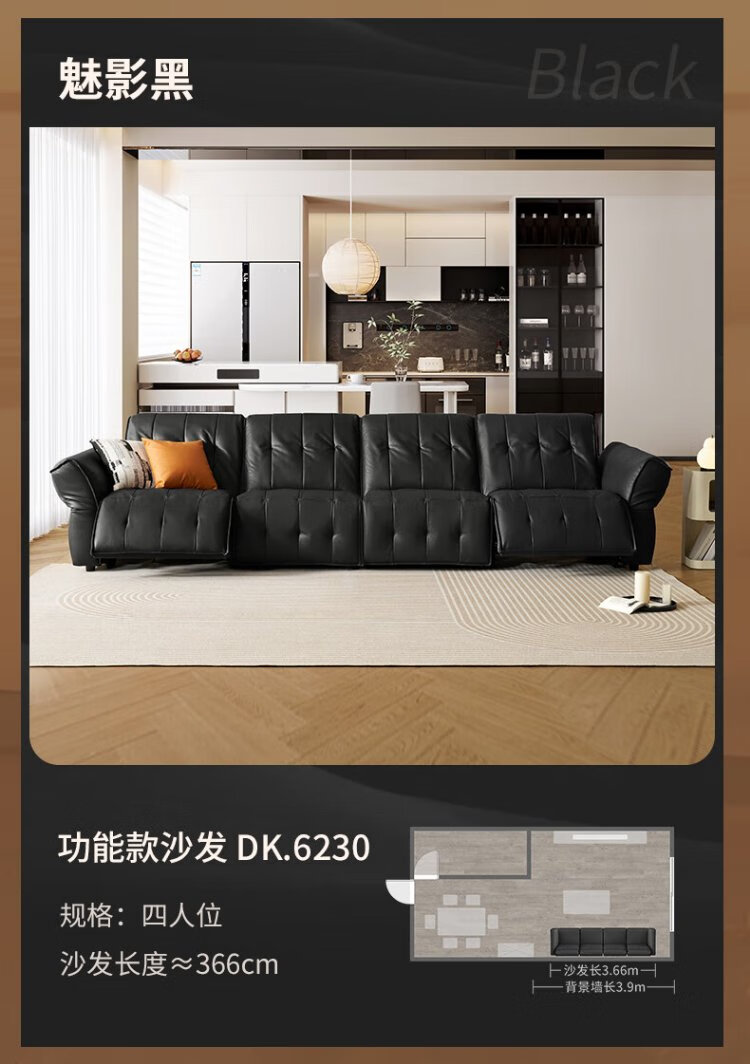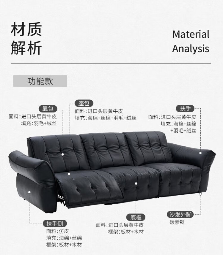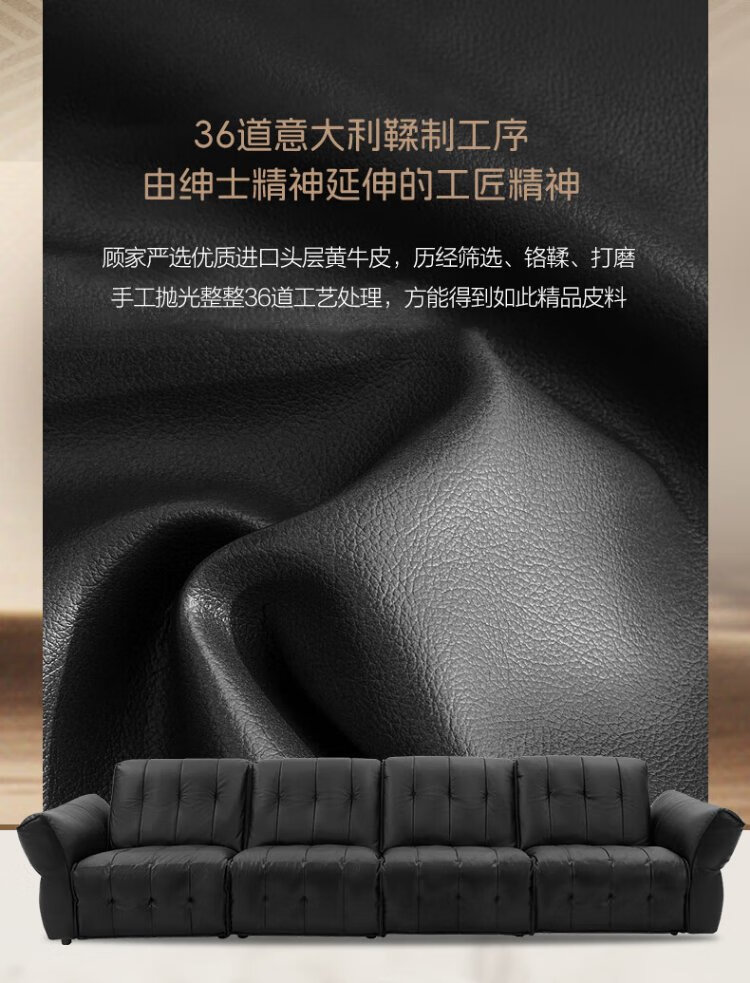 KUKA Large Black Cow Sofa Retro First-Layer Cowhide Sofa Living Room Large Seat Depth 1283 Brown Brown Stool