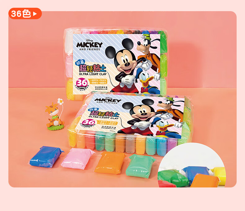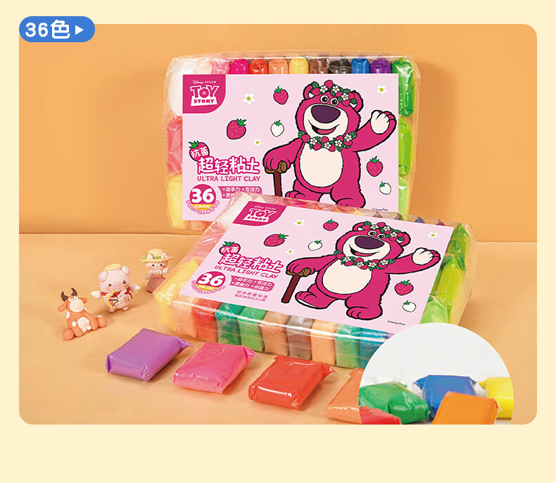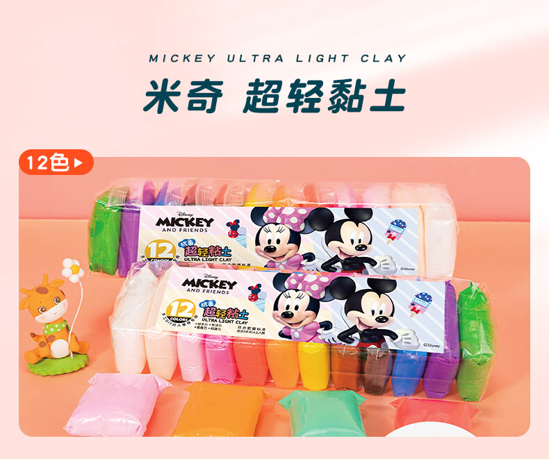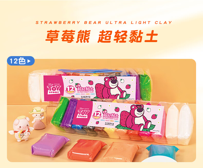递乐迪士尼正版12色儿童超轻粘土环保抗菌彩泥橡皮泥黏土diy手工制作模具装不粘手CMC1001草莓熊