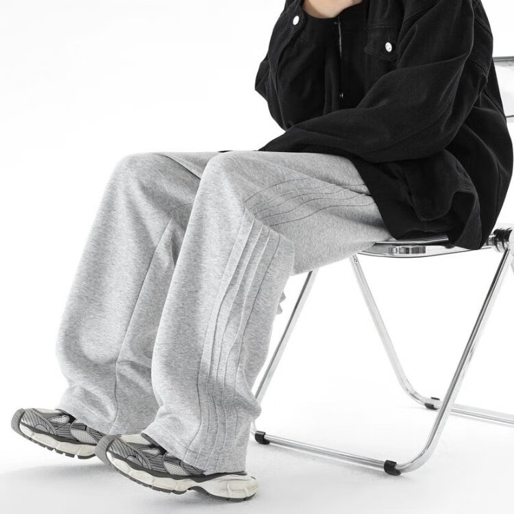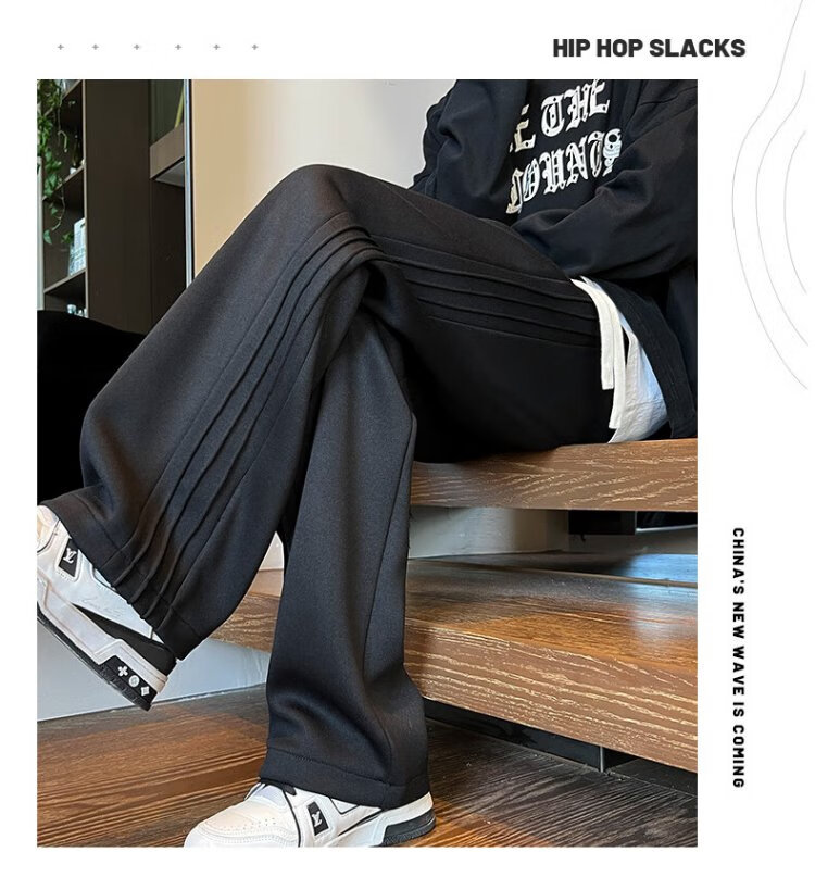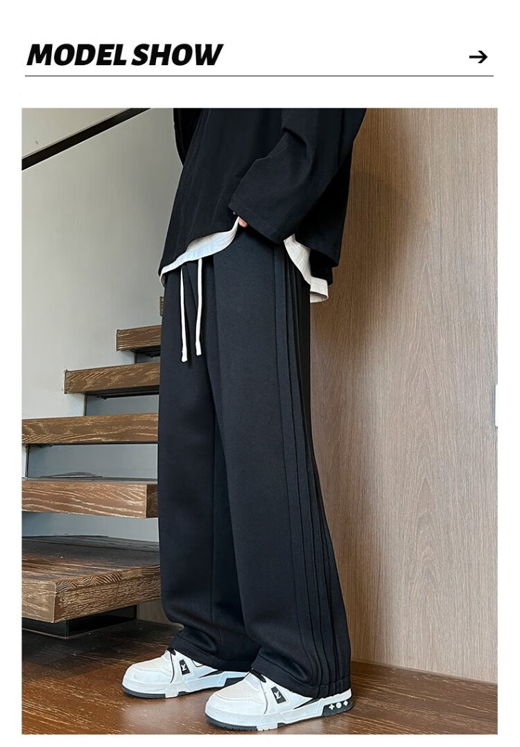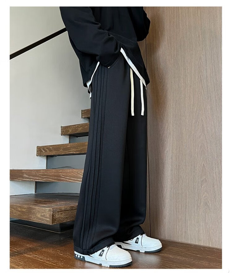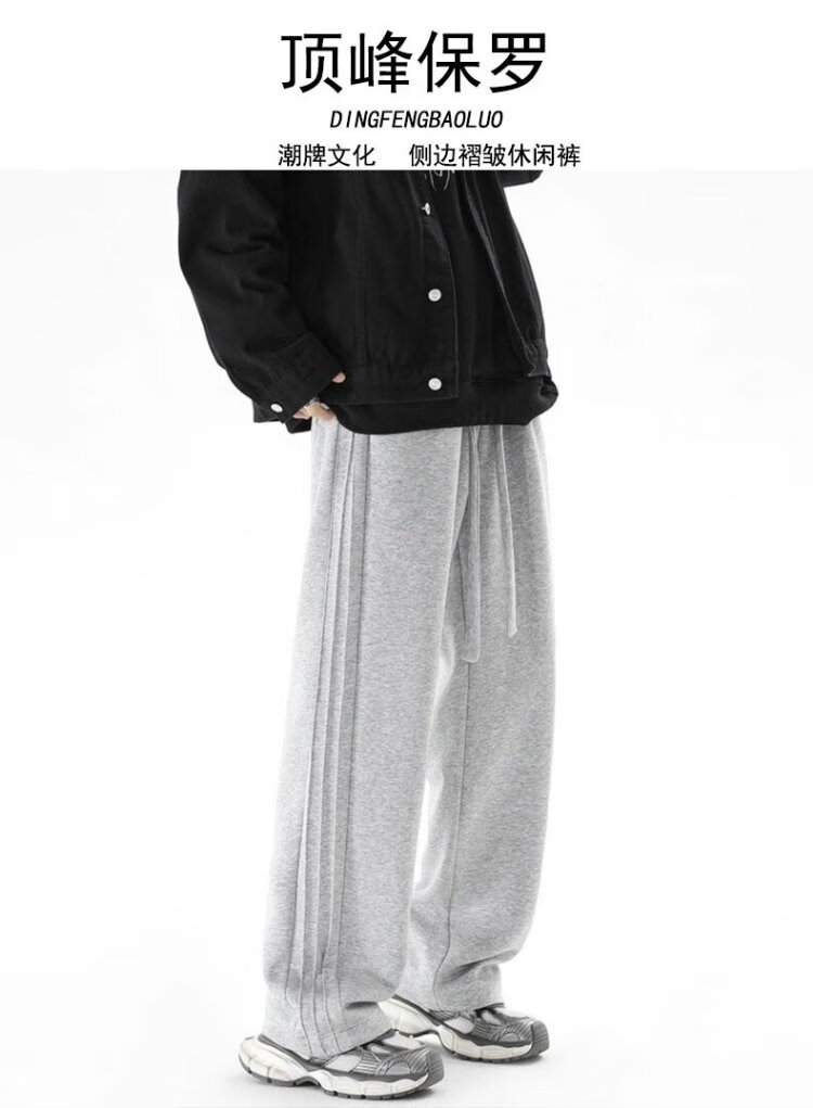 顶峰保罗(Dingfengbaoluo)休闲裤男秋季潮牌宽松直筒百搭透气运动阔腿长裤子9789黑色2XL