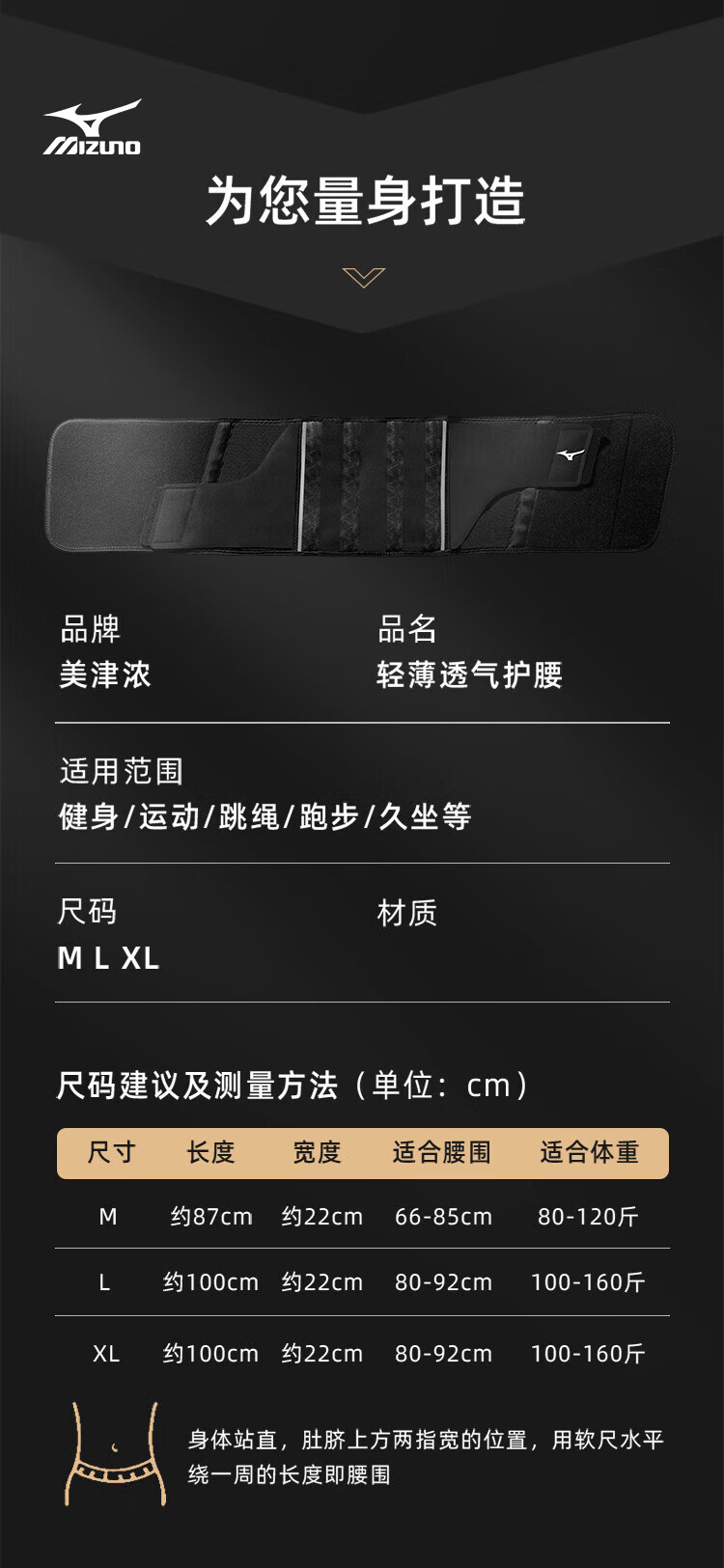 Mizuno (MIZUNO) belt support lumbar disc herniation lumbar muscle strain lumbar fixed disc support breathable belt for men and women