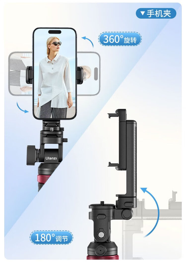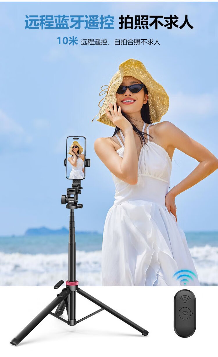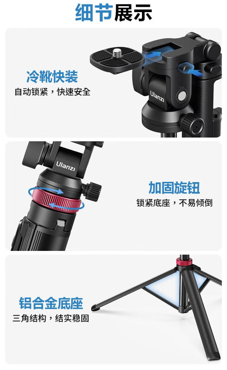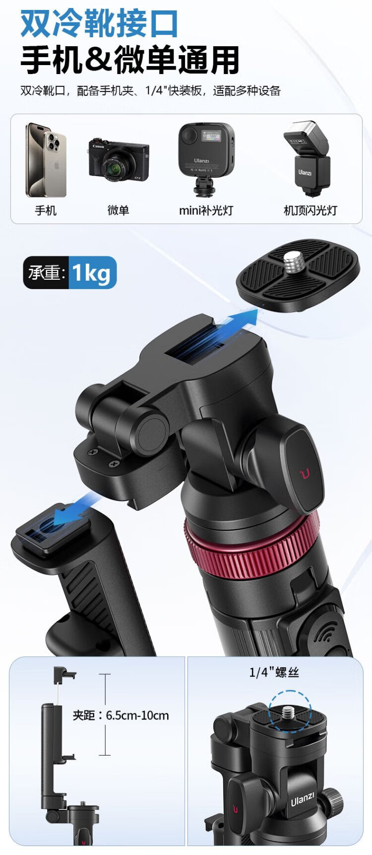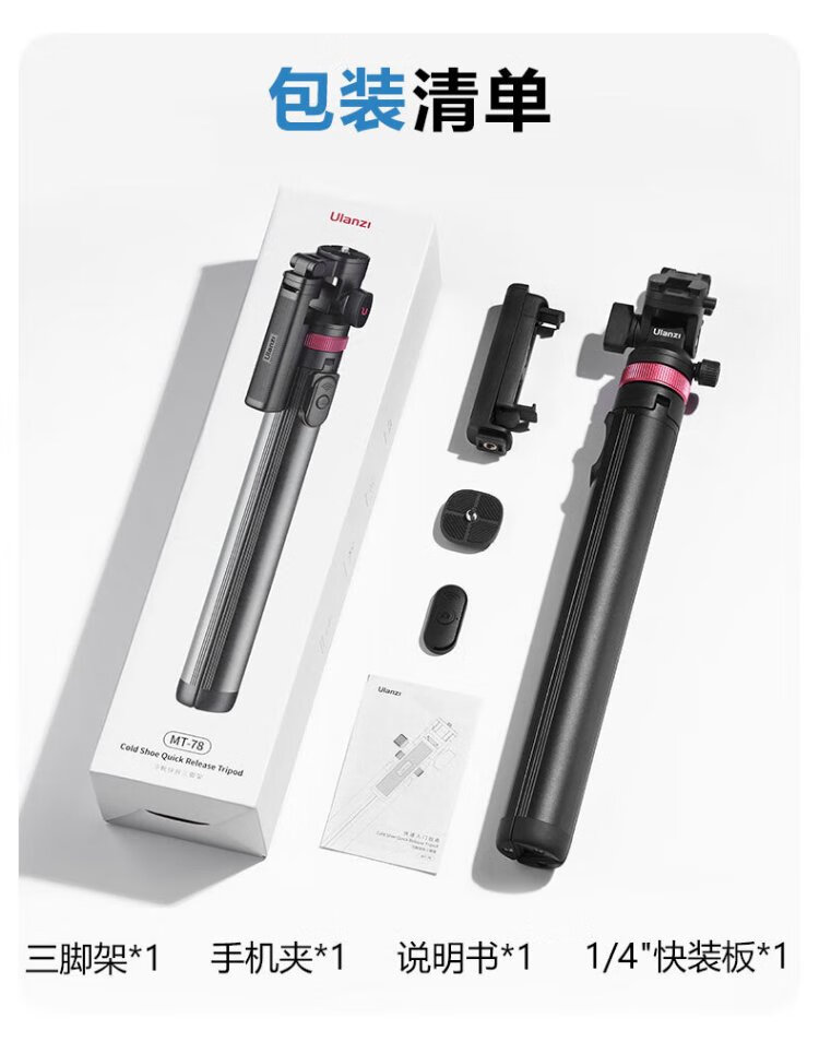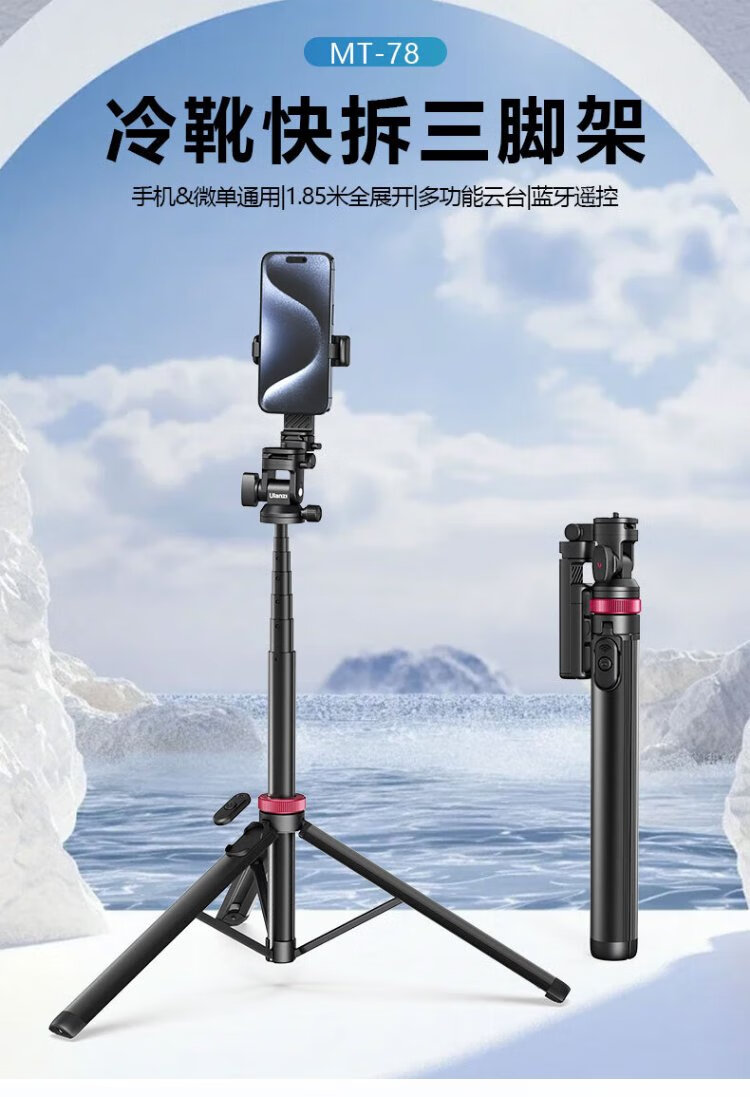 ulanzi优篮子 MT-78冷靴快拆三脚架(黑色)蓝牙拍照手柄遥控自拍杆旅行户外直播摄影拍照手机夹相机支架