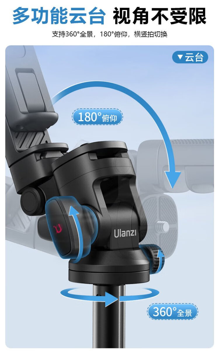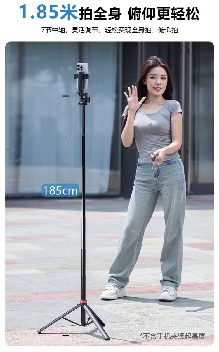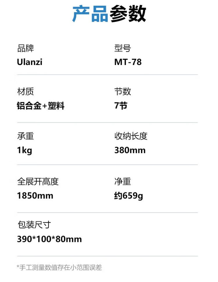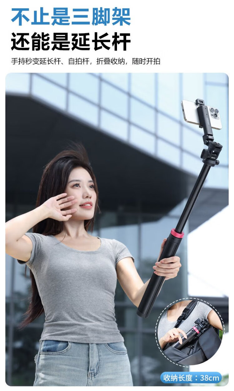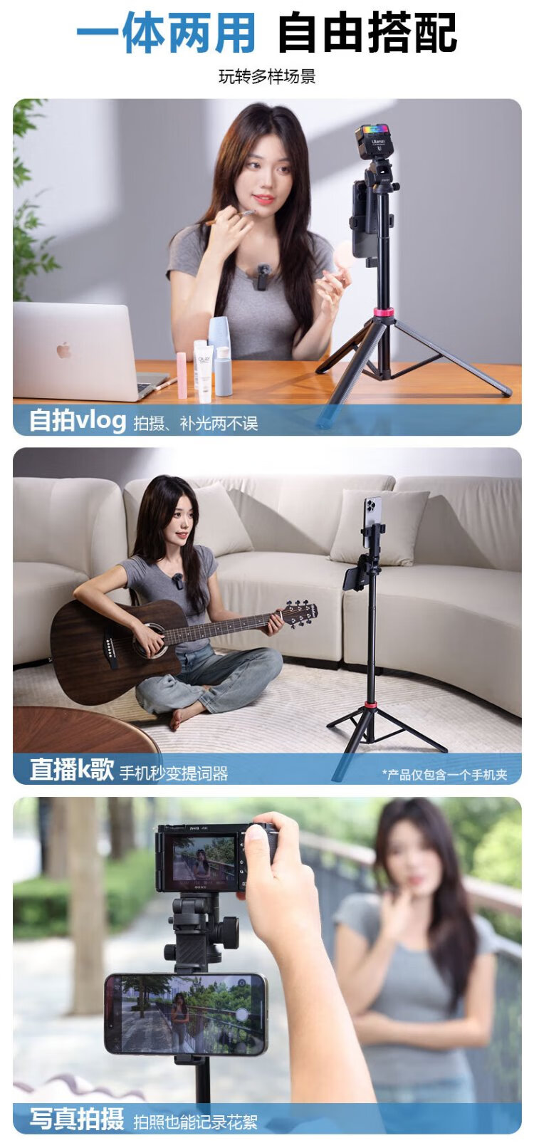 ulanzi优篮子 MT-78冷靴快拆三脚架(黑色)蓝牙拍照手柄遥控自拍杆旅行户外直播摄影拍照手机夹相机支架
