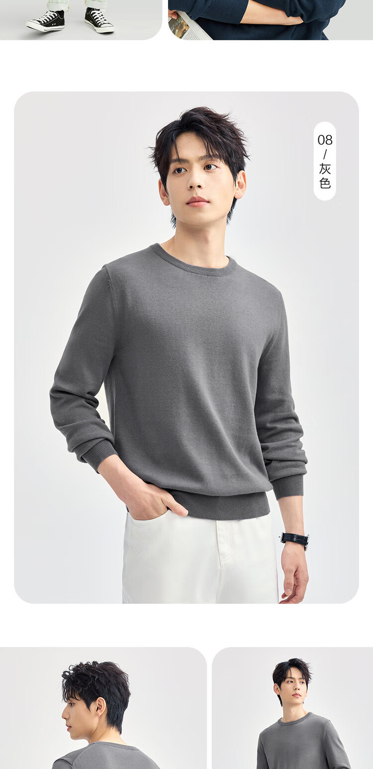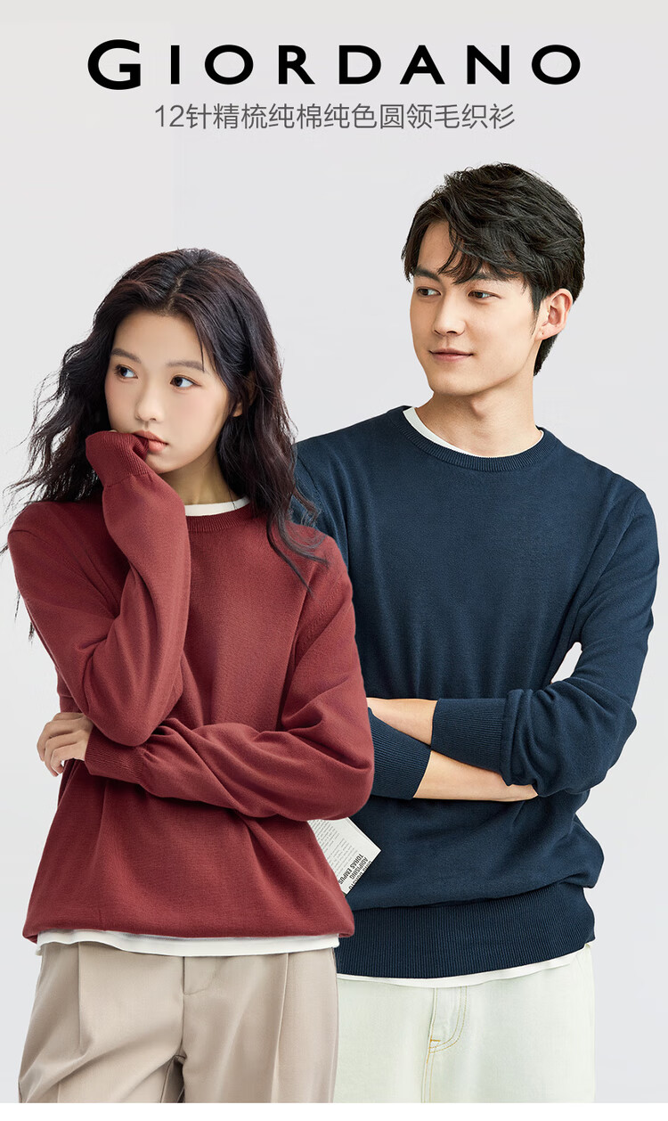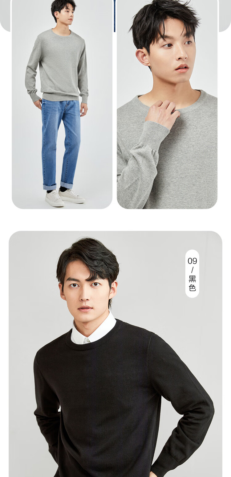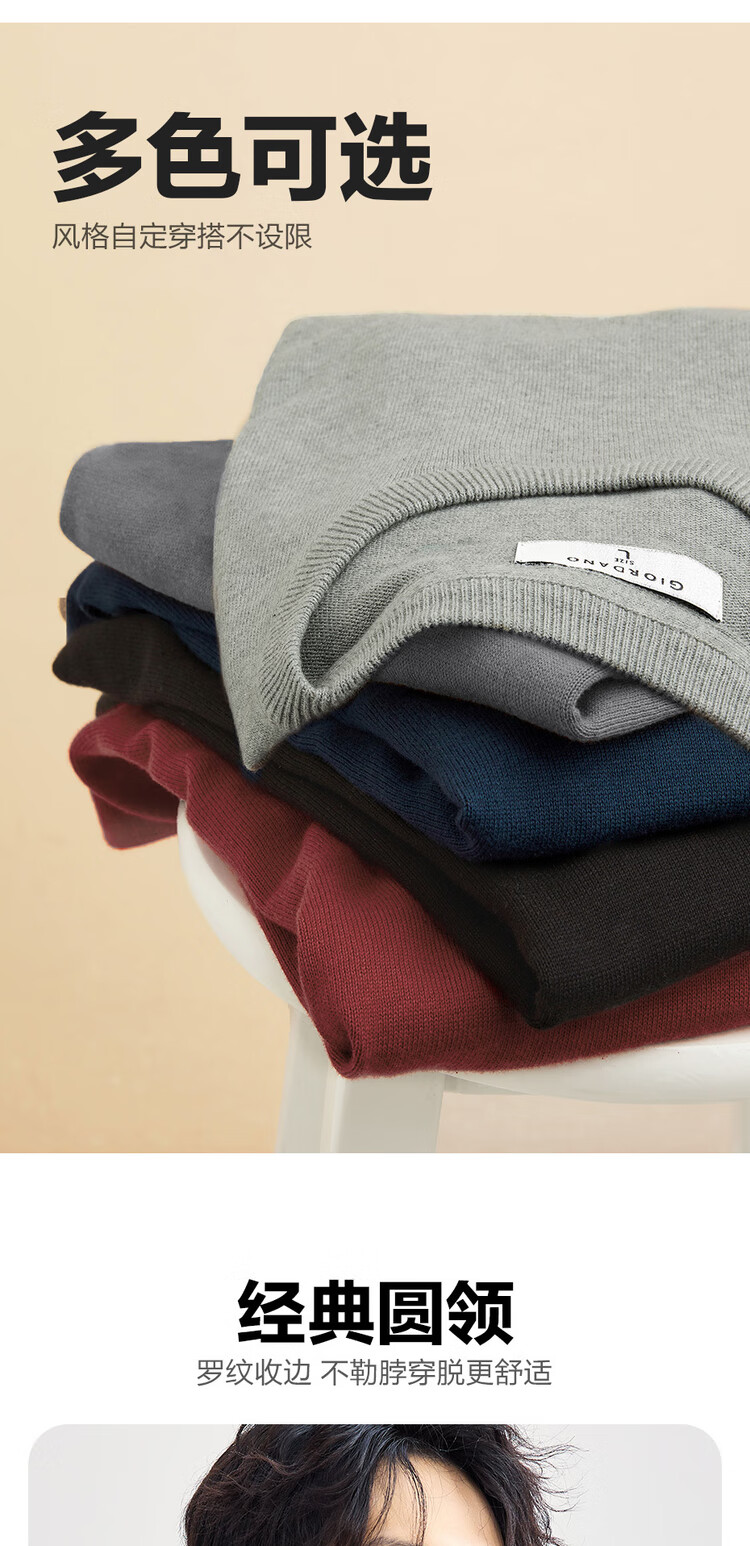 佐丹奴可机洗针织衫男精梳纯棉纯色简约圆领套头针织毛衣18054610