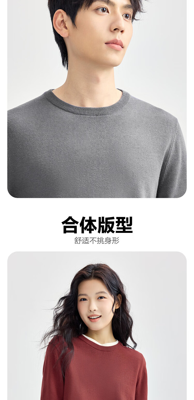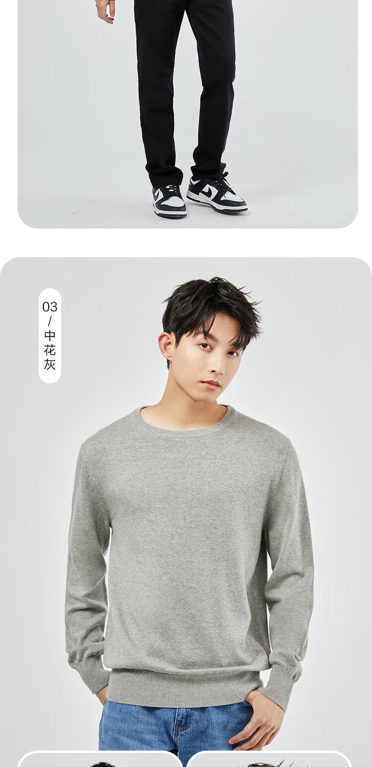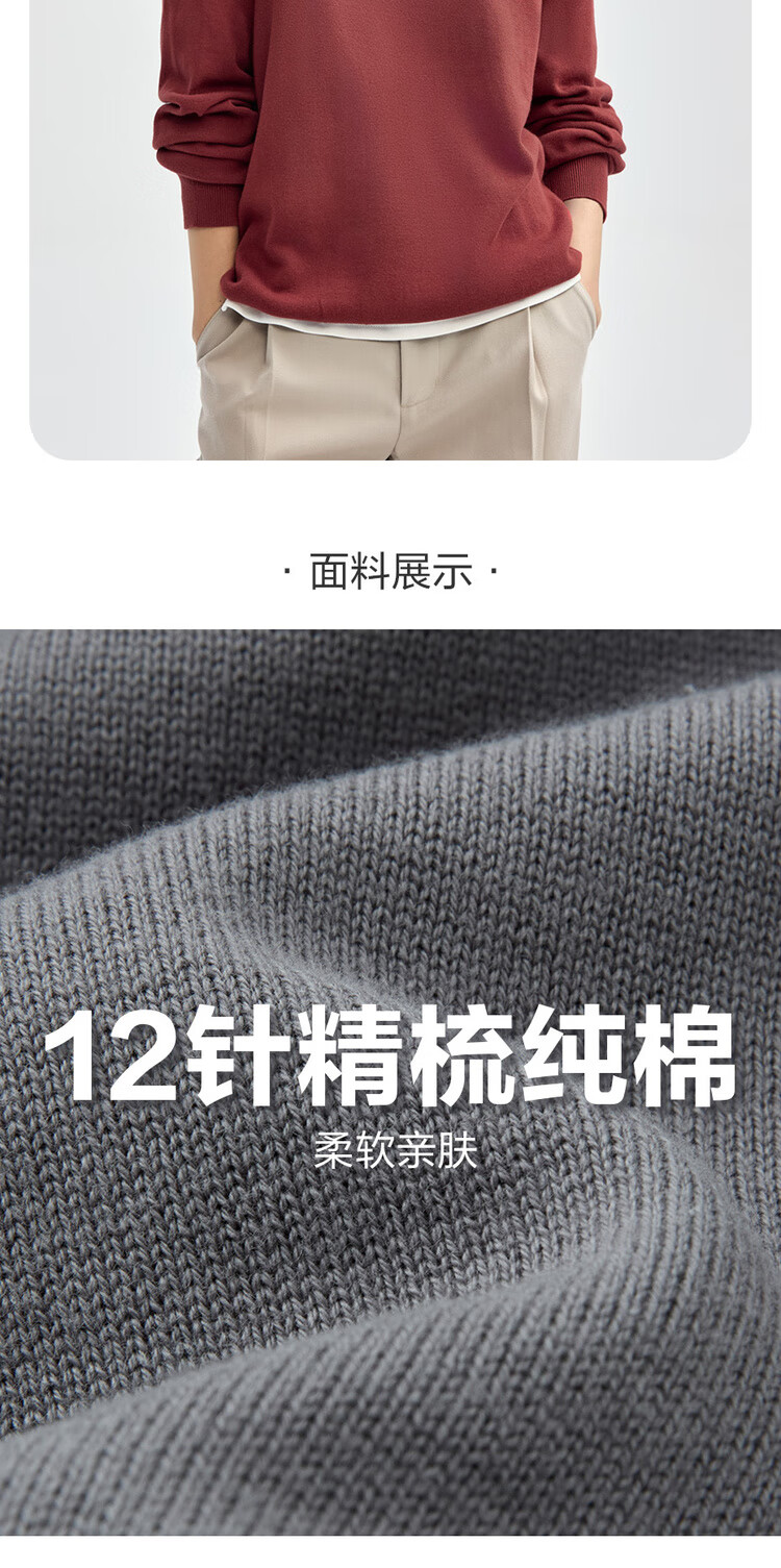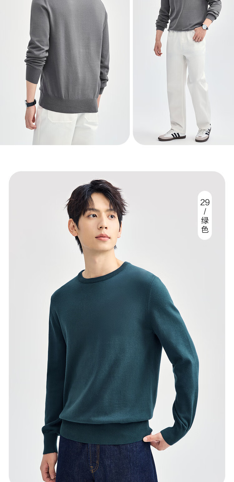 佐丹奴可机洗针织衫男精梳纯棉纯色简约圆领套头针织毛衣18054610