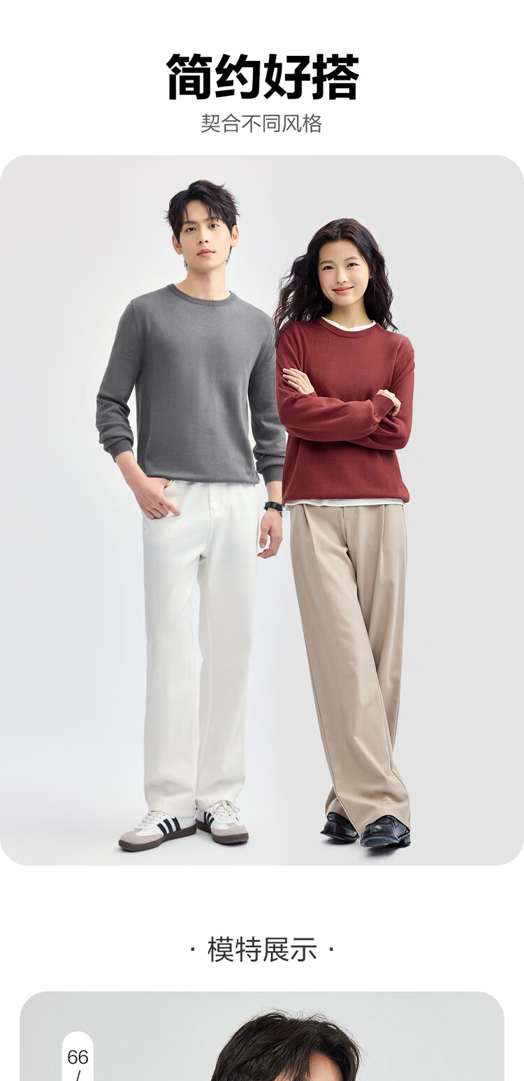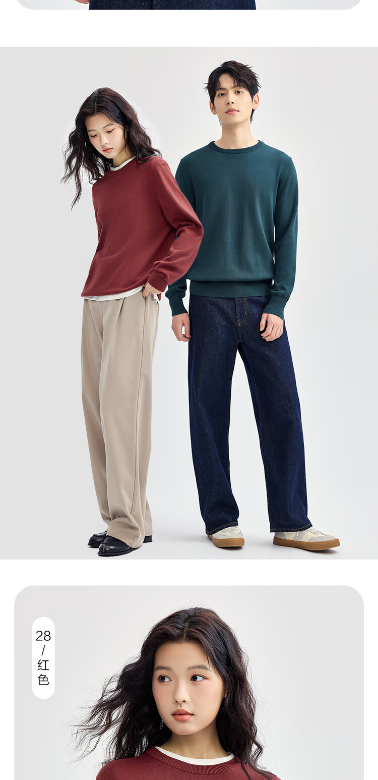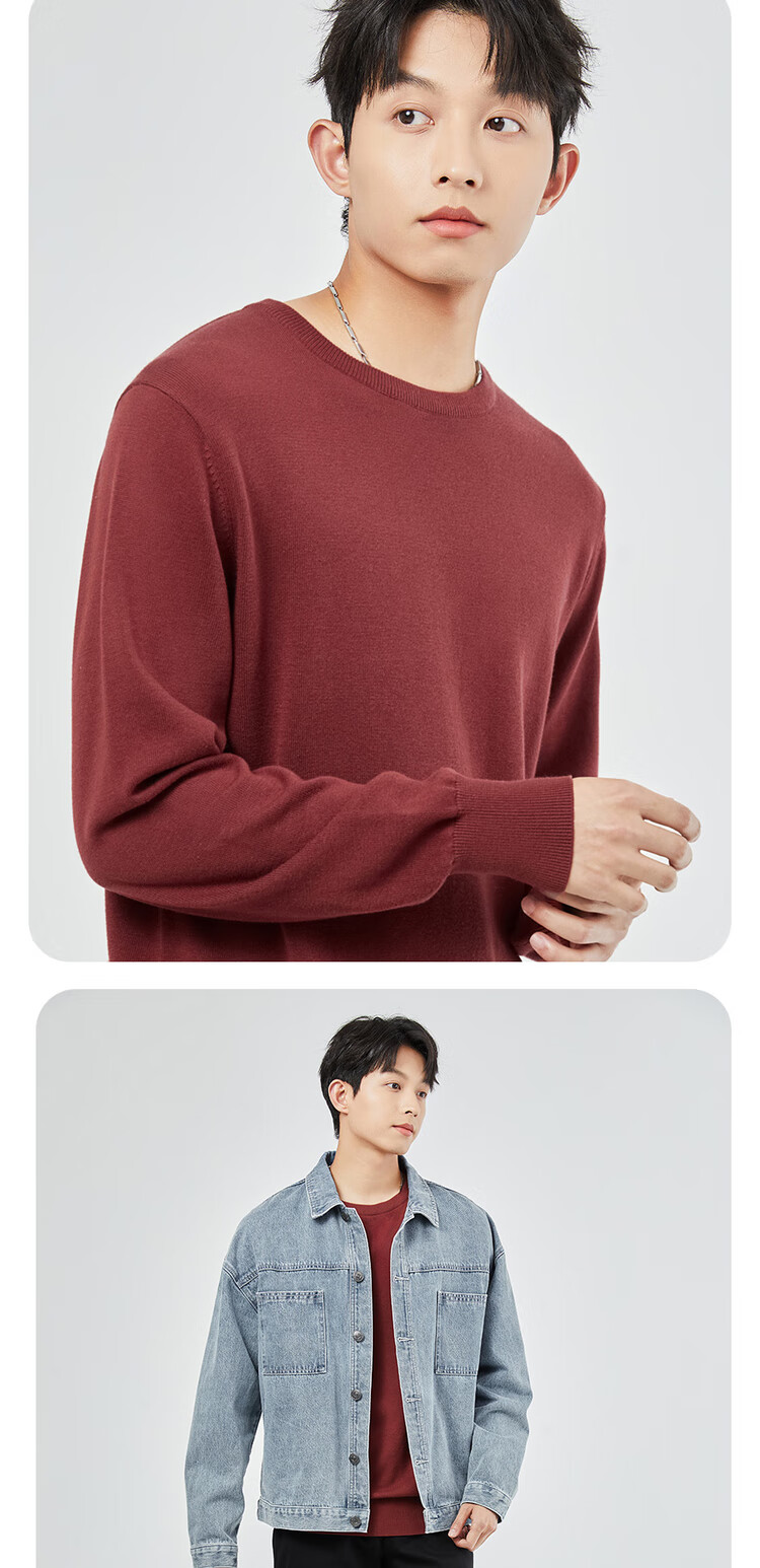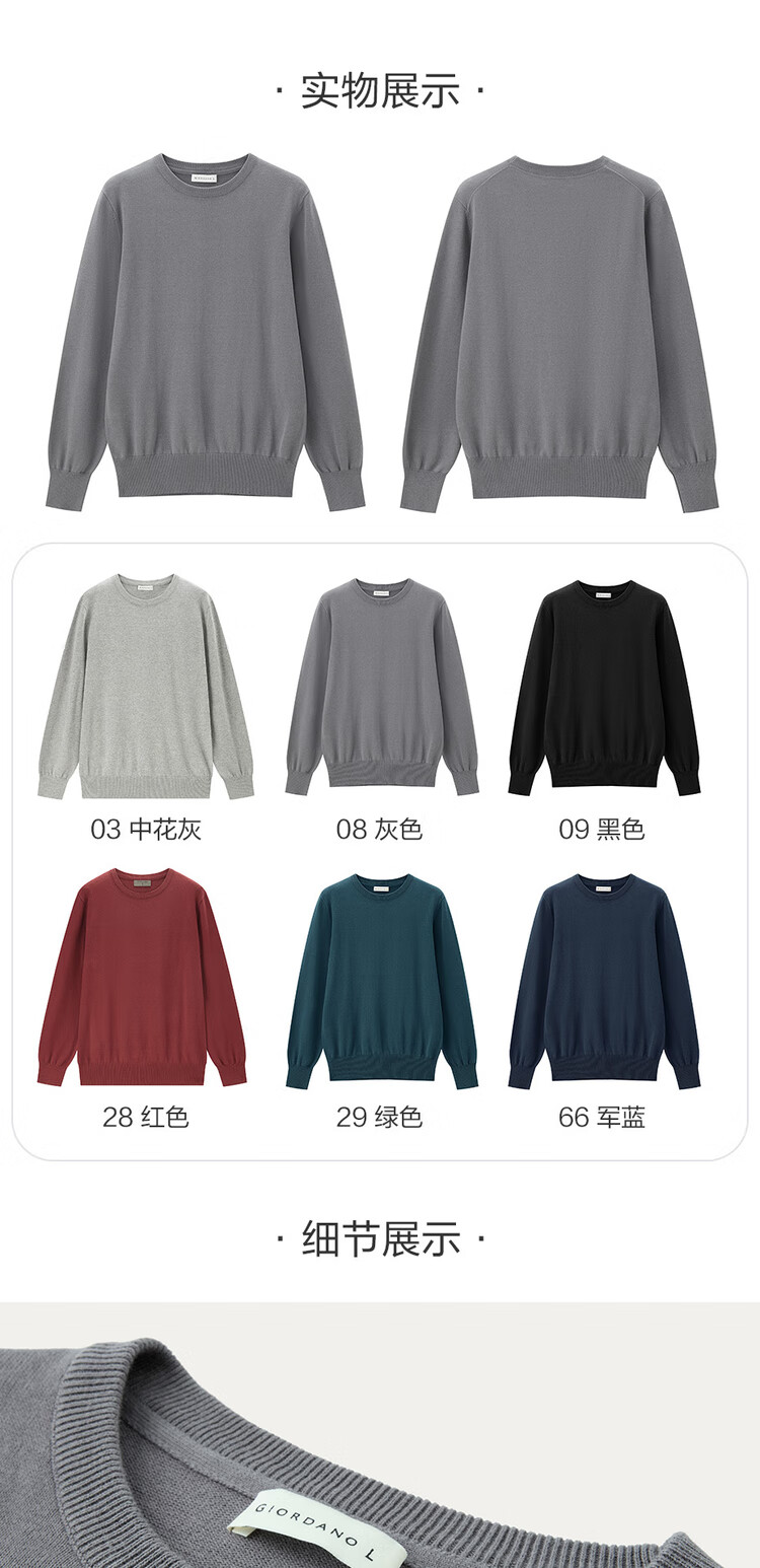 佐丹奴可机洗针织衫男精梳纯棉纯色简约圆领套头针织毛衣18054610