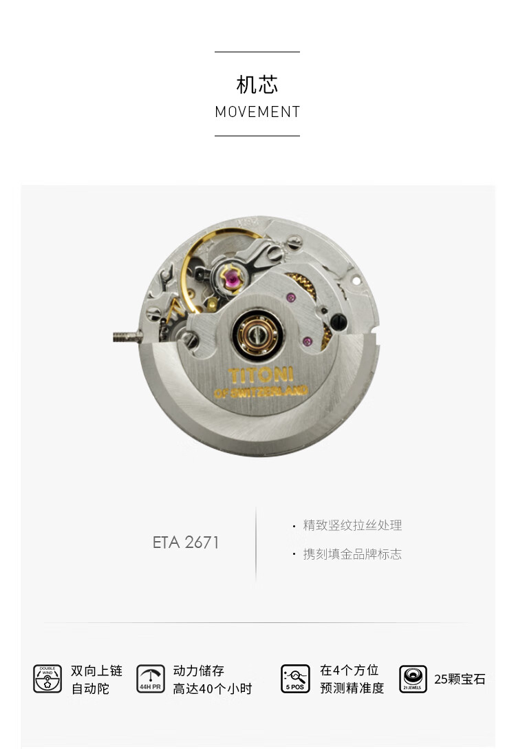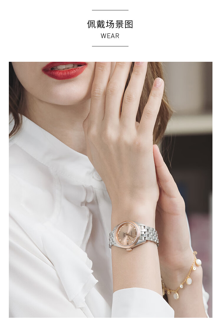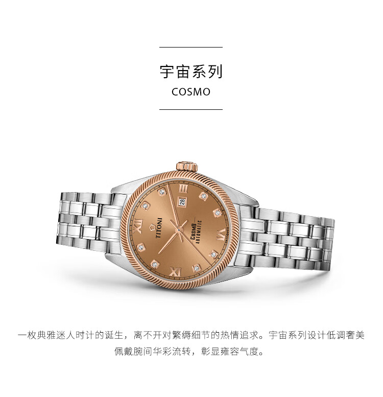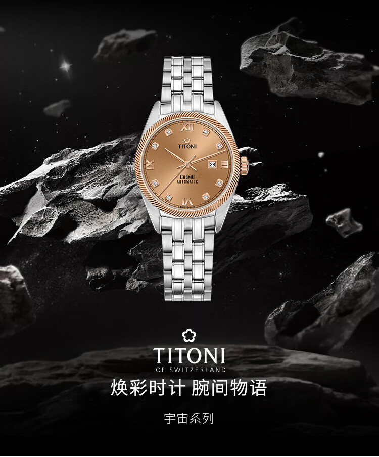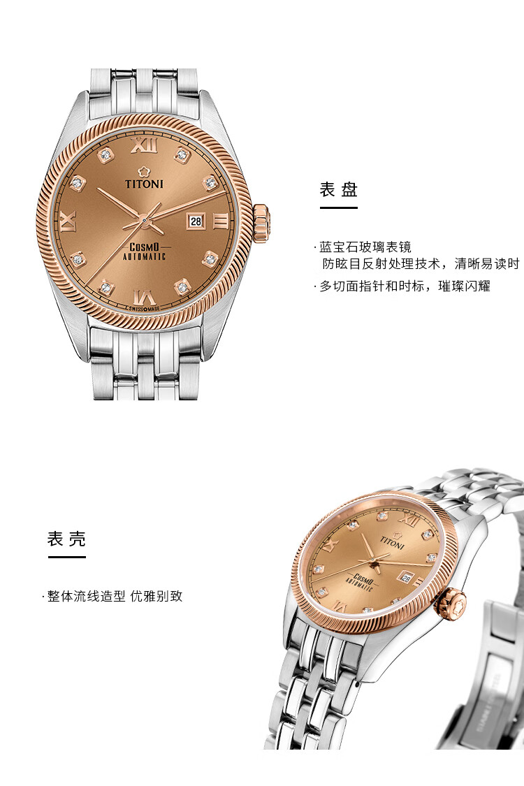 梅花(Titoni)宇宙系列 机械钢带女士腕表全自动机芯 818-SRG-653 送女友礼物