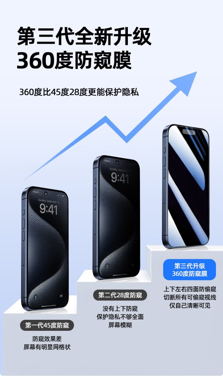 Smorss【360°防窥】适用苹果15Plus钢化膜iPhone15plus手机膜 360°全屏防偷看偷窥防摔抗指纹送神器