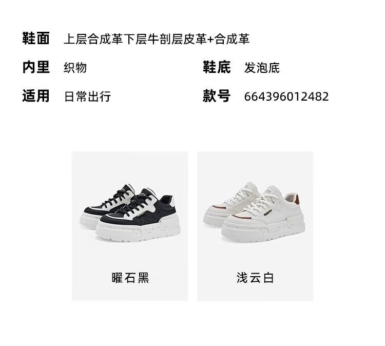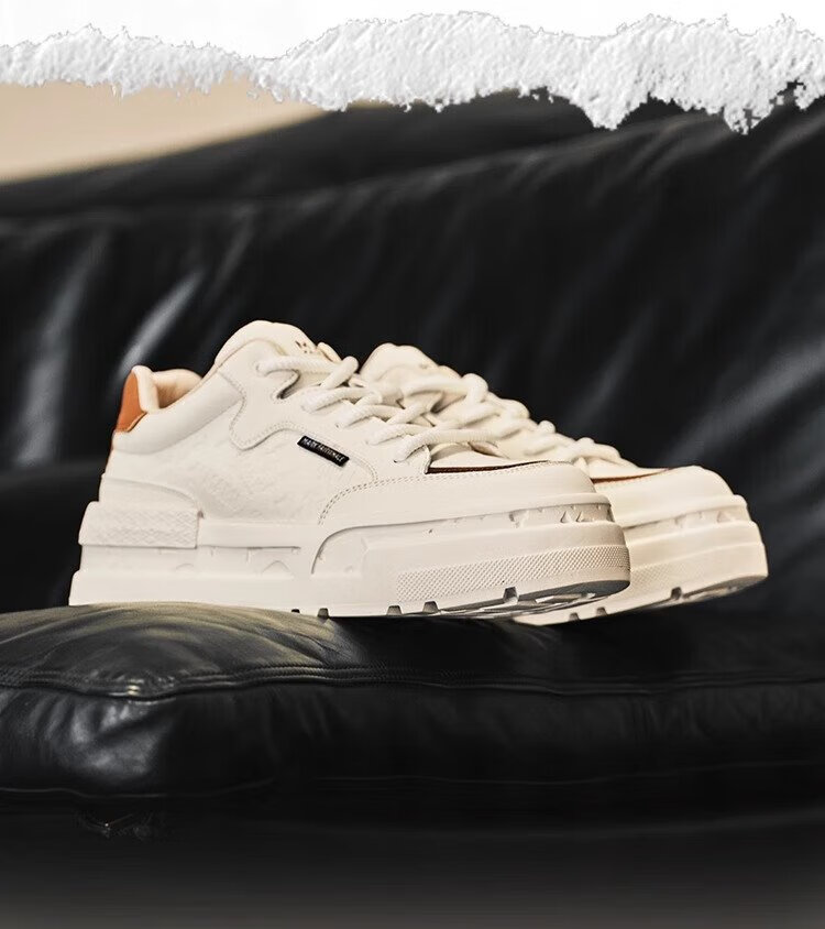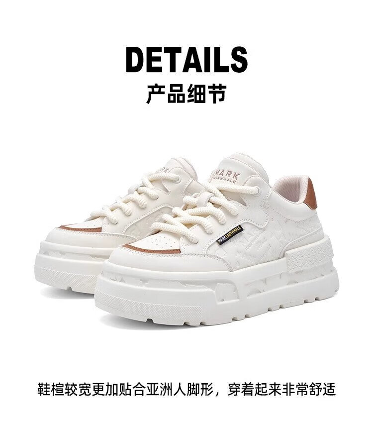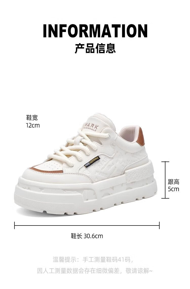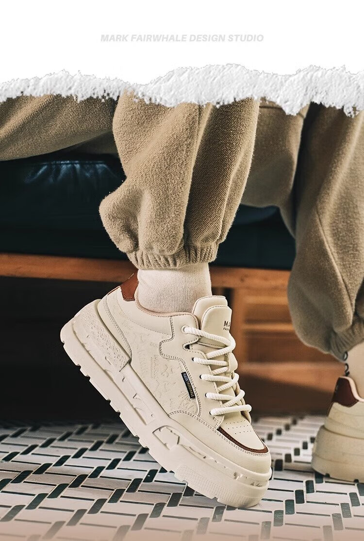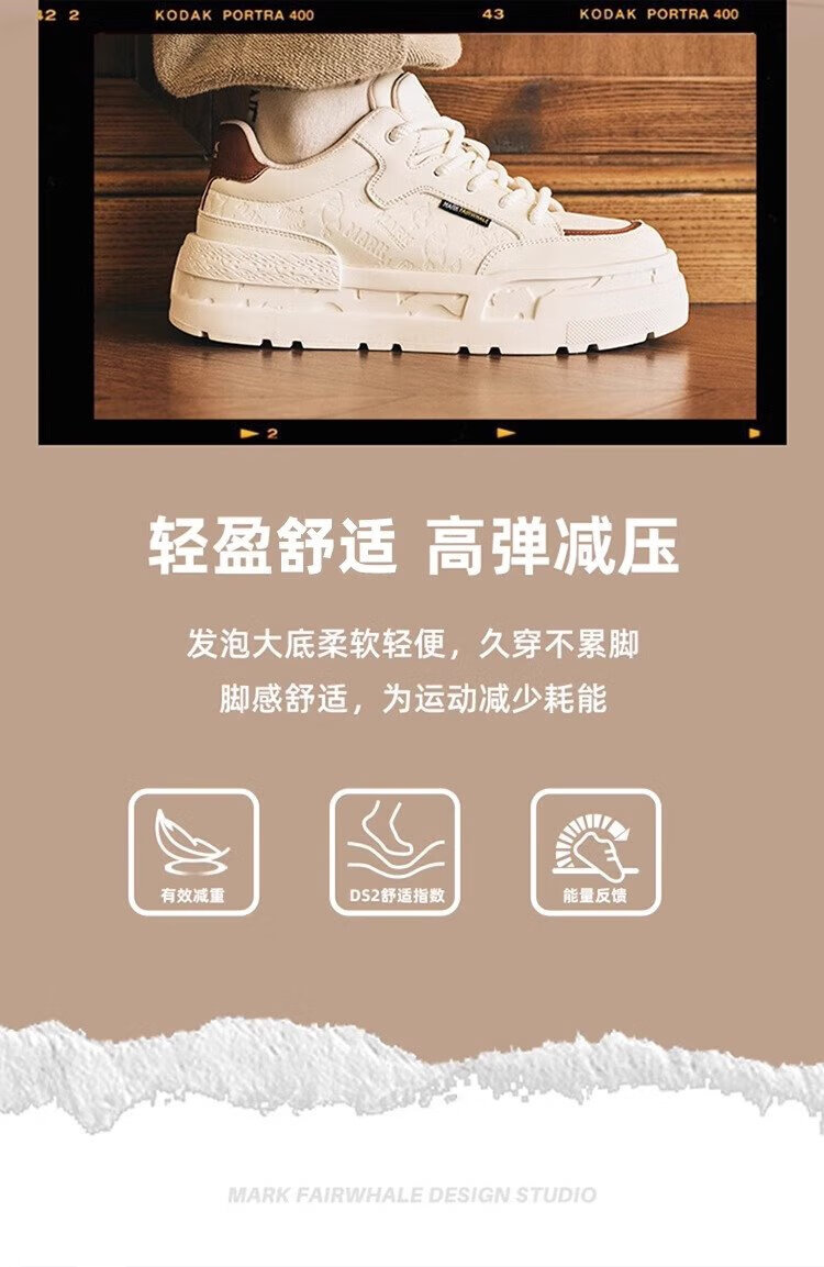 马克华菲男鞋2025鞋子男款男士厚底增高小白鞋休闲鞋板鞋 浅云白 42