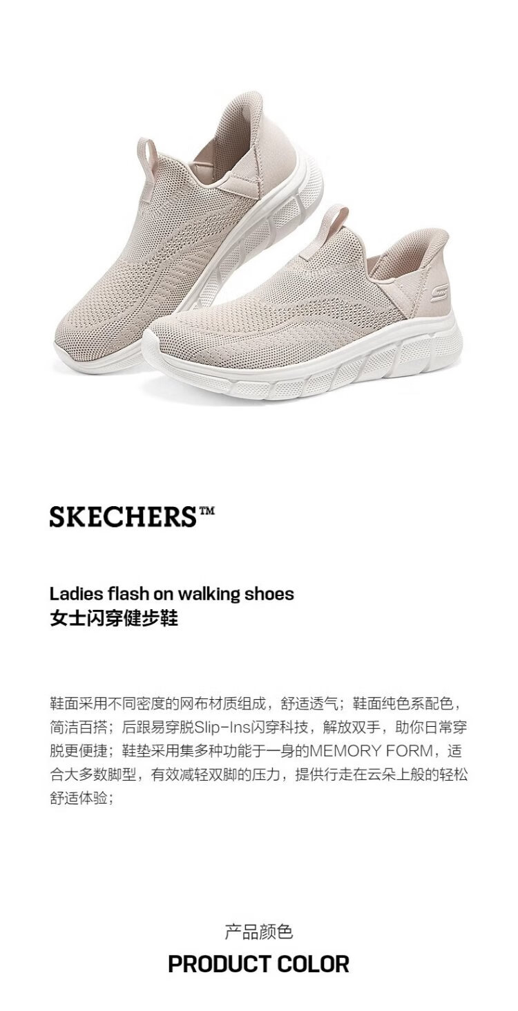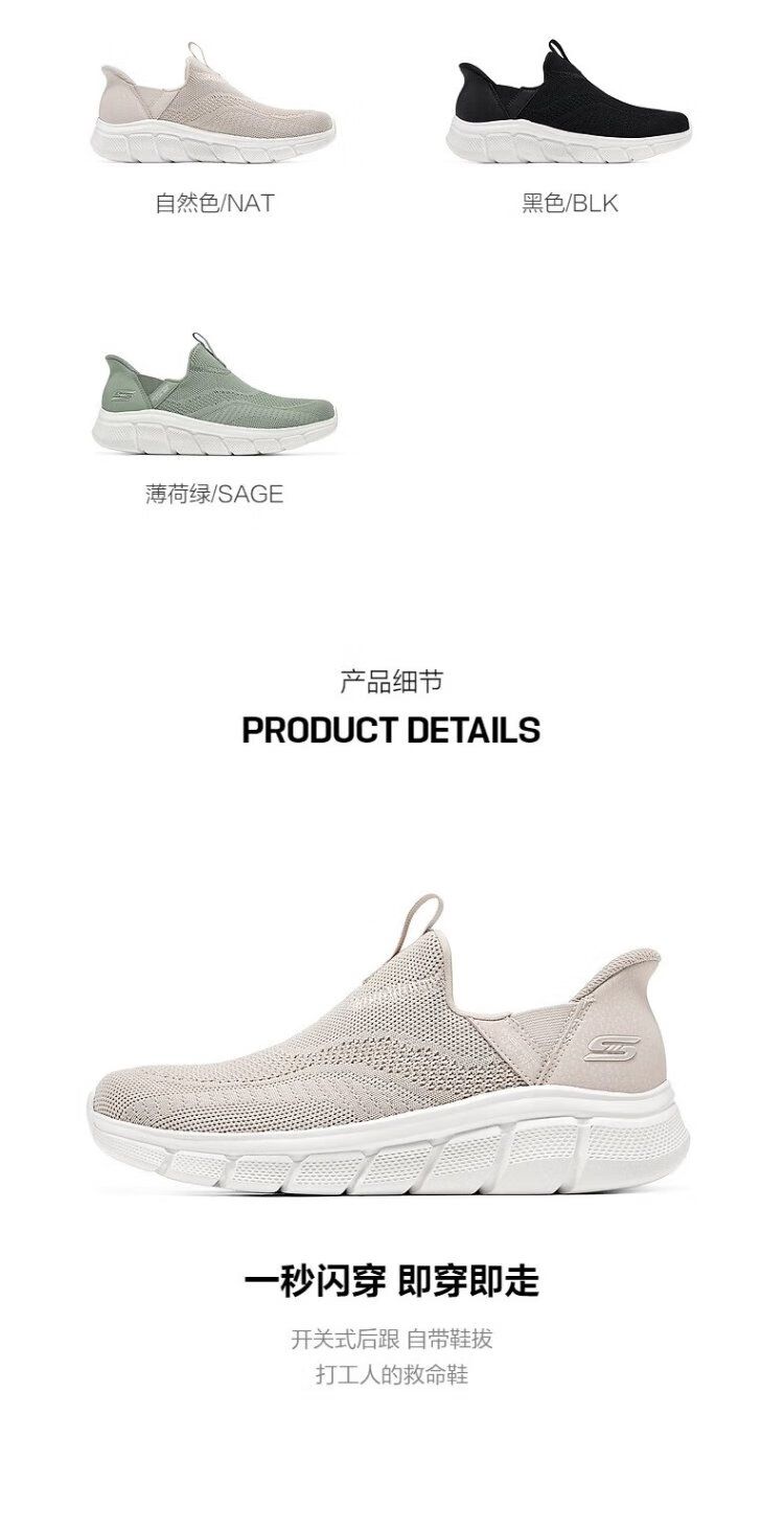 斯凯奇(Skechers)闪穿鞋女鞋秋季舒适一脚蹬健步鞋外穿户外休闲运动鞋117634