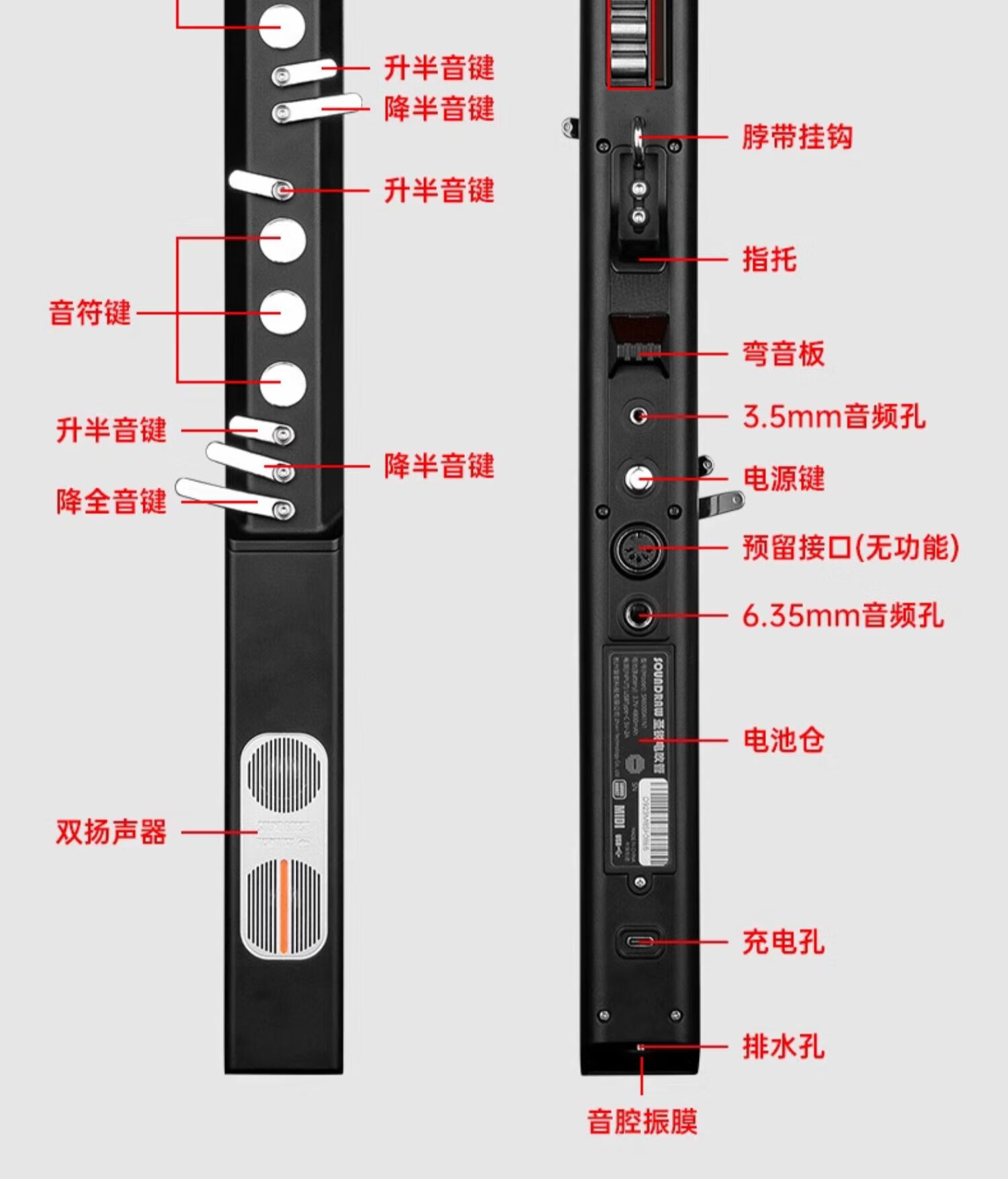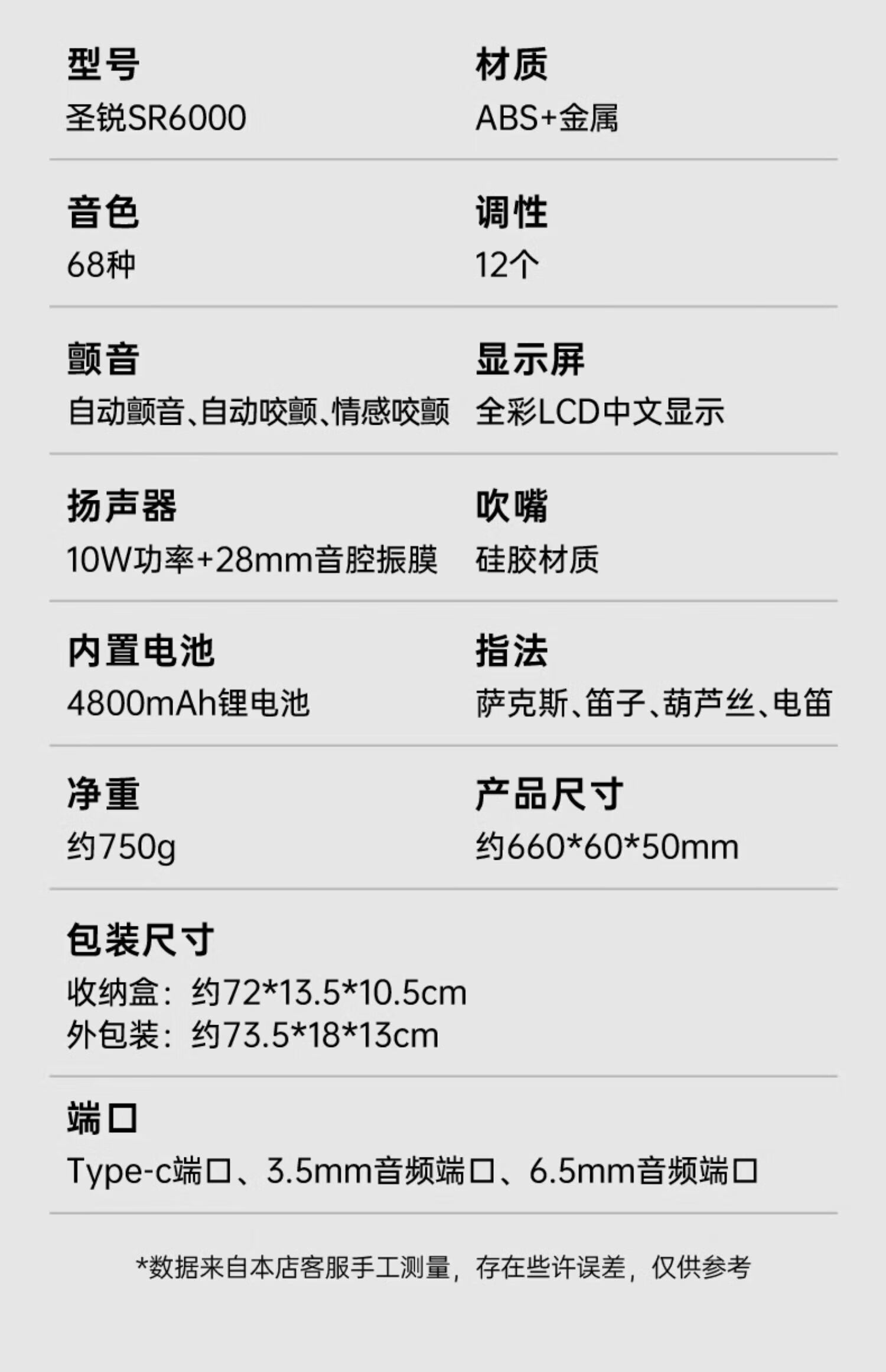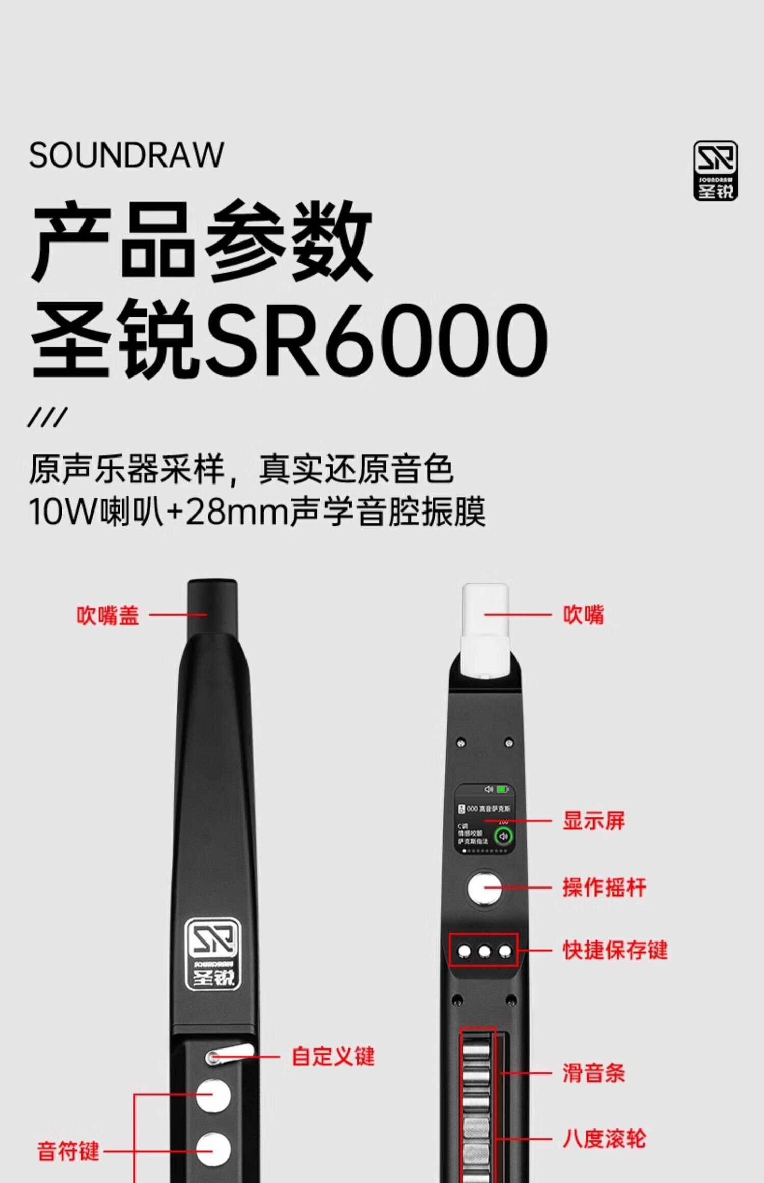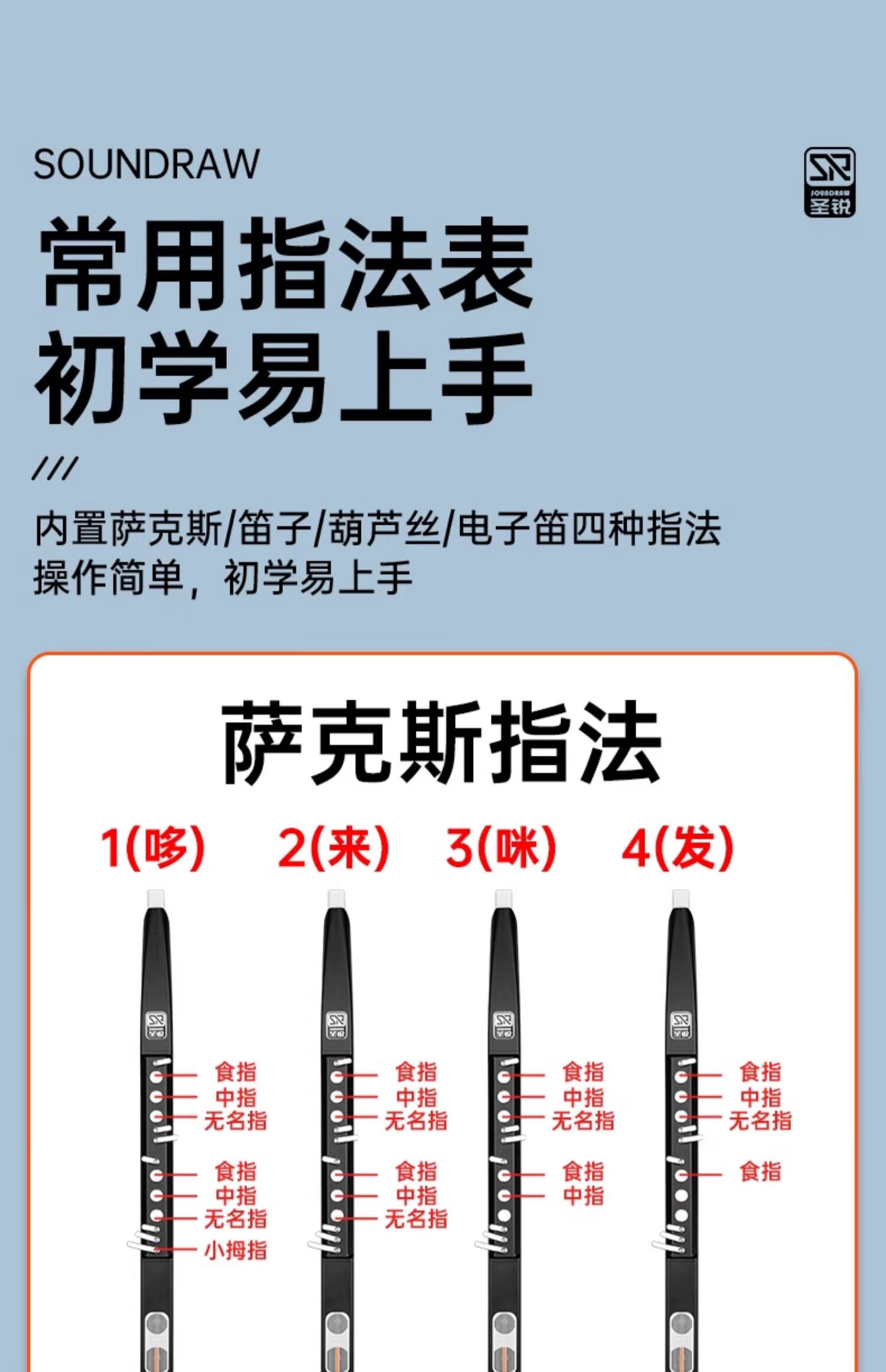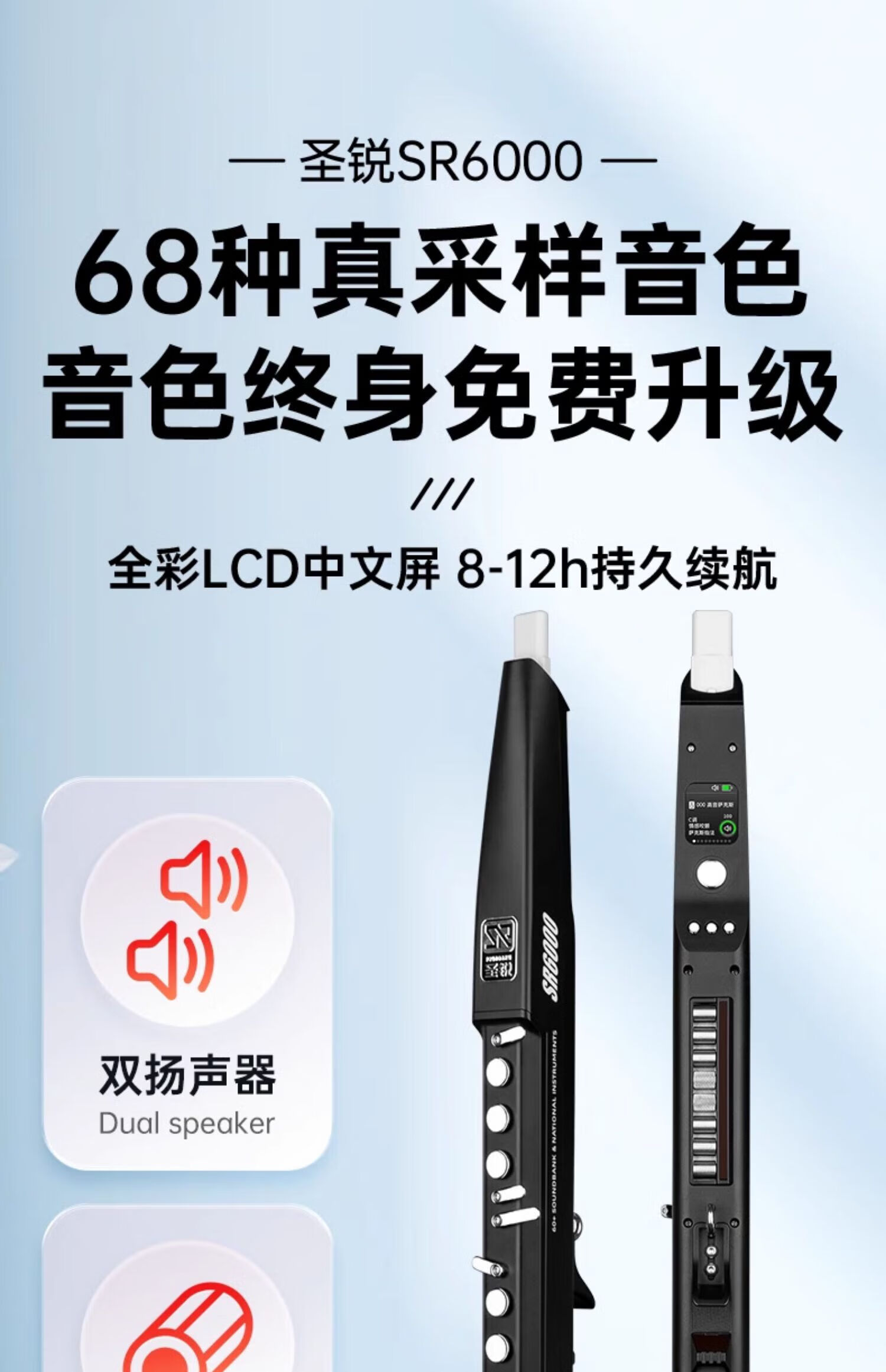 圣锐SR6000电吹管新款中老年人初学乐器电萨克斯葫芦丝吹管 黑色 标配