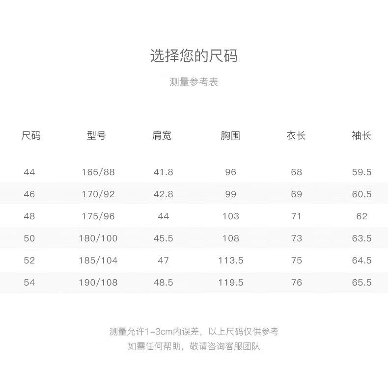 China (cm) 165 / 88-90 170 / 96-98 175 / 108-110 180 / 118-122 185 / 126-130