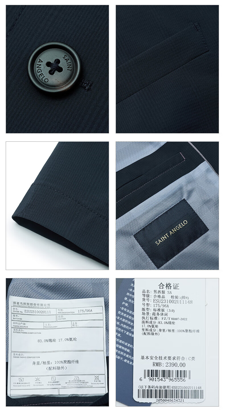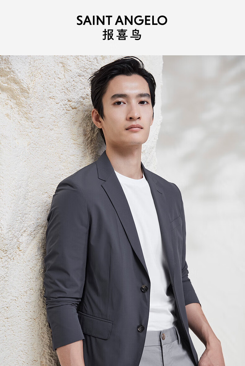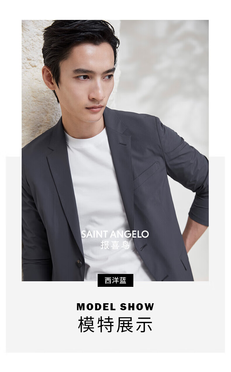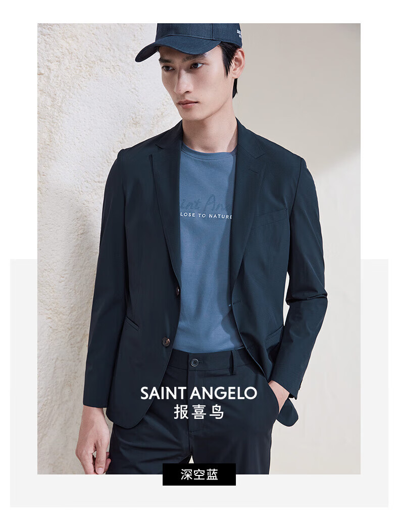 Angel Bird Vier-Wege-elastischer dünner Anzug für Herren, lässige leichte formelle Jacke, Freizeitanzug, Westernblau, 52 (185/104)