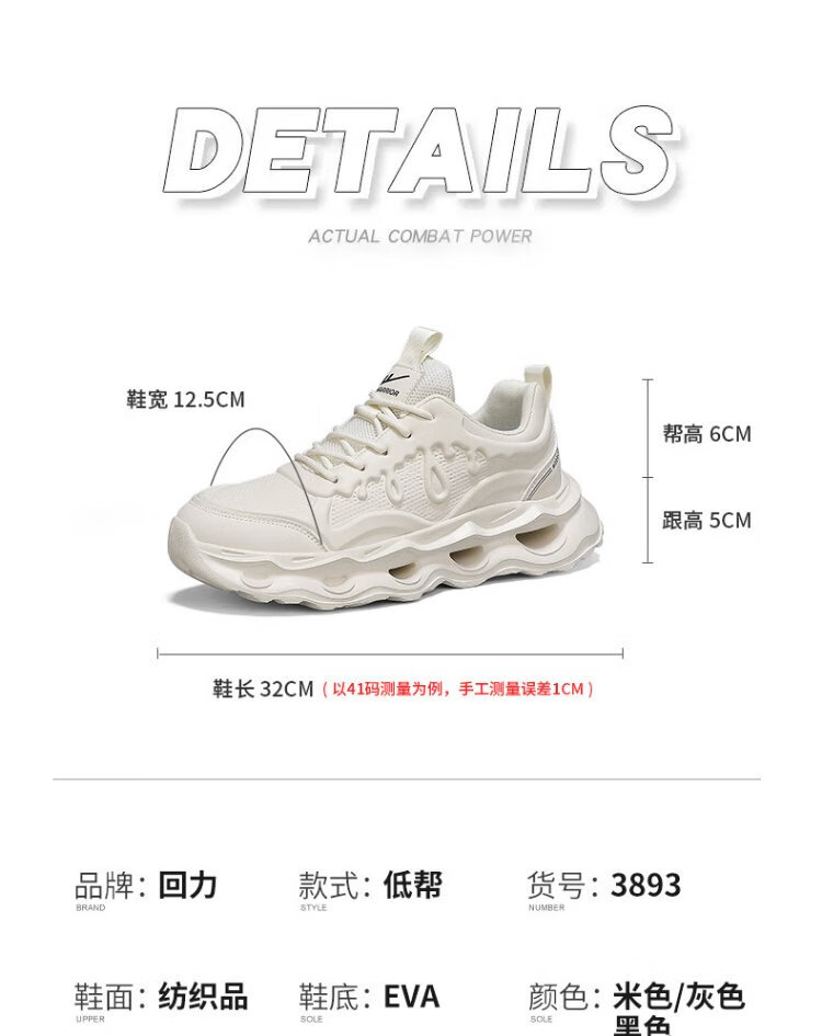 回力(Warrior)休闲男鞋网面老爹鞋男增高百搭运动鞋男 3893深灰色40