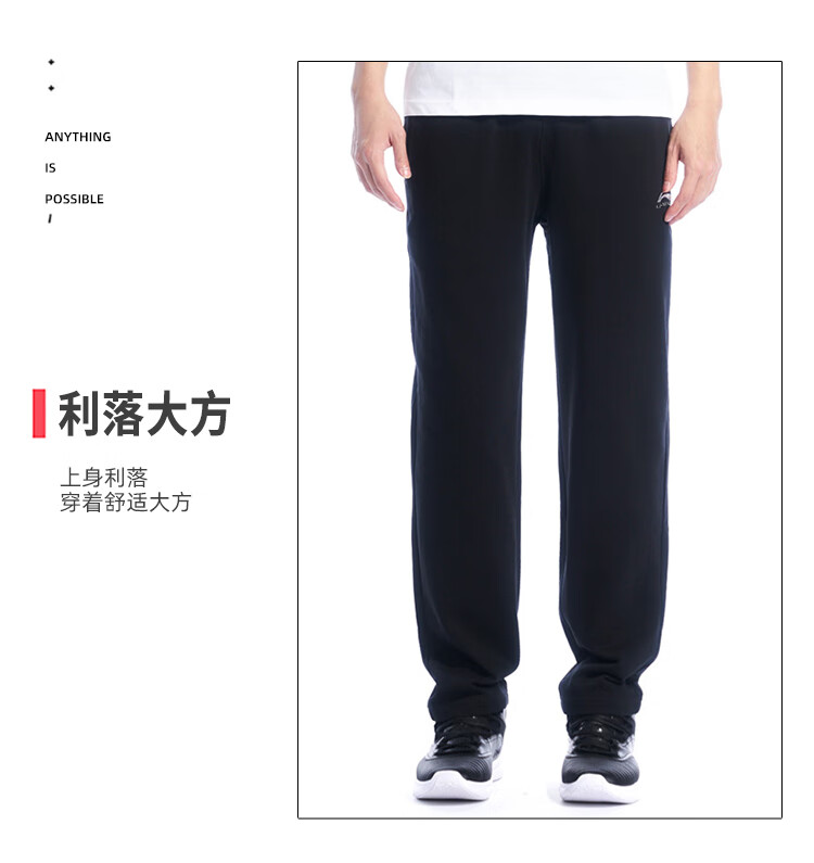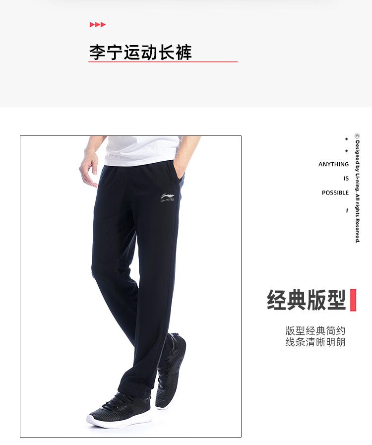 李宁(LI-NING)运动裤男秋款宽松舒适透气长裤棉质跑步直筒运动训练休闲卫裤