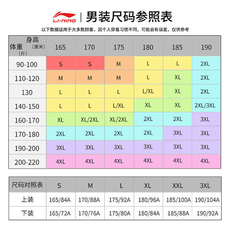 China (cm) 160-165/84-86 165-170 / 88-90 167-172 / 92-96 168-173 / 98-102 170-176 / 106-110