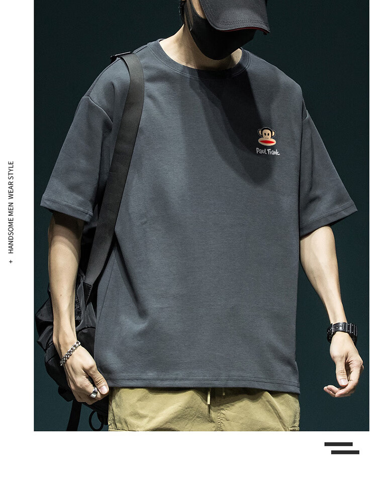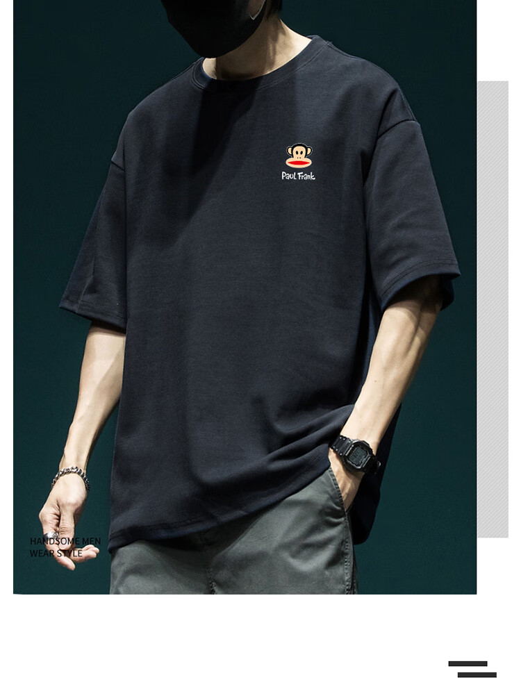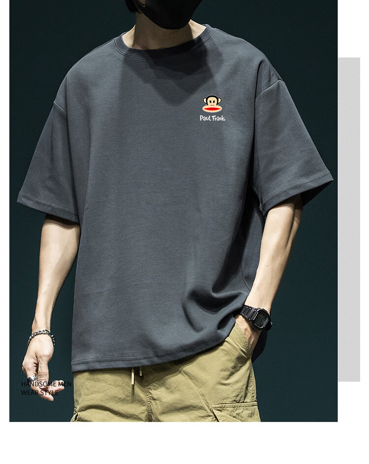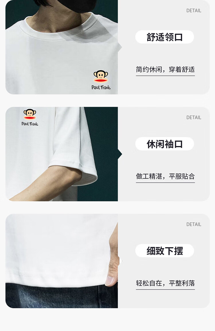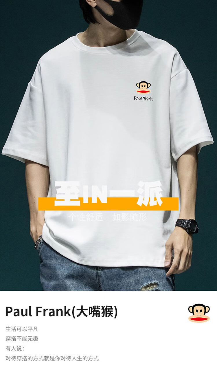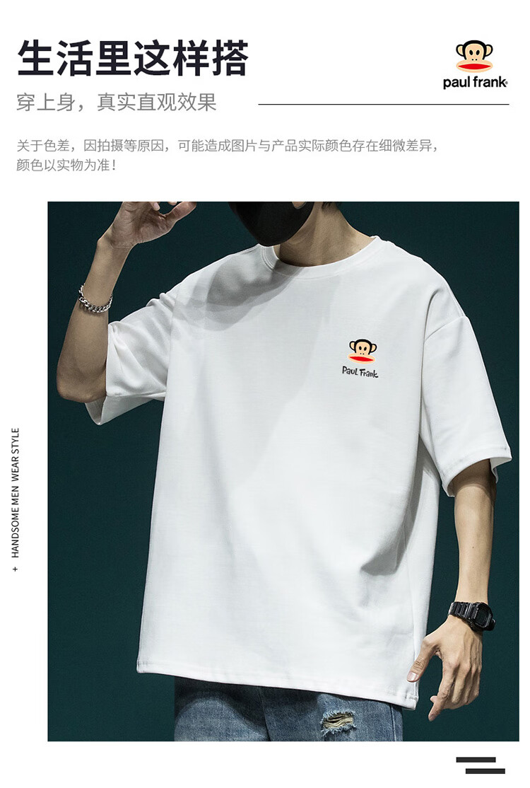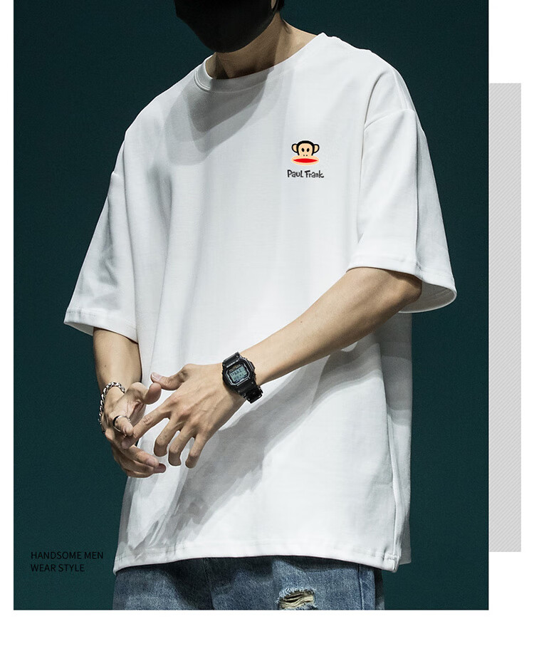 Paul Frank short-sleeved men's summer casual cotton short-sleeved T-shirt men's sports short T-shirt heavyweight men's white XL