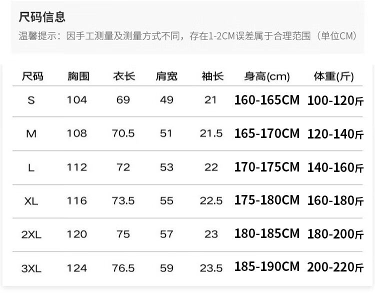 China (cm) 165 / 88-90 170 / 96-98 175 / 108-110 180 / 118-122 185 / 126-130