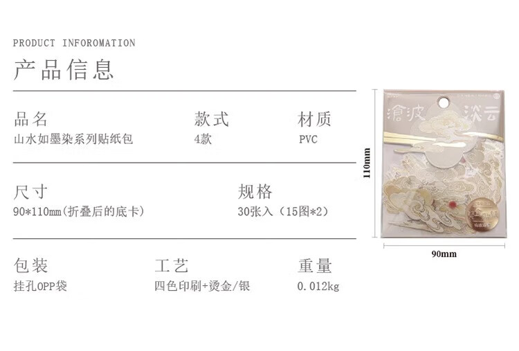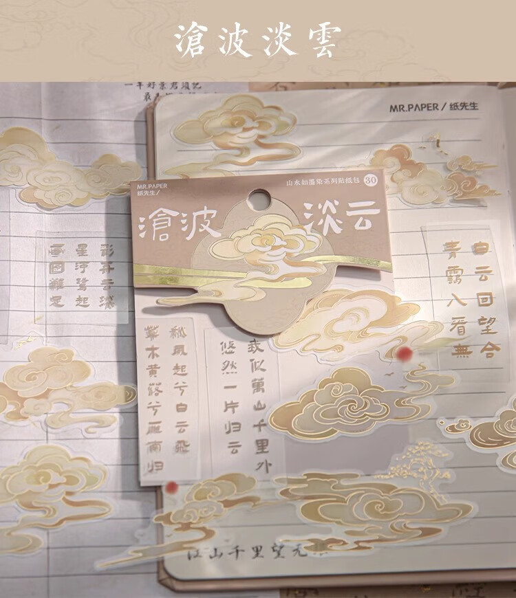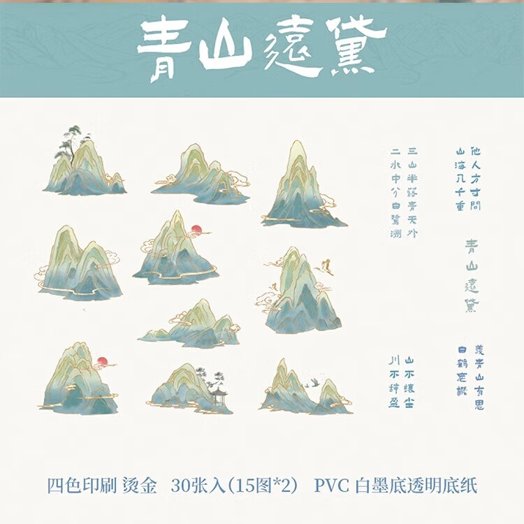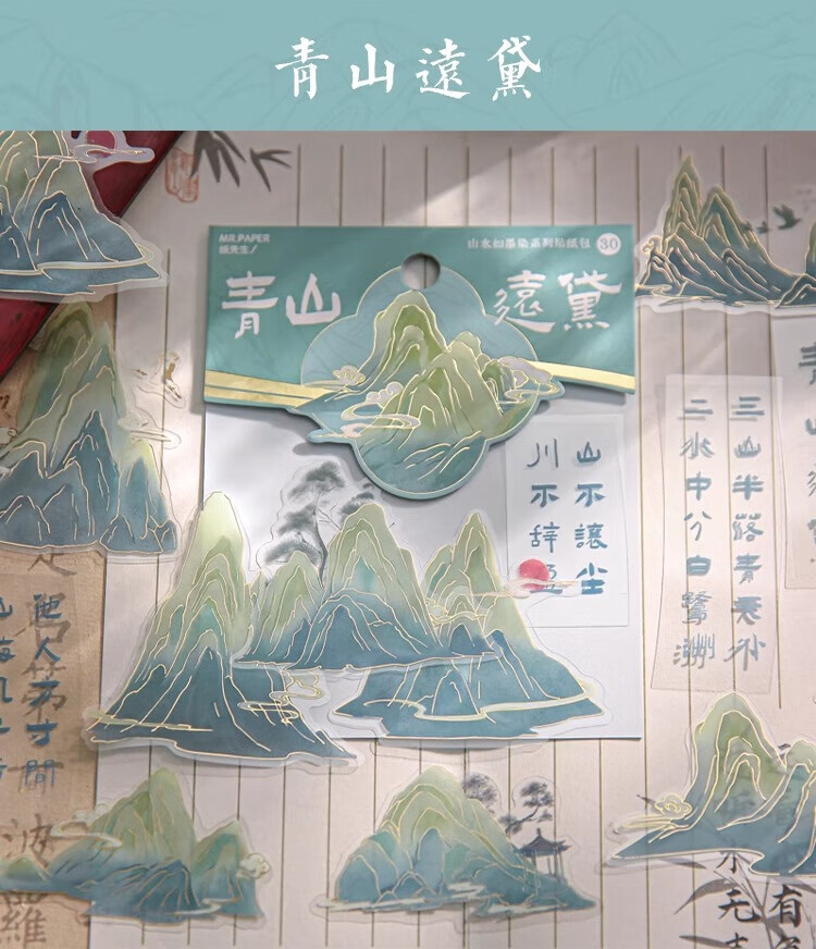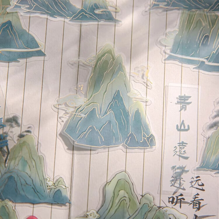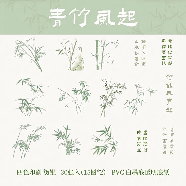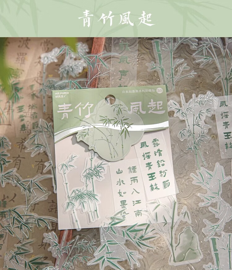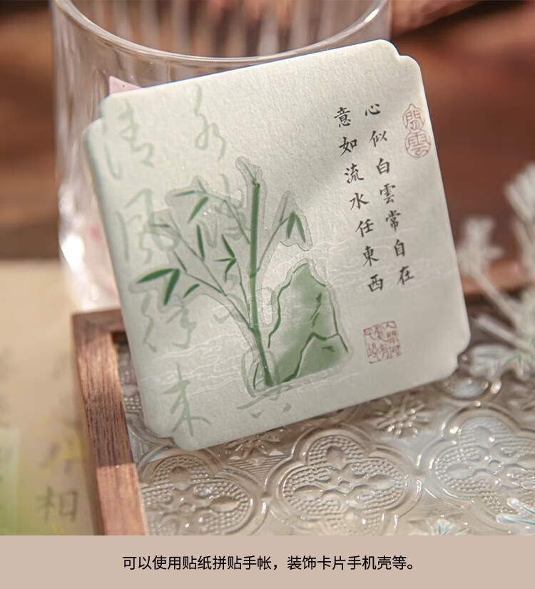 三年二班 新中式贴纸手账diy装饰素材封口贴纸送女生儿童节礼物拼贴造景打底贴纸手机壳贴画 青竹风起