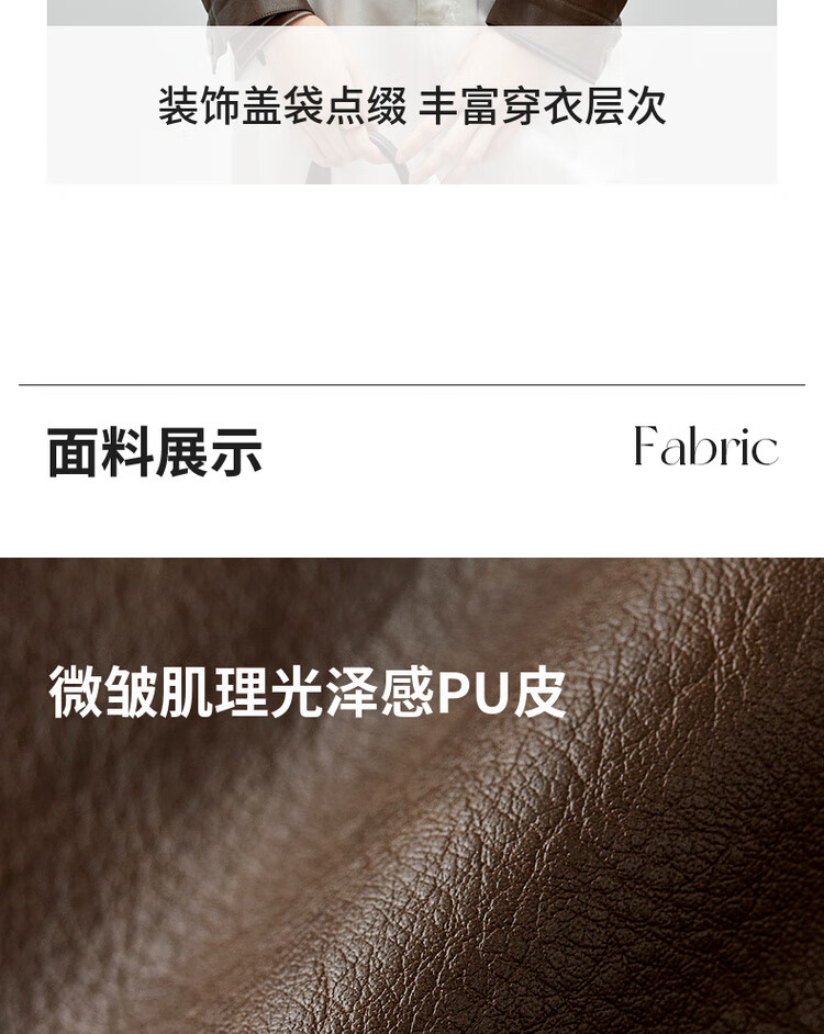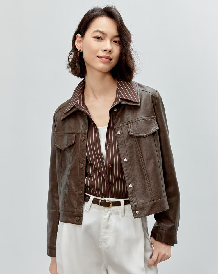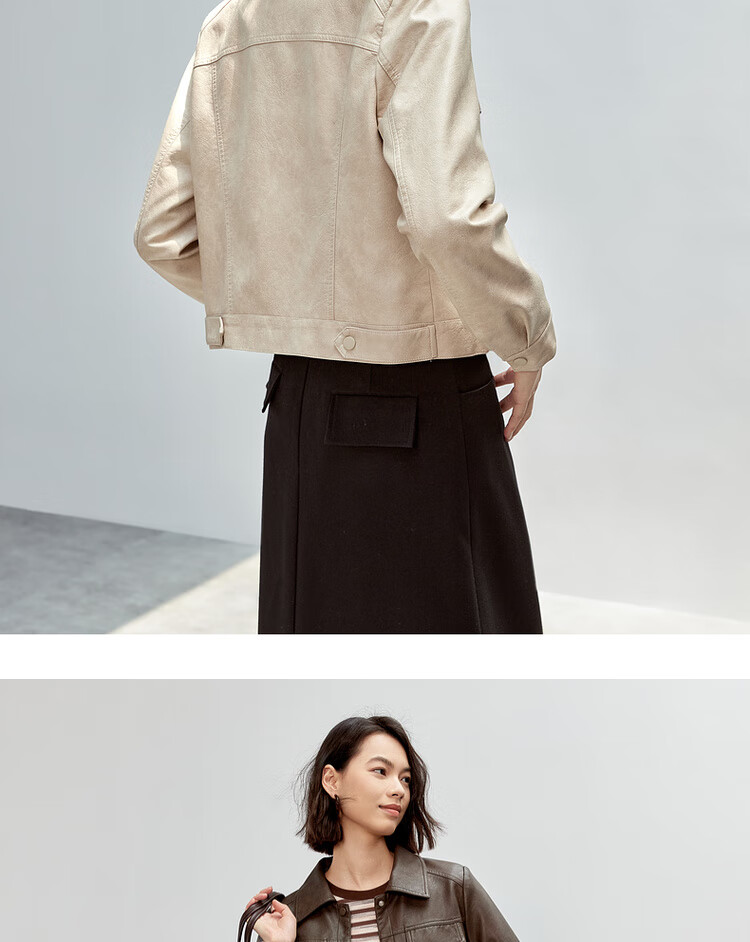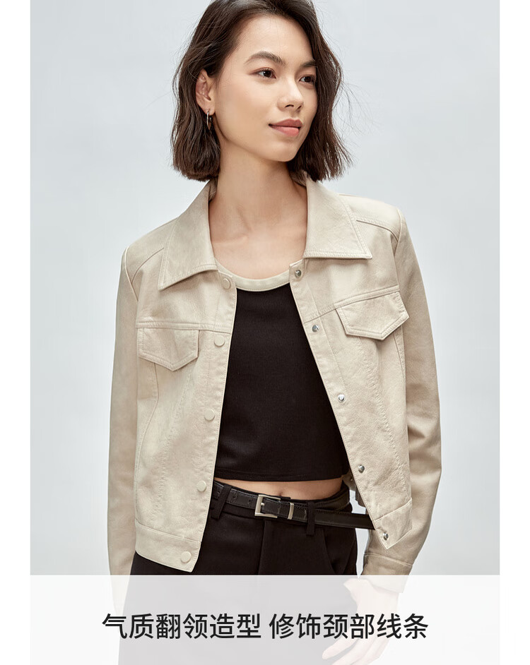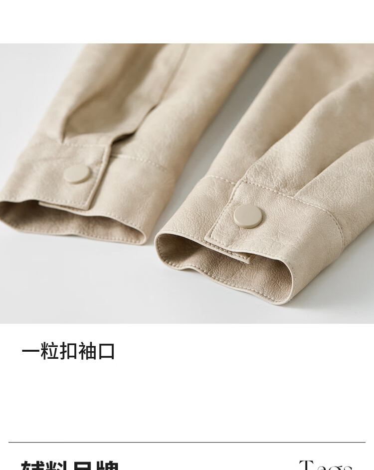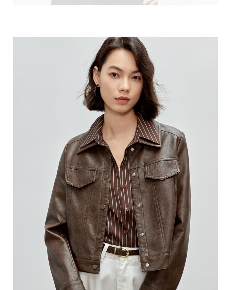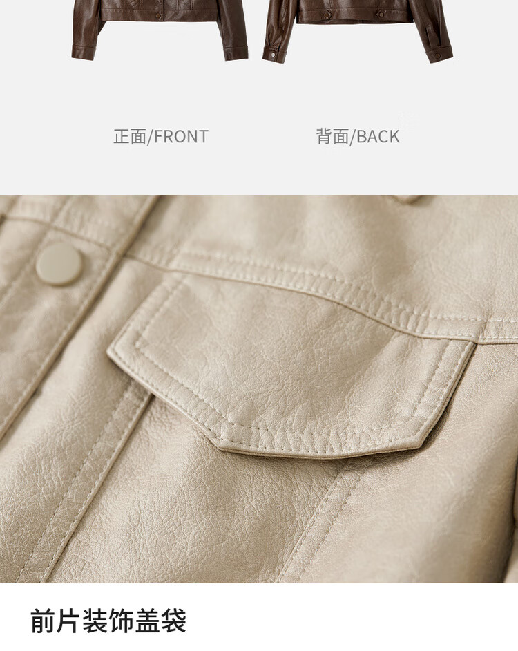 Chandubila Autumn Comfortable Casual Lapel Decorative Flap Bag Loose Short PU Leather Jacket