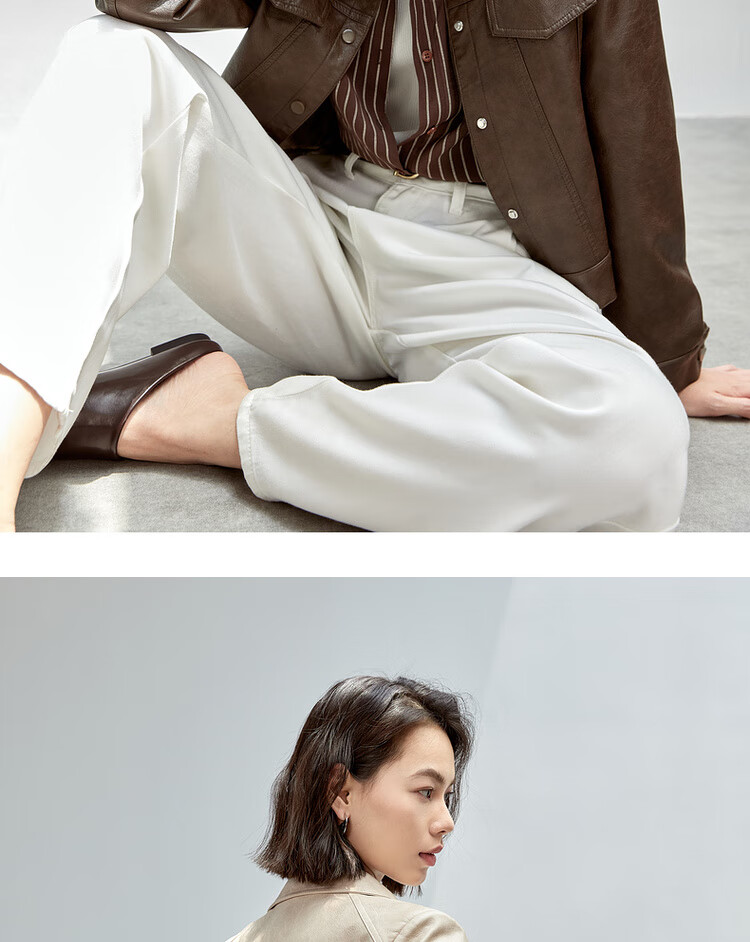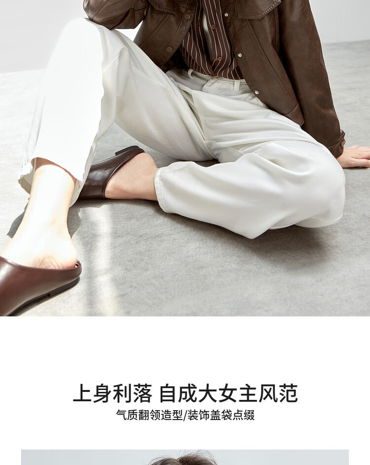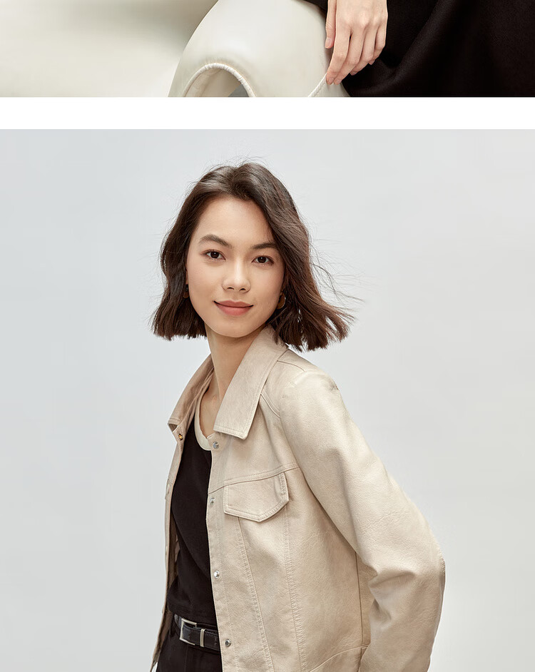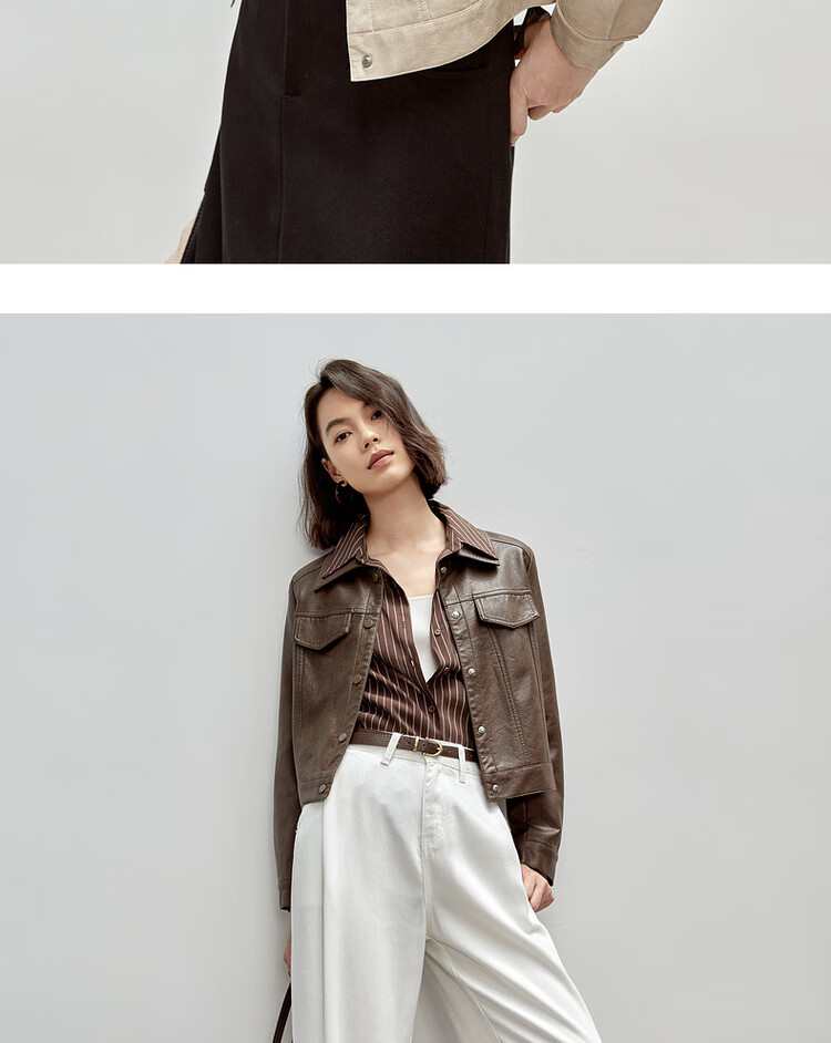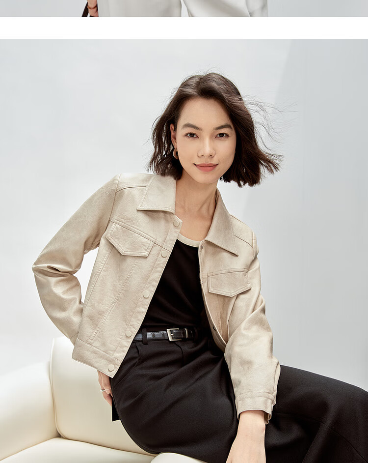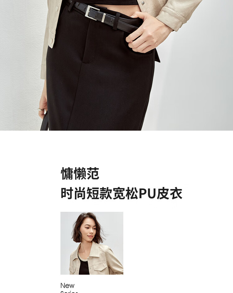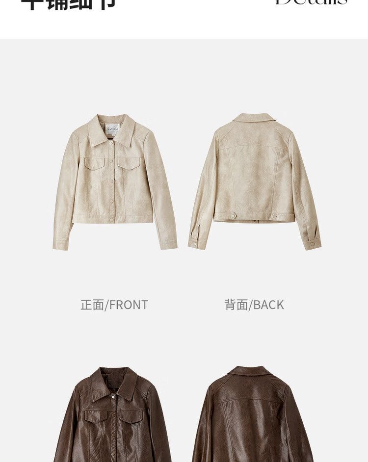 Chandubila Autumn Comfortable Casual Lapel Decorative Flap Bag Loose Short PU Leather Jacket
