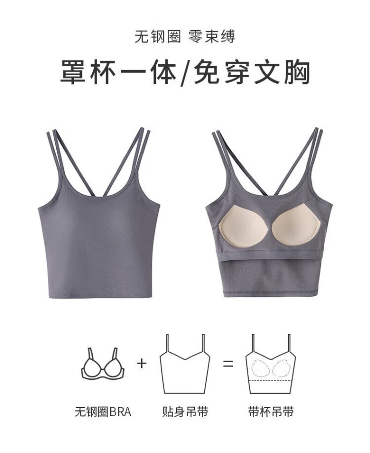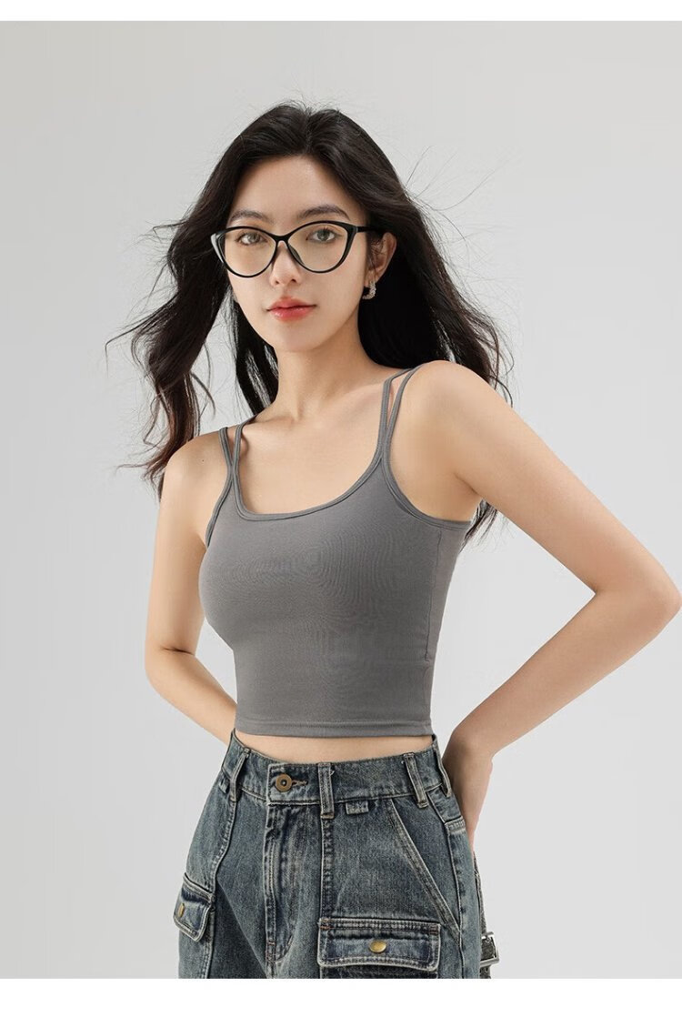 NOME Camisole Women's Slim Fit Navel Revealing Beautiful Back and Chest Pad Integrated Inner and Outer Wearing Tube Top Gray M